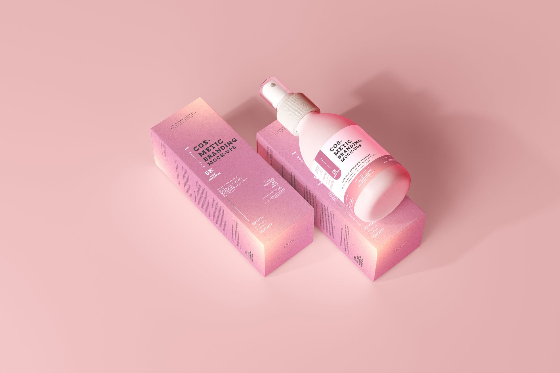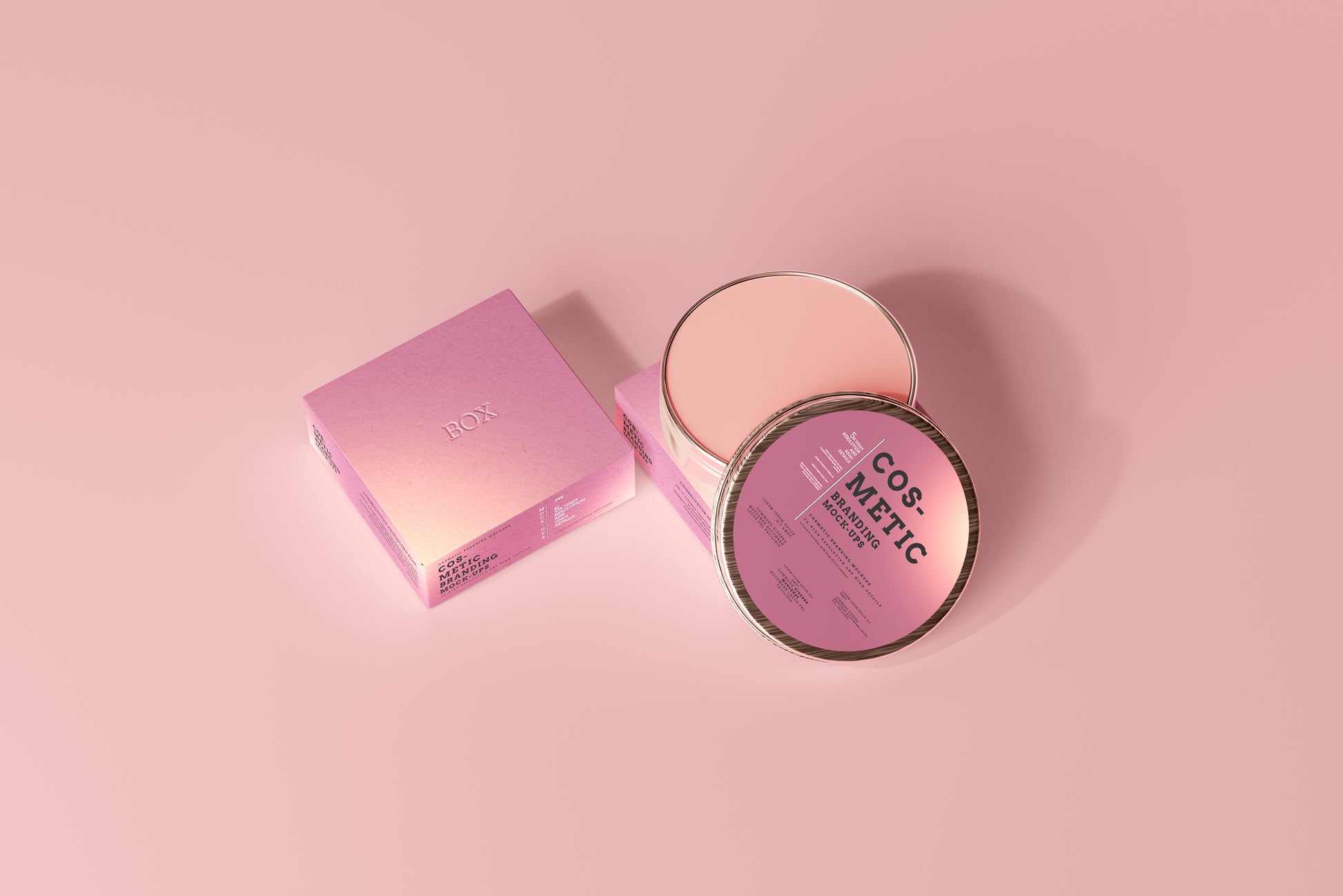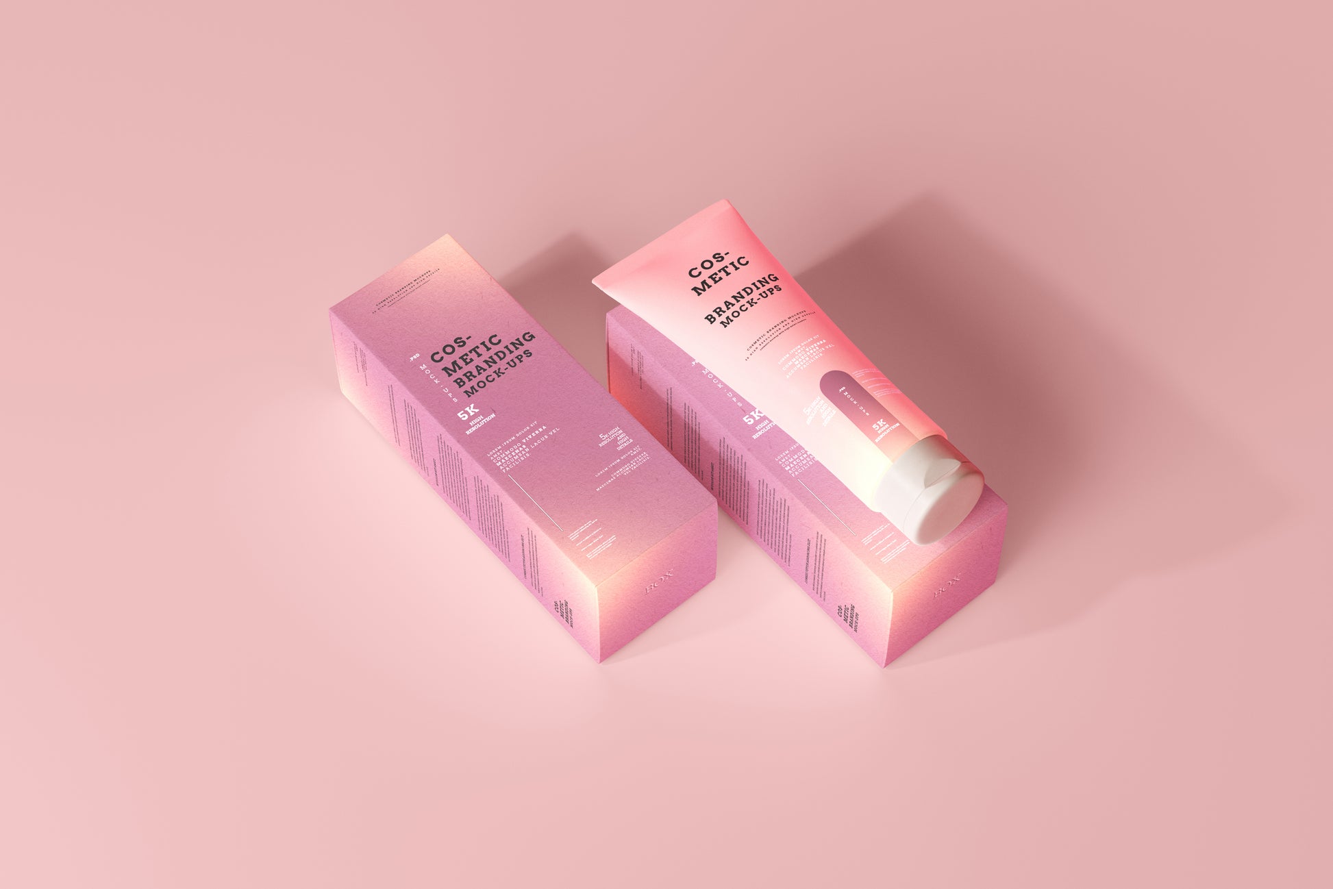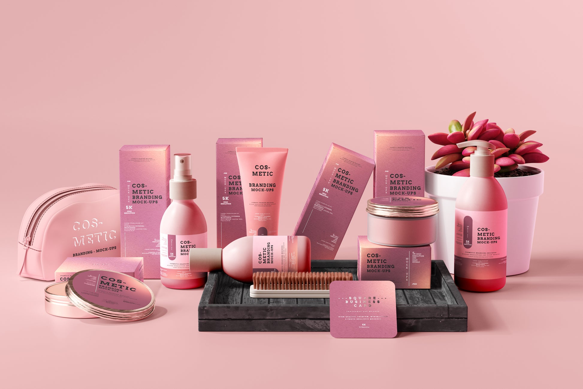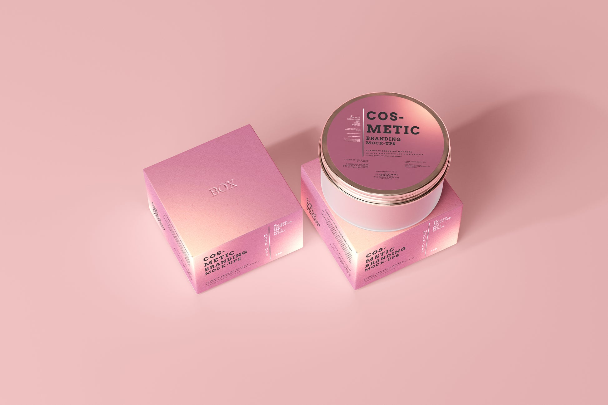 101x Cosmetic Branding Mockup Scenes featuring 6x packaging containers with boxes.