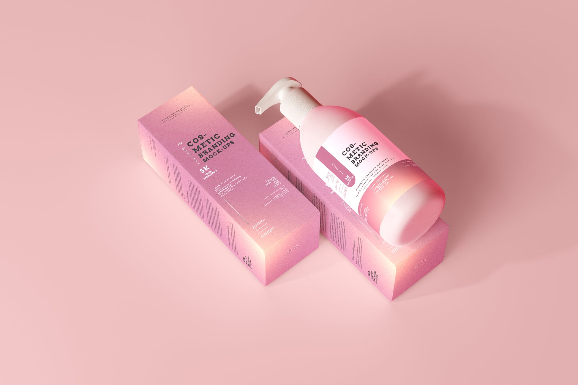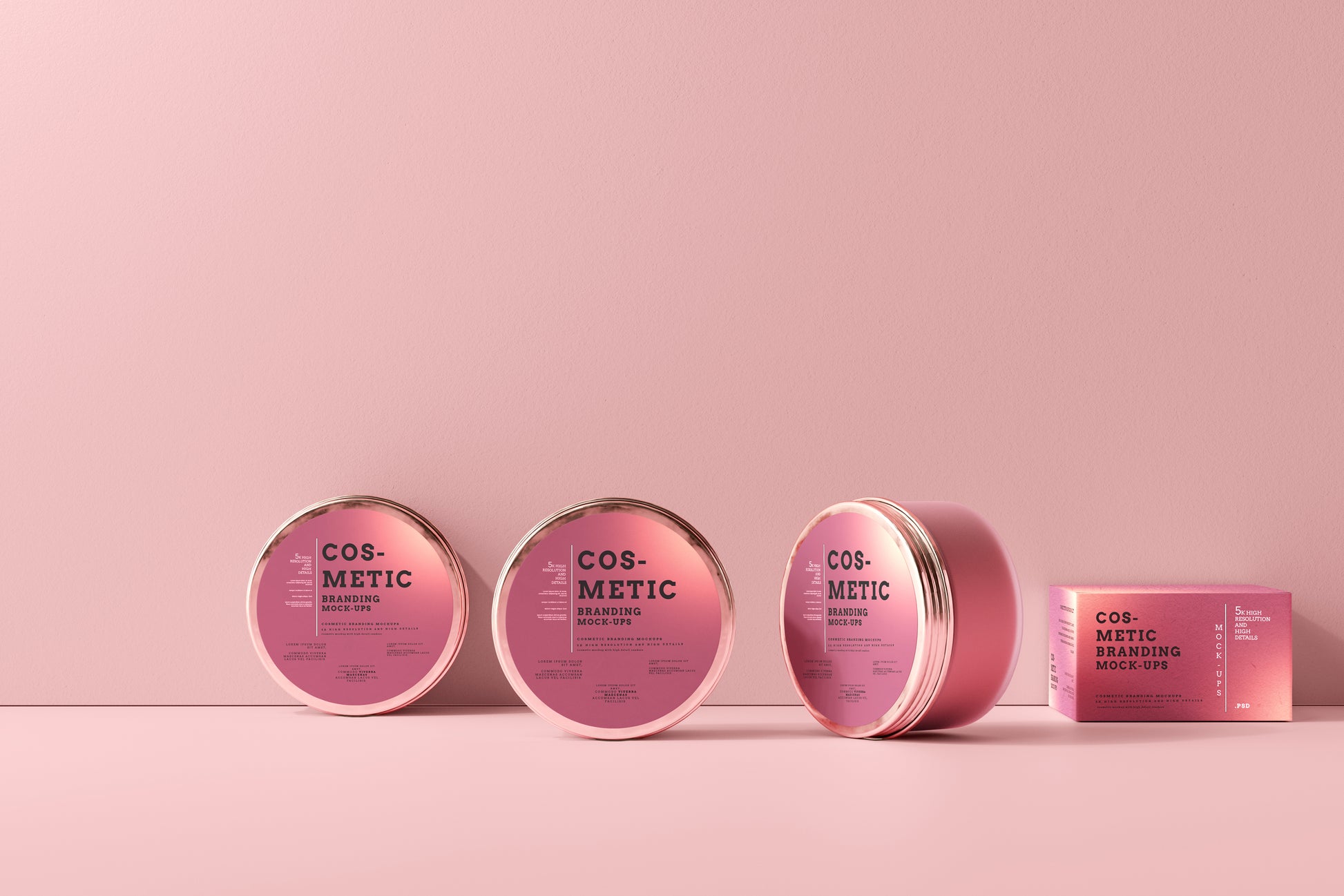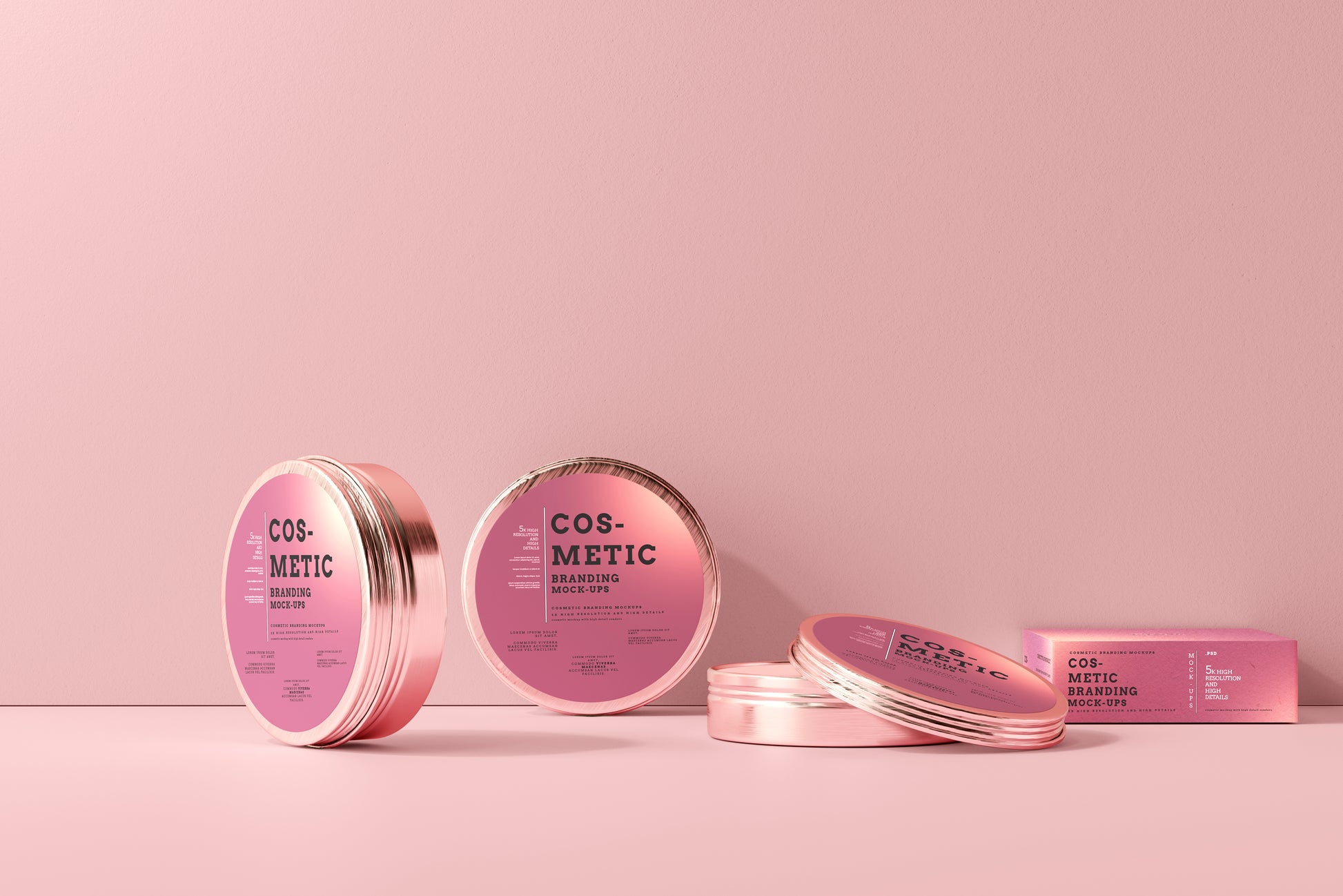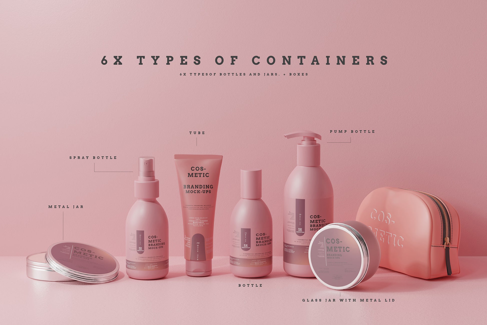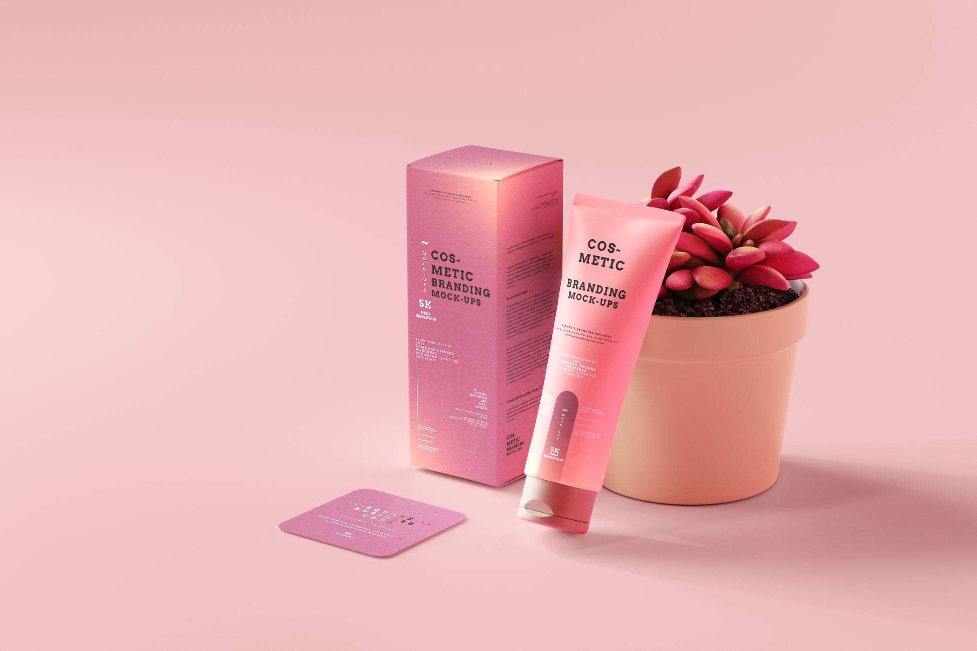 101x Cosmetic Branding Mockup Scenes featuring 6x packaging containers with boxes.