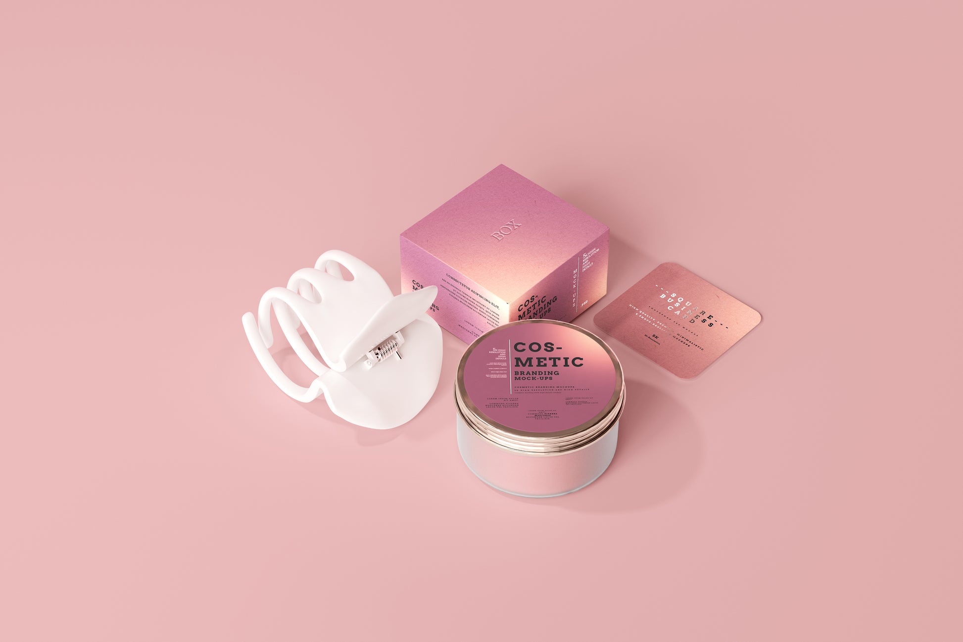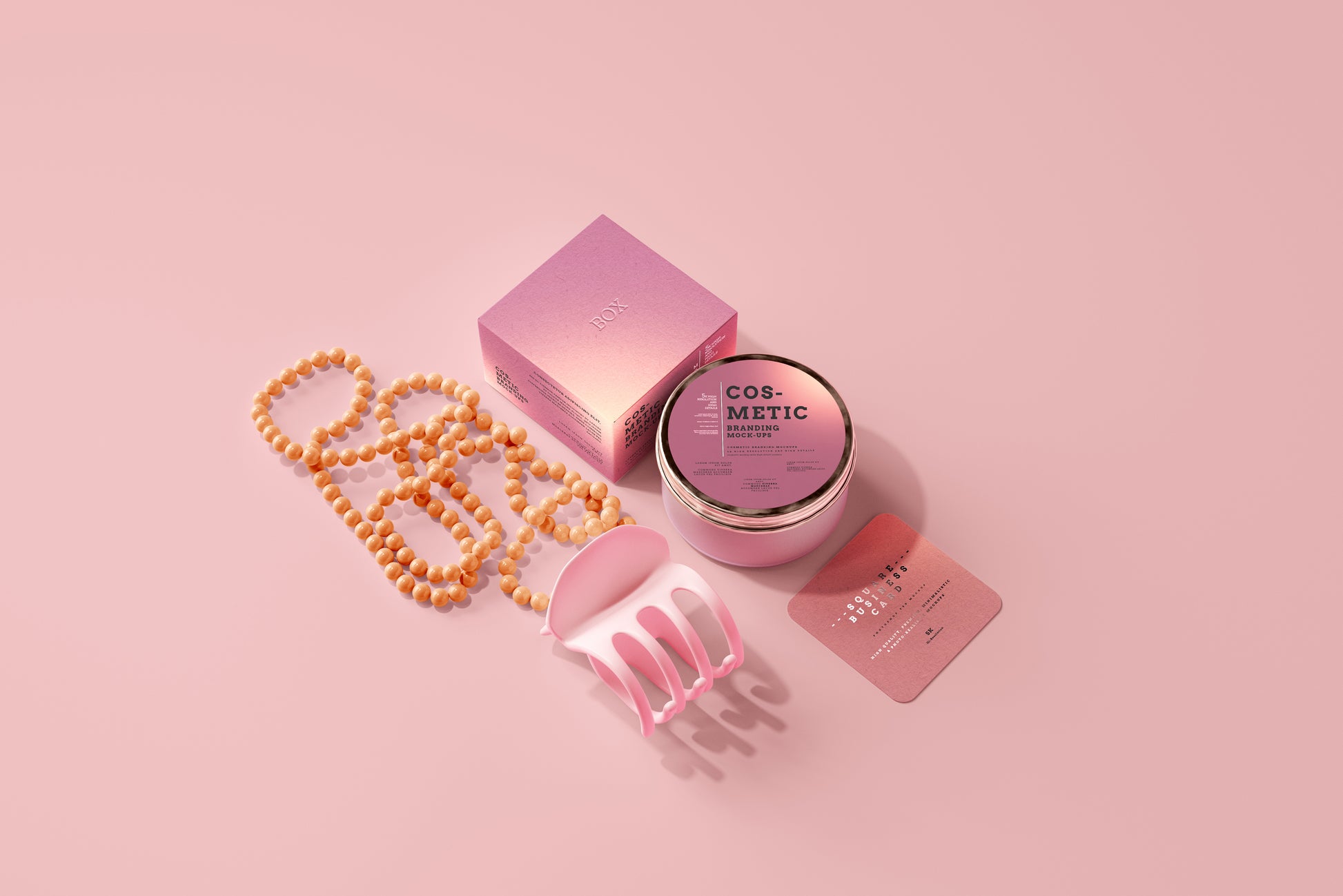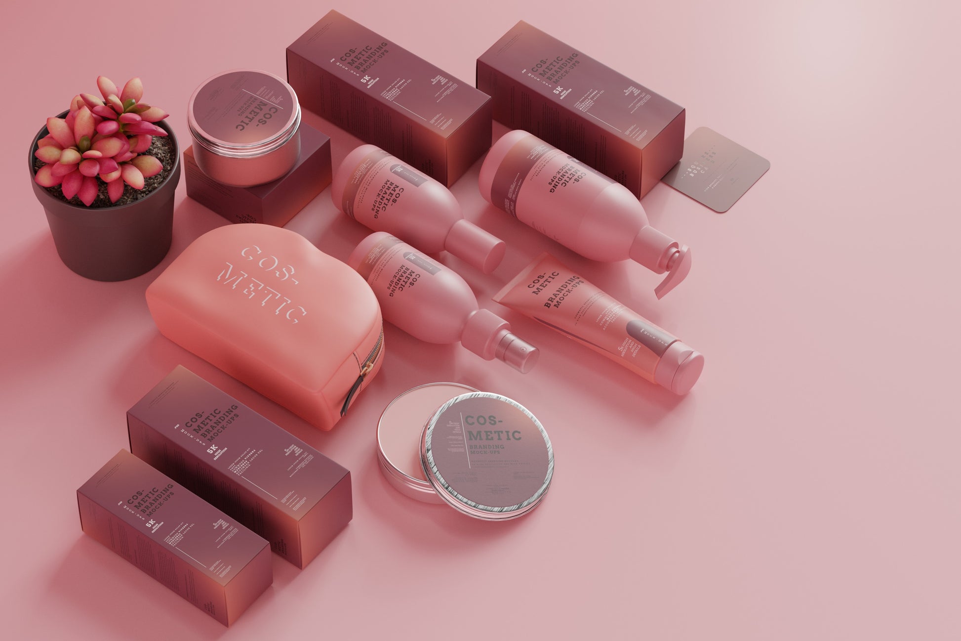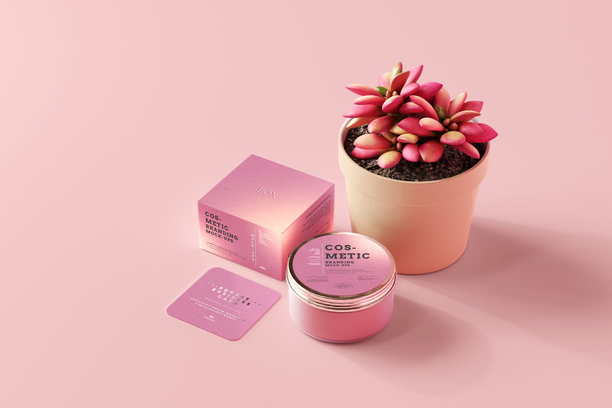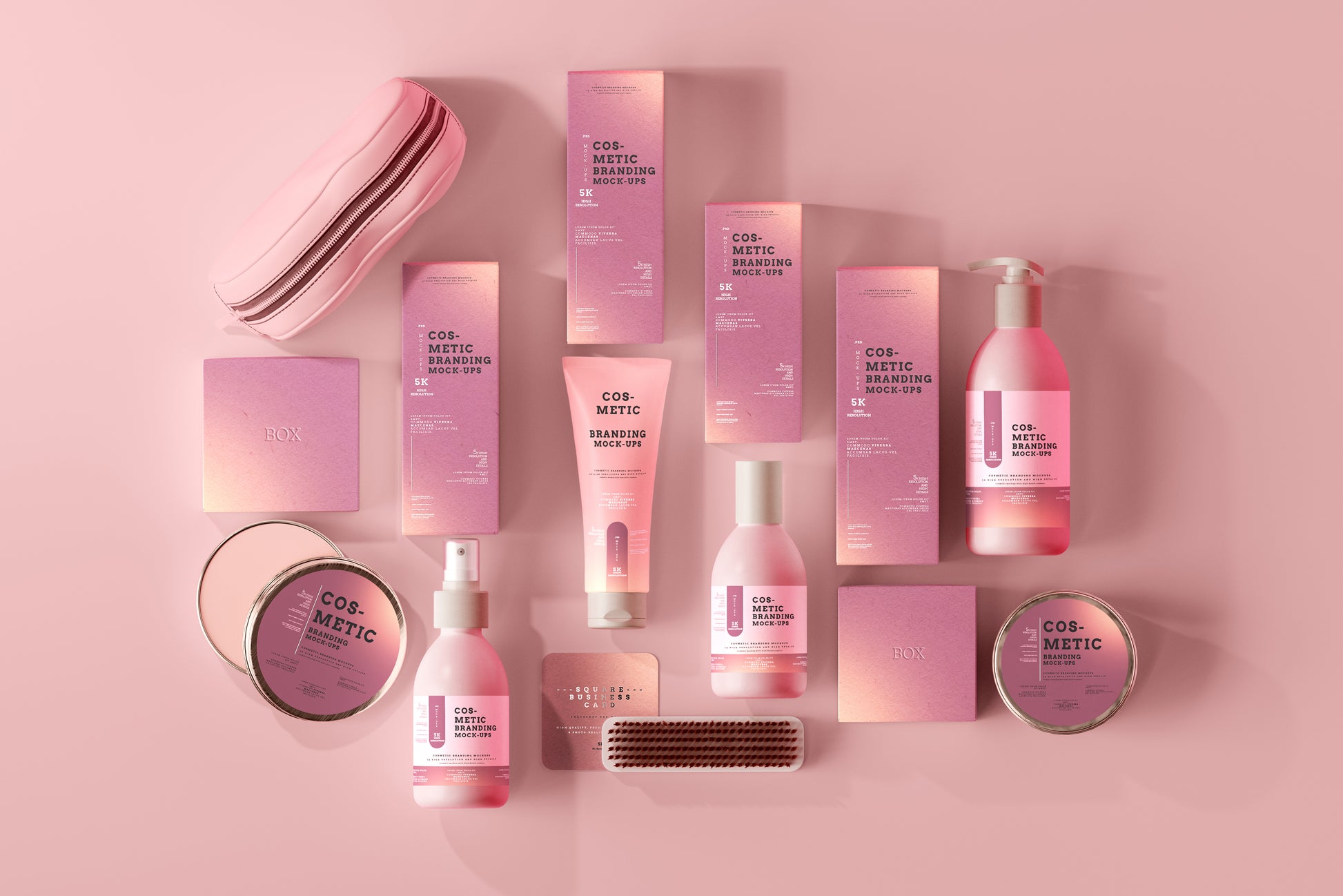 101x Cosmetic Branding Mockup Scenes featuring 6x packaging containers with boxes.