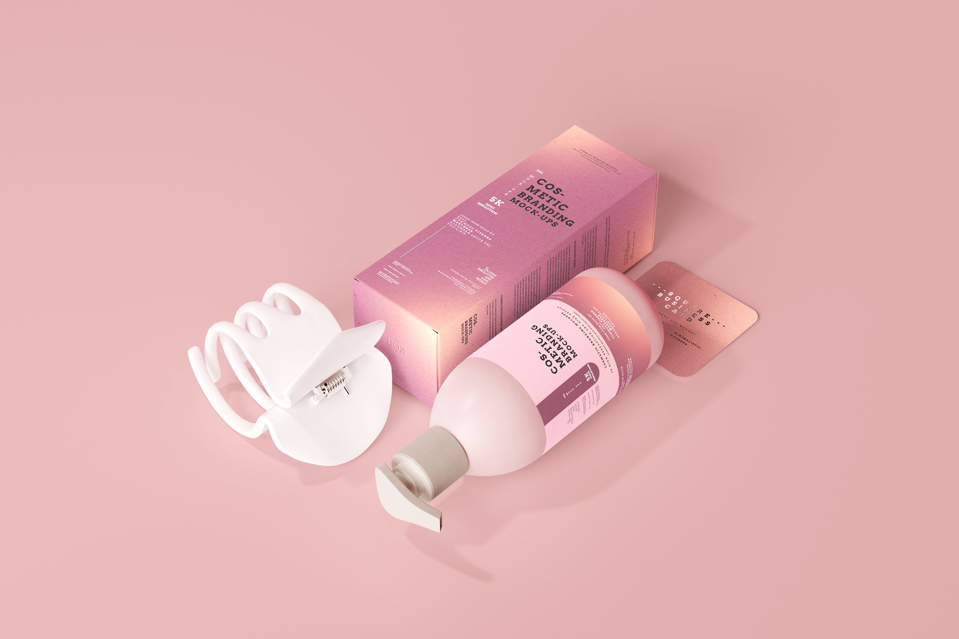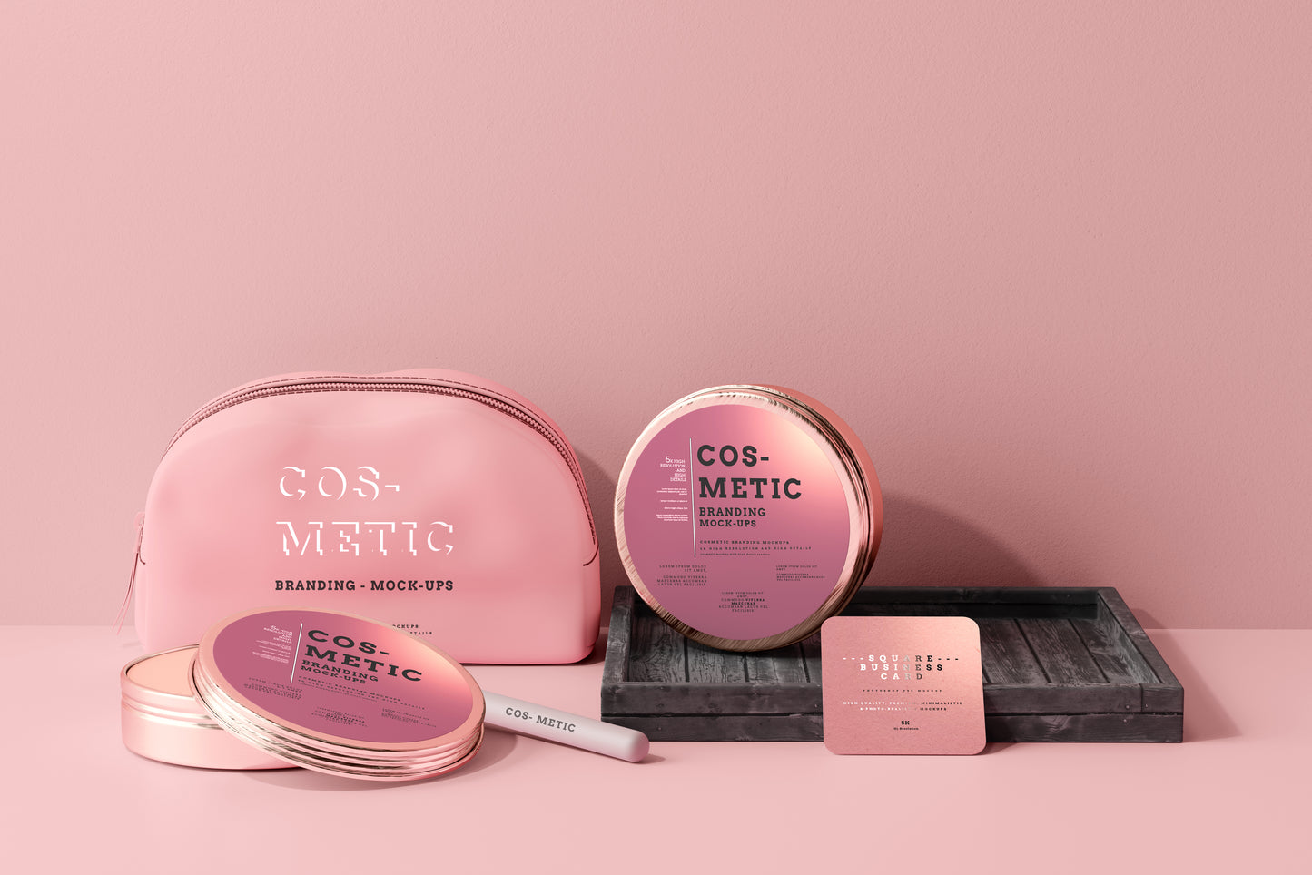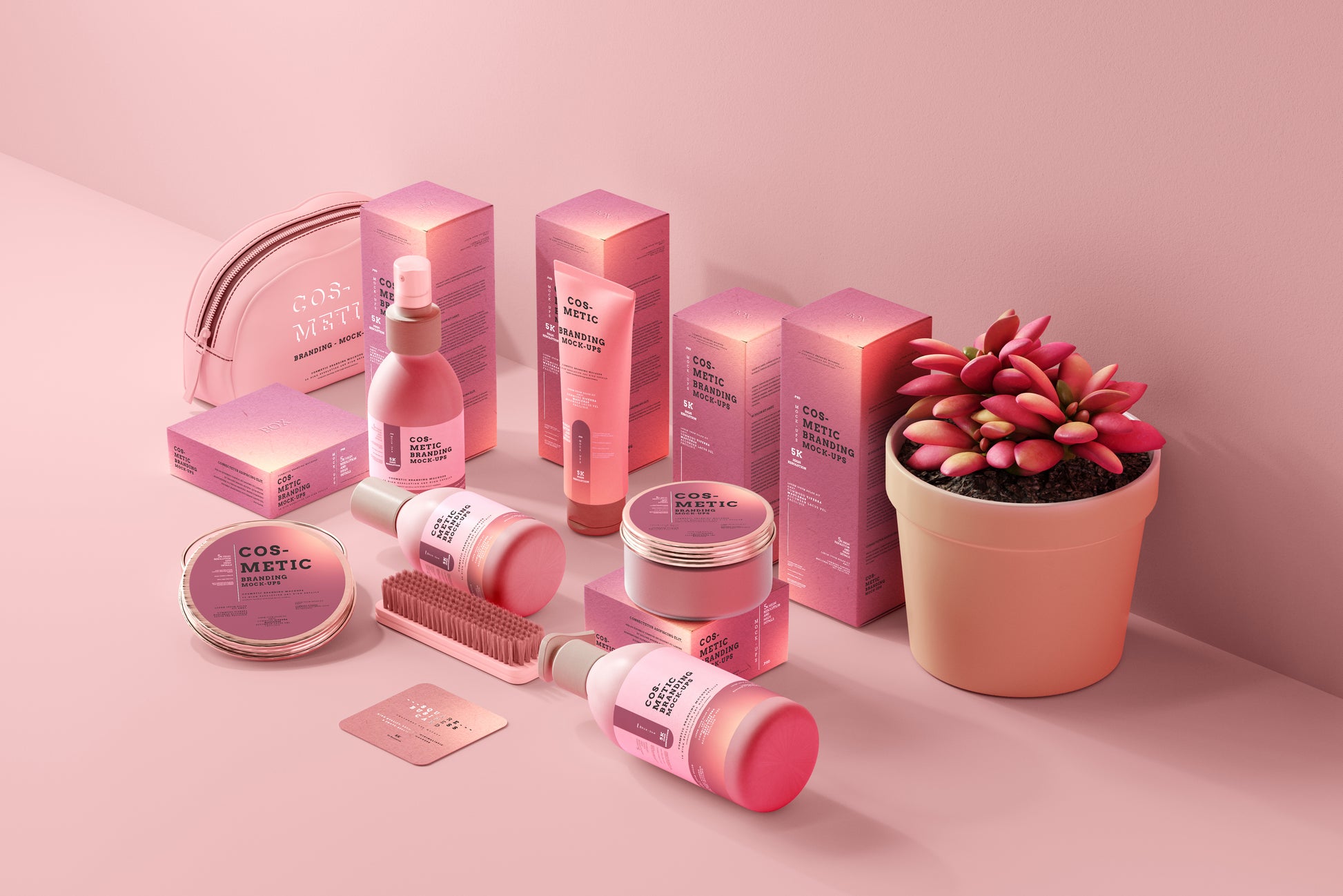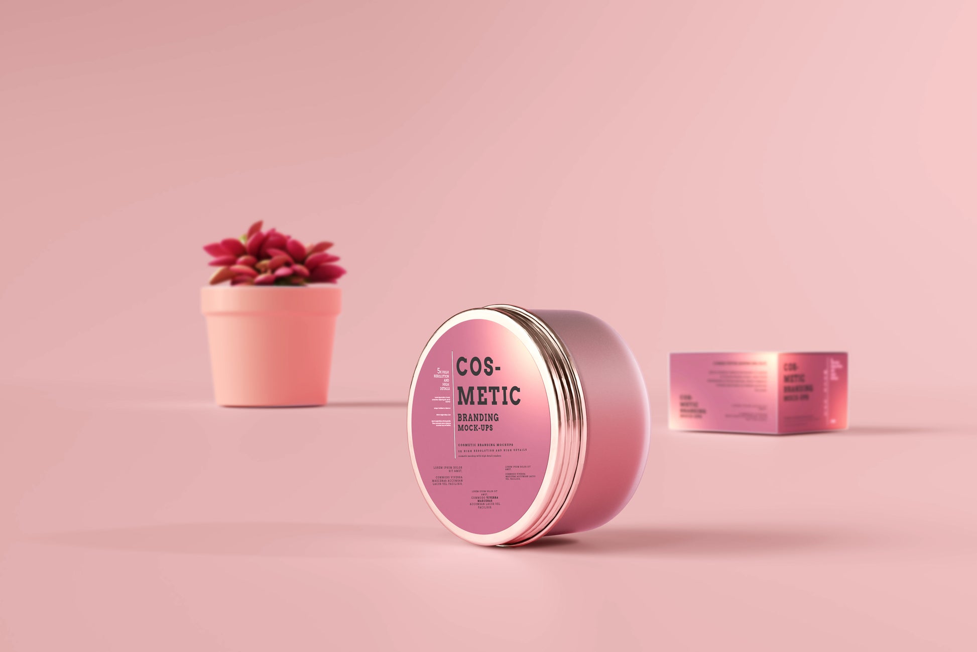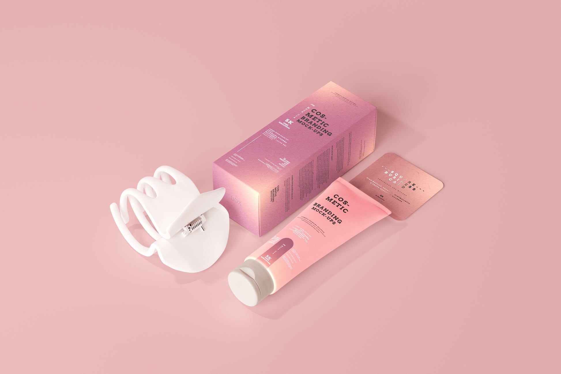 101x Cosmetic Branding Mockup Scenes featuring 6x packaging containers with boxes.