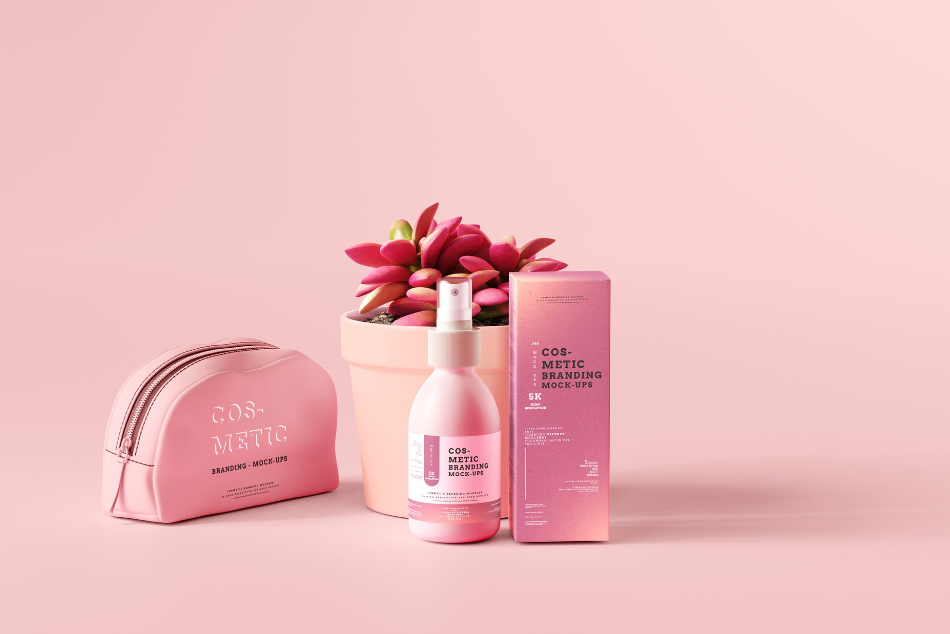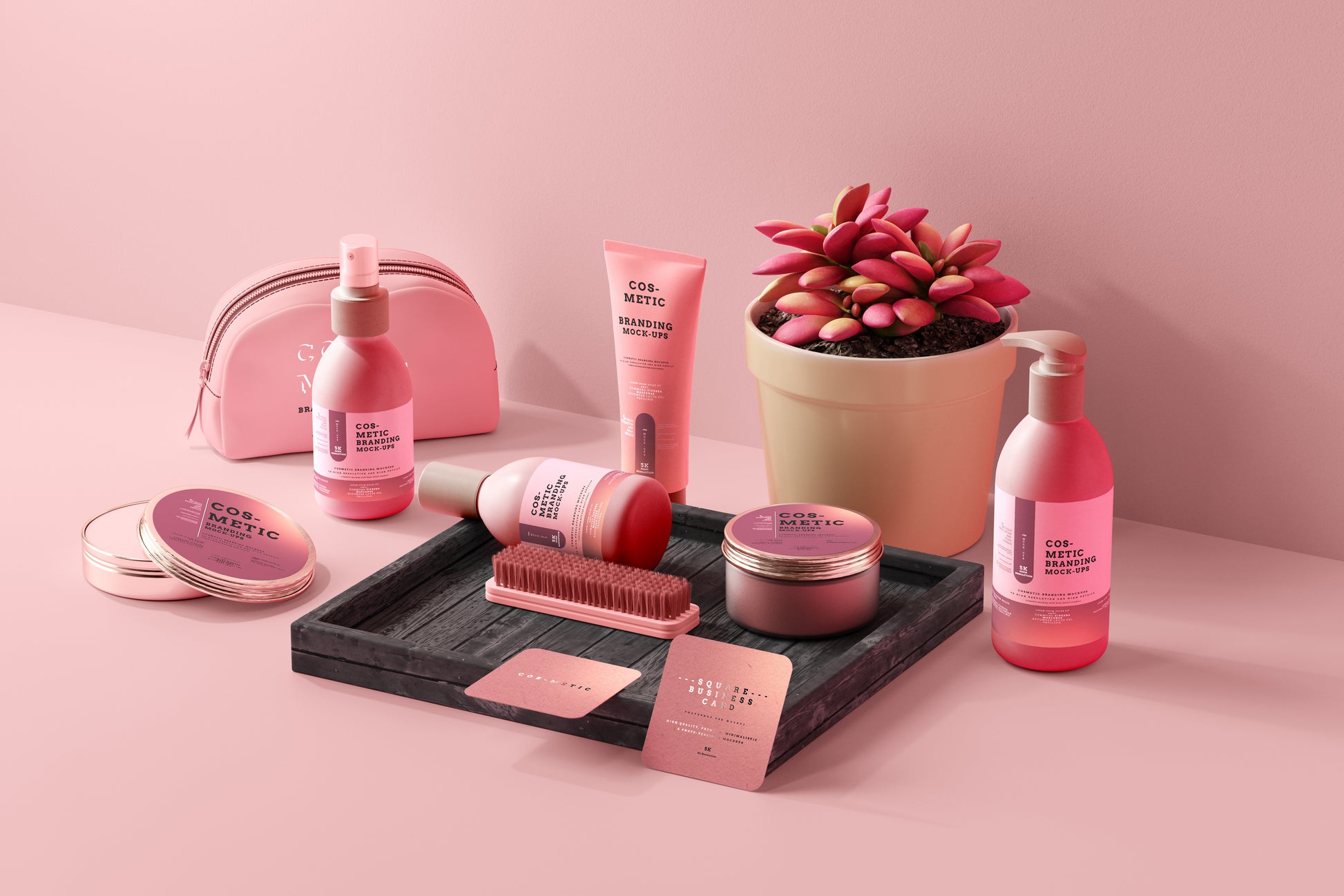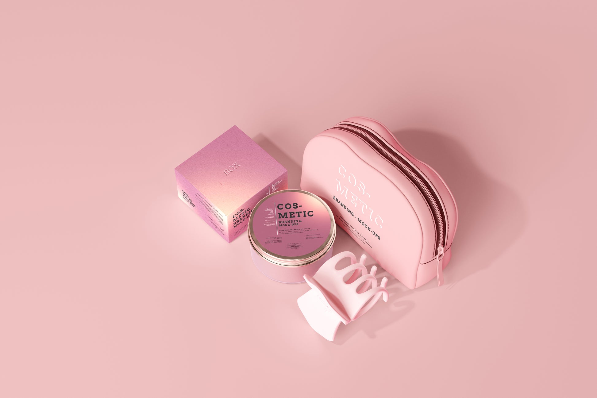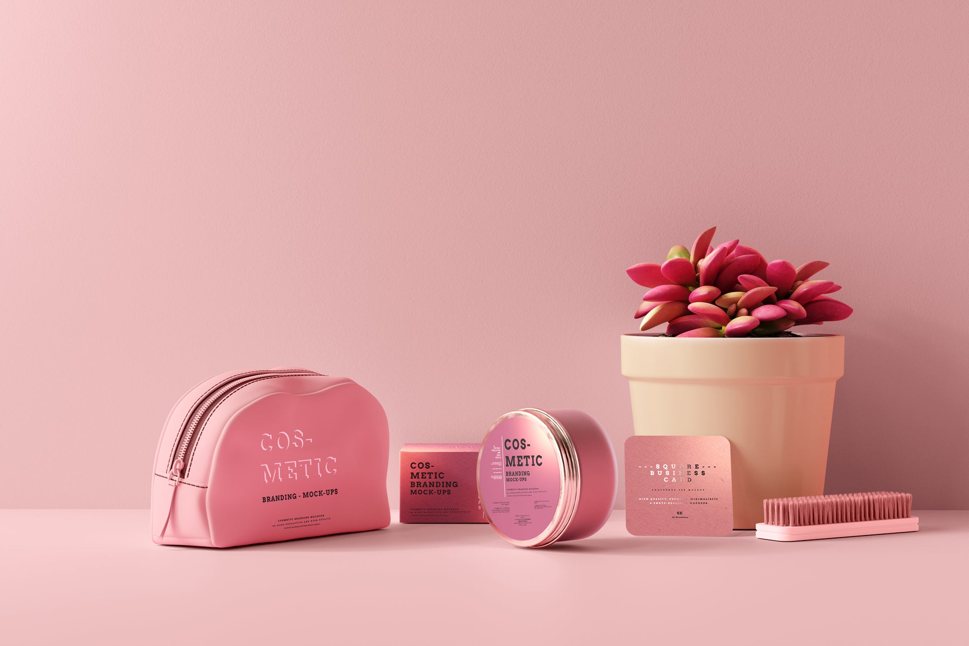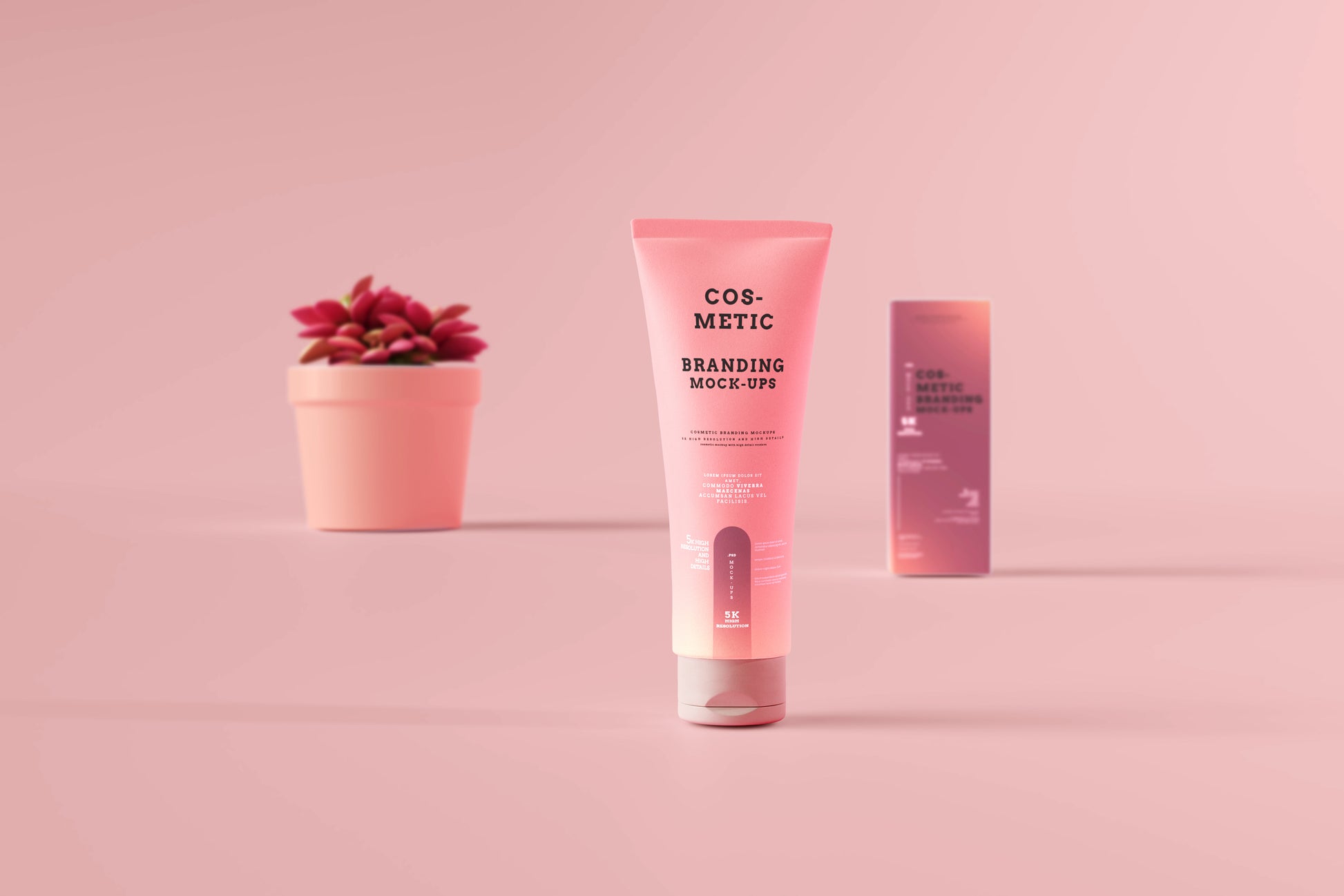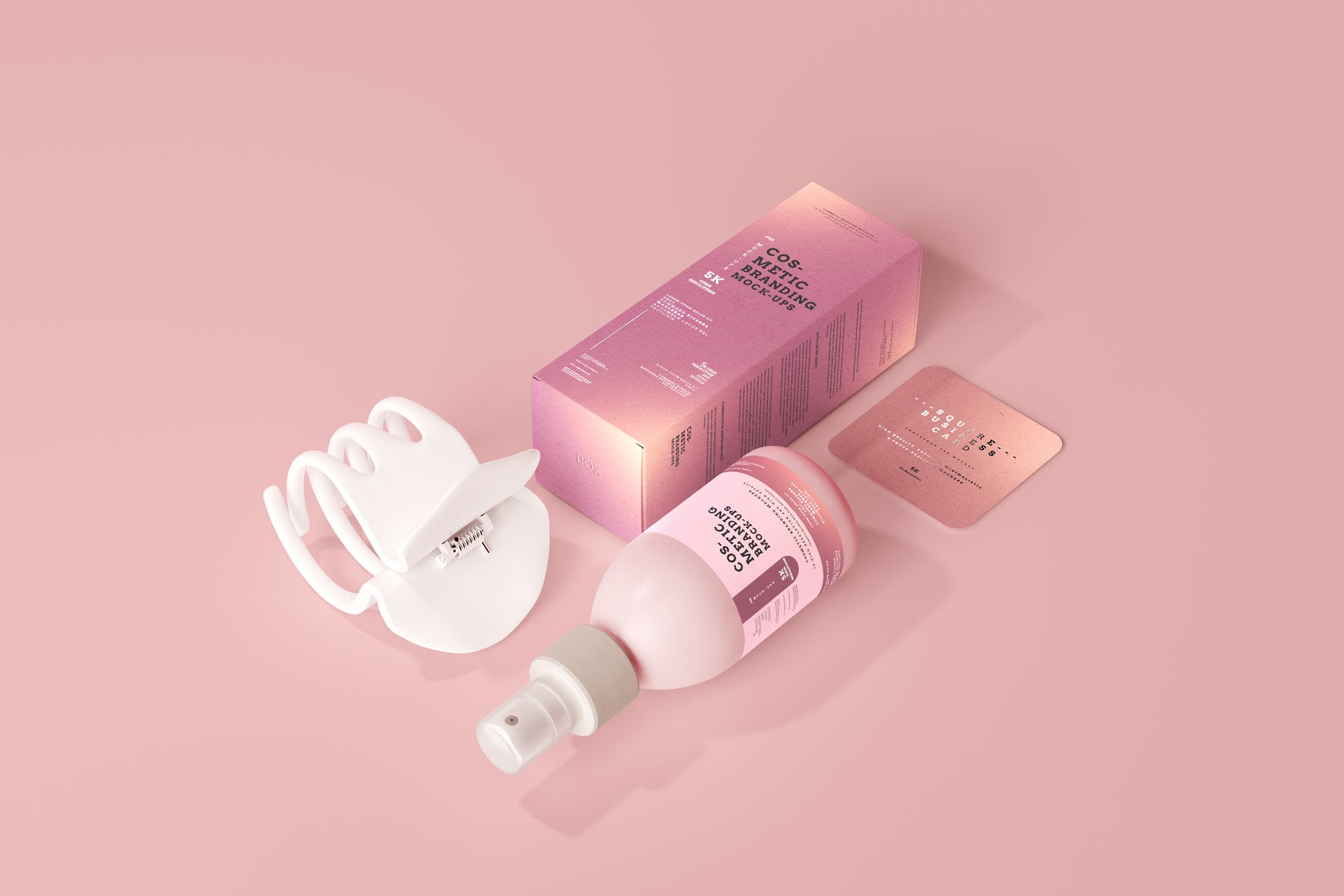 101x Cosmetic Branding Mockup Scenes featuring 6x packaging containers with boxes.