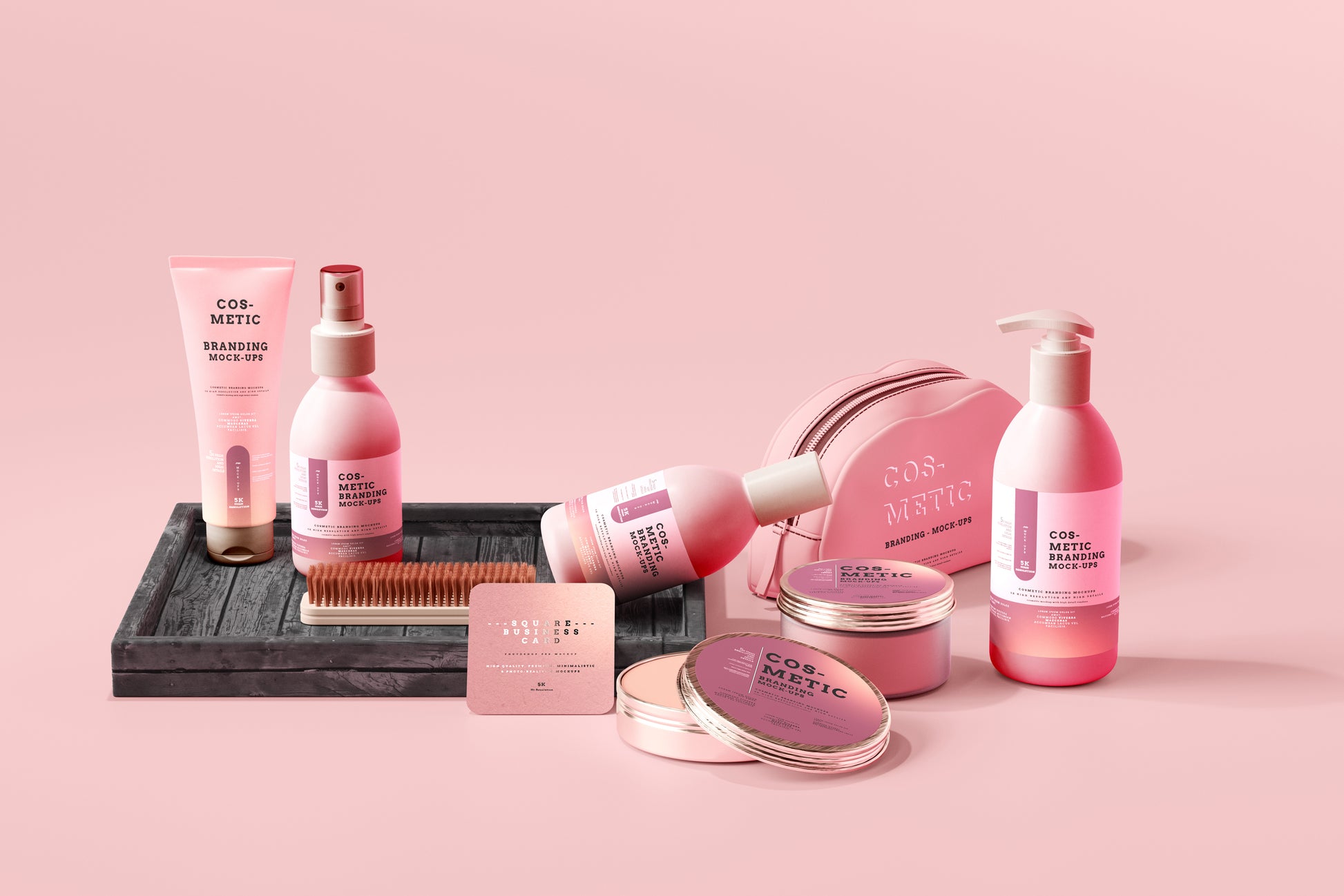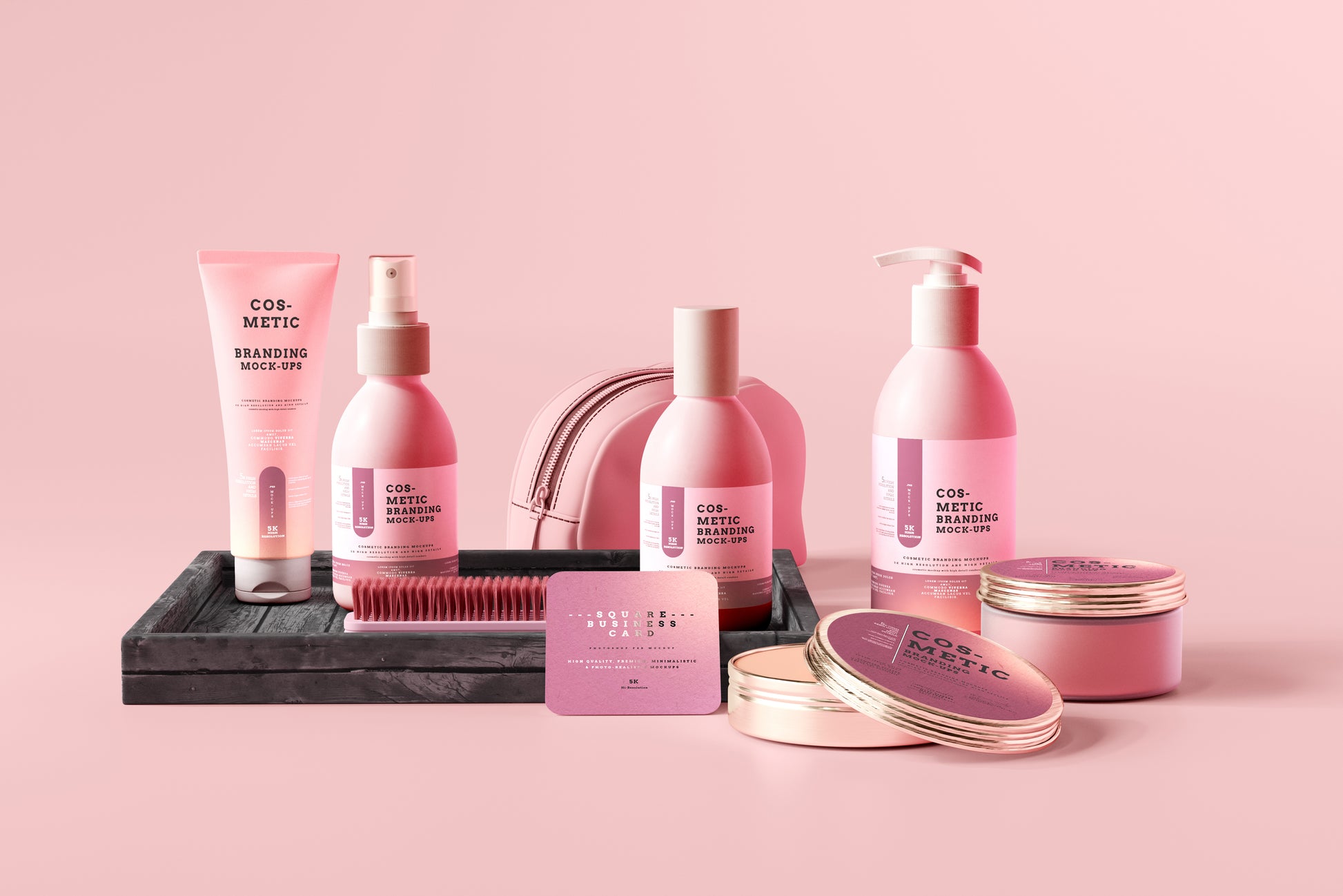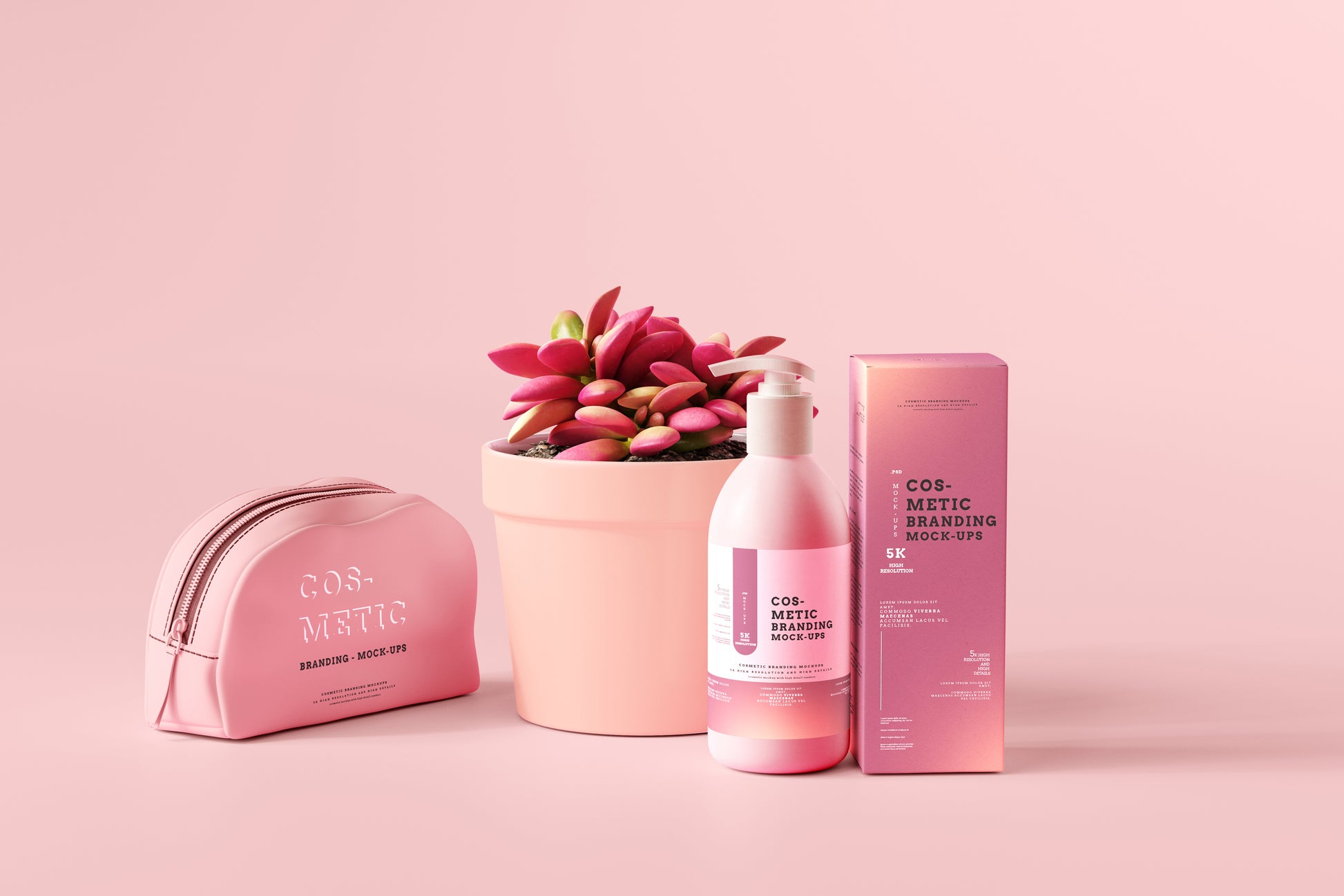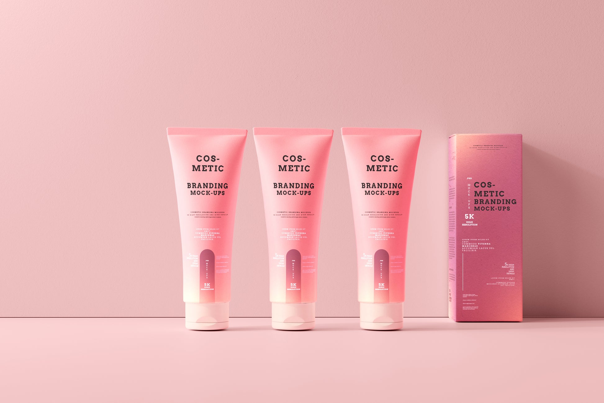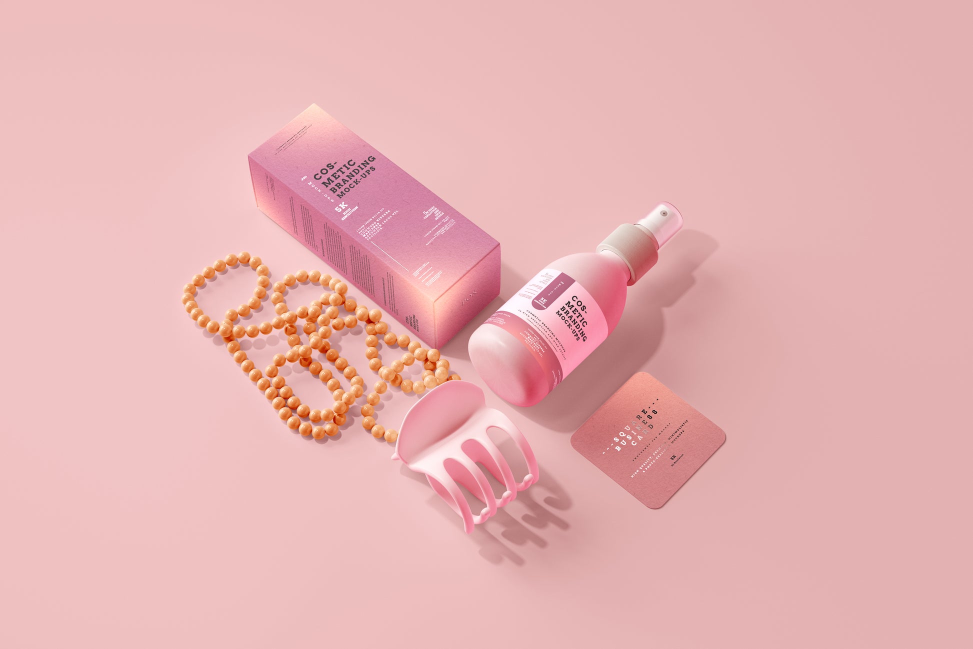 101x Cosmetic Branding Mockup Scenes featuring 6x packaging containers with boxes.