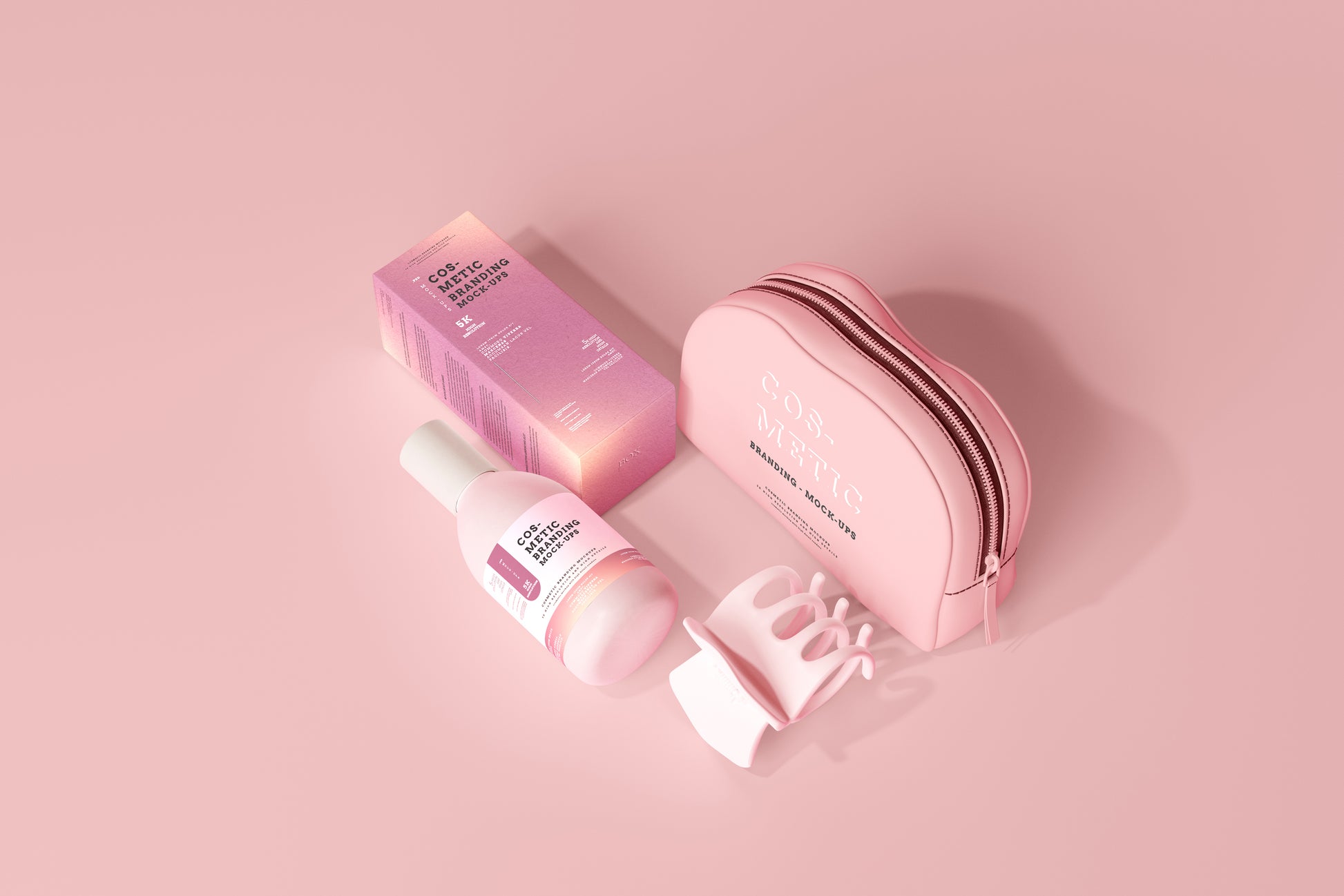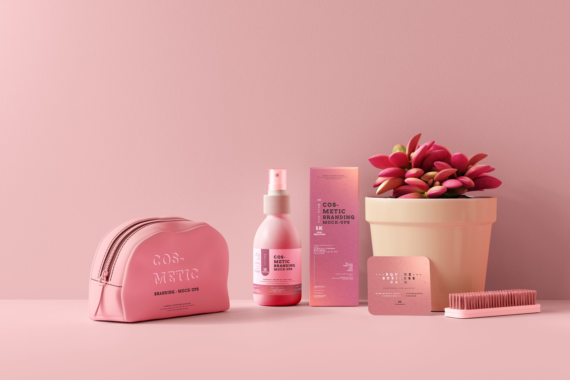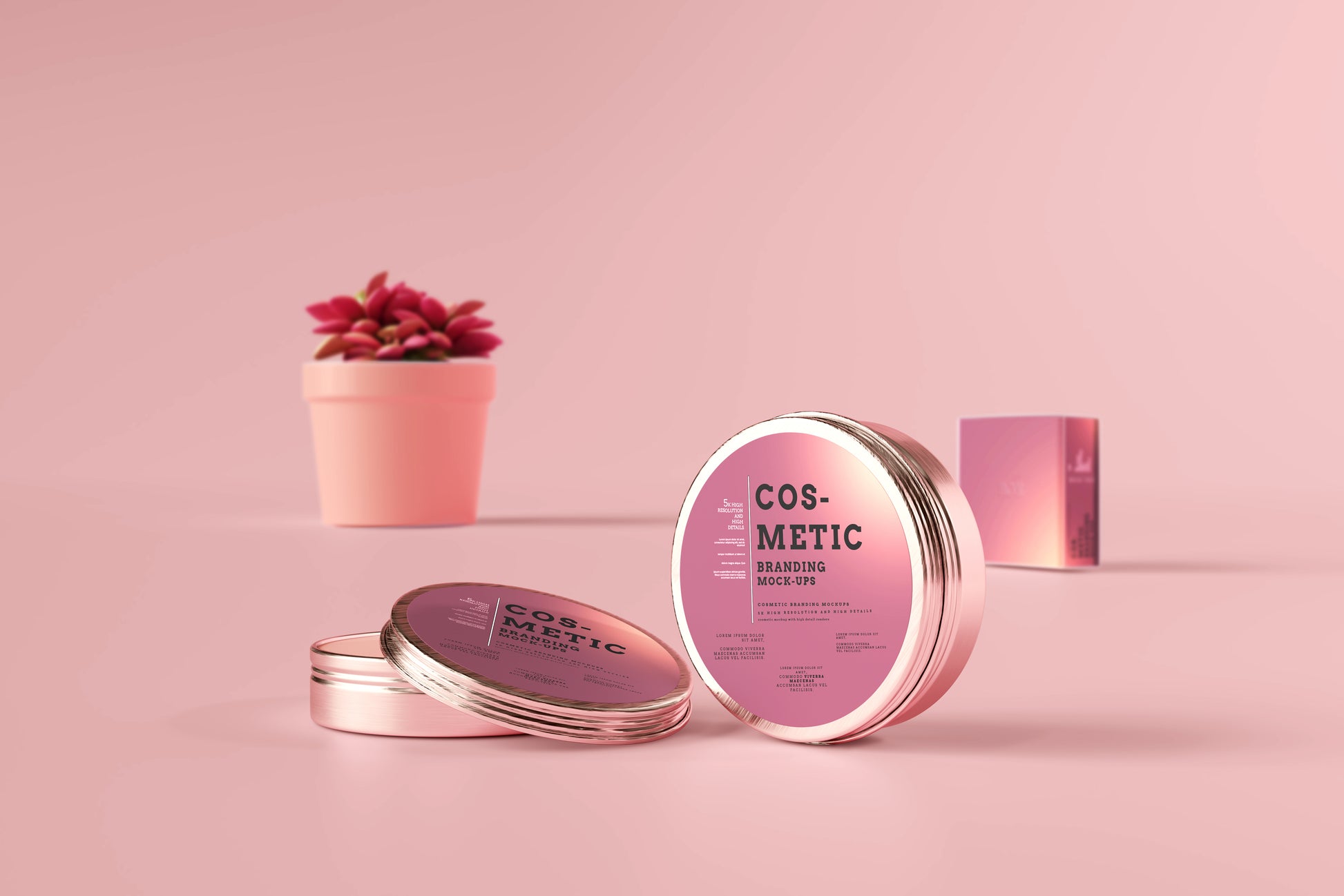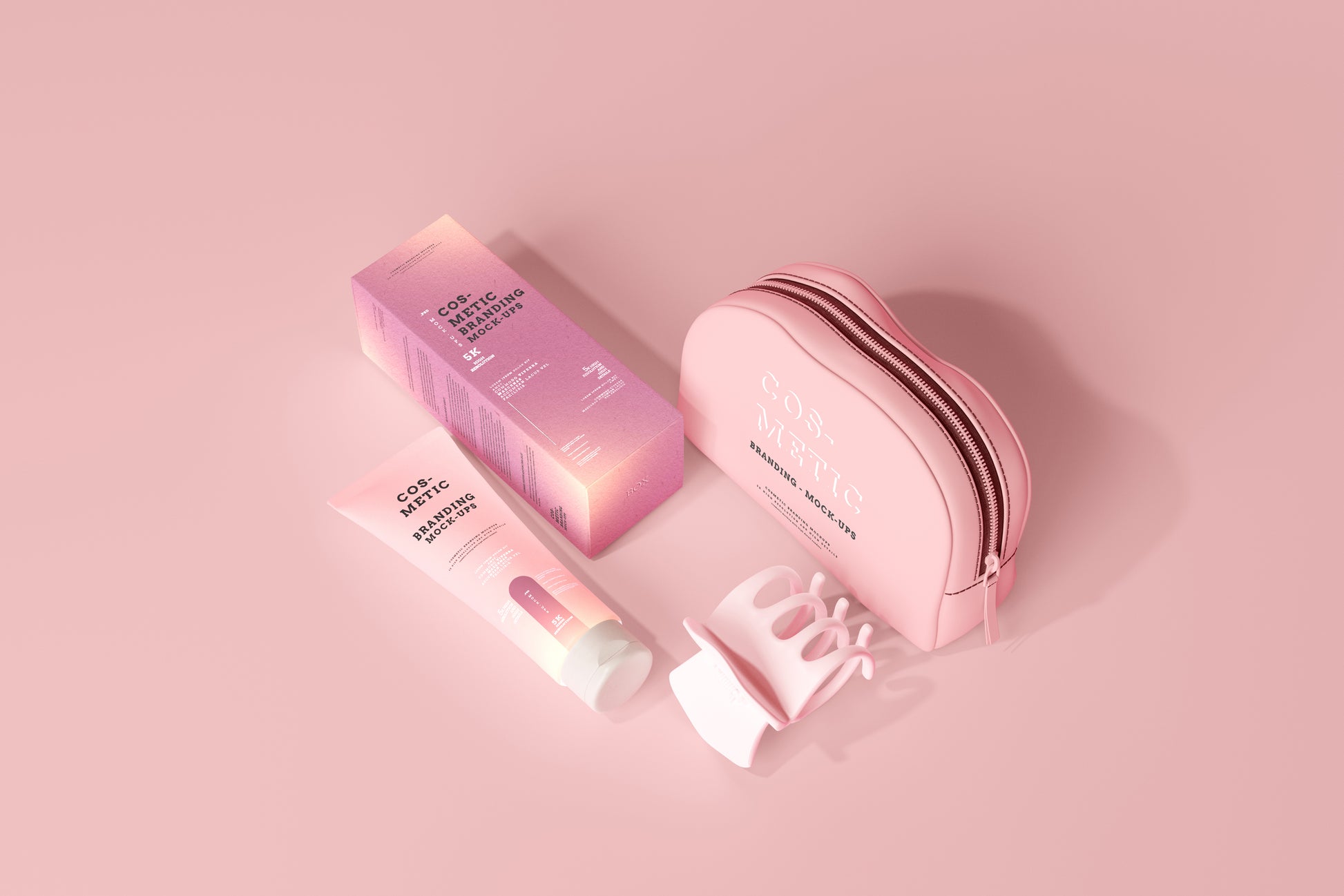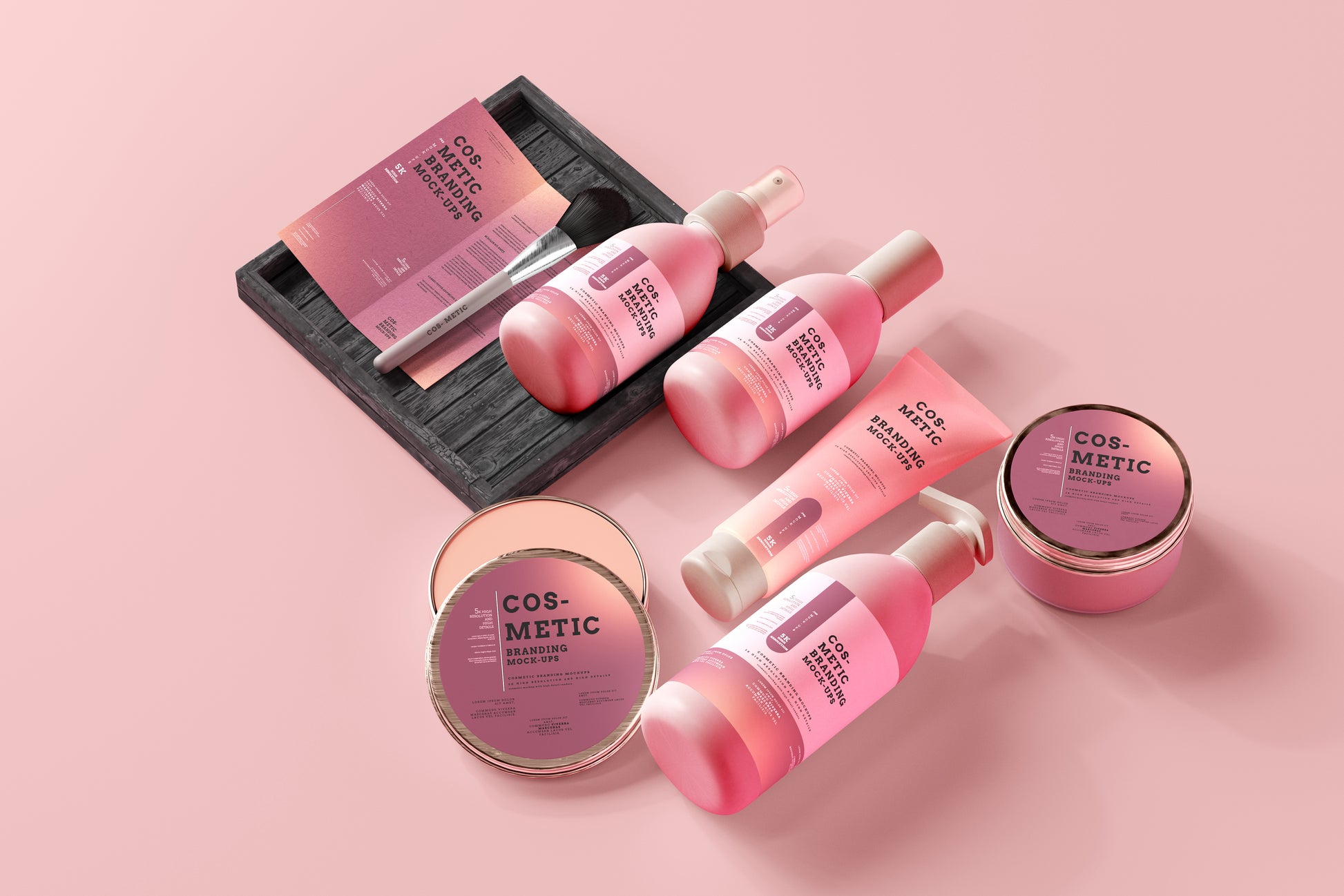 101x Cosmetic Branding Mockup Scenes featuring 6x packaging containers with boxes.