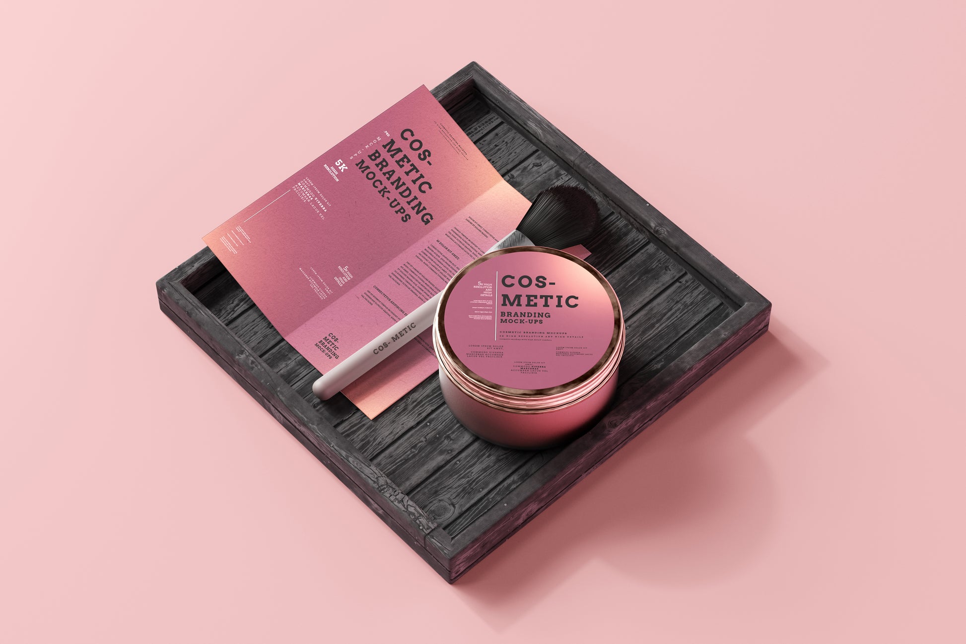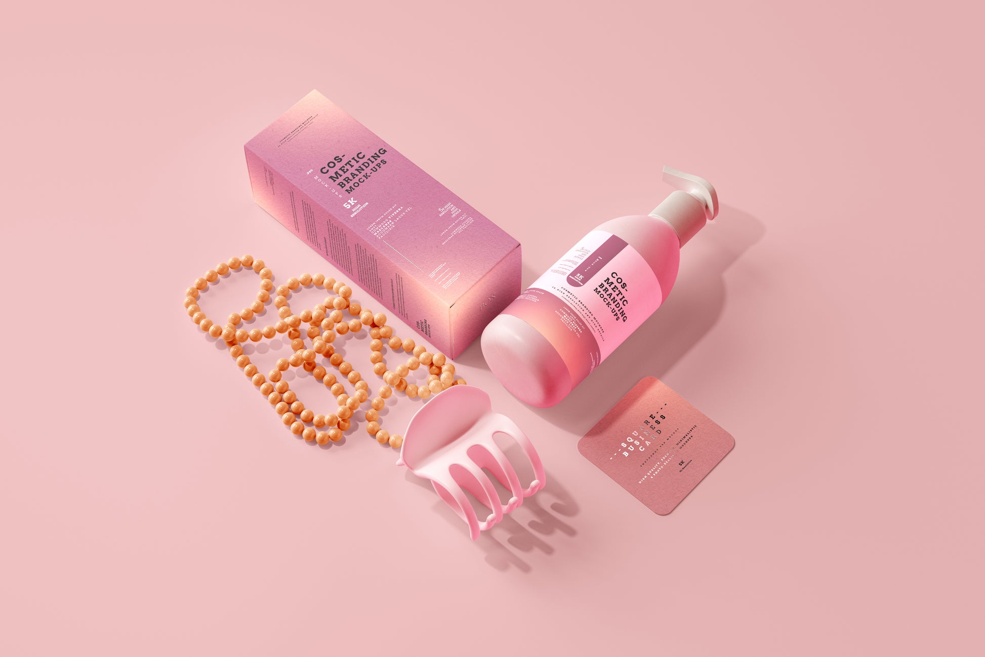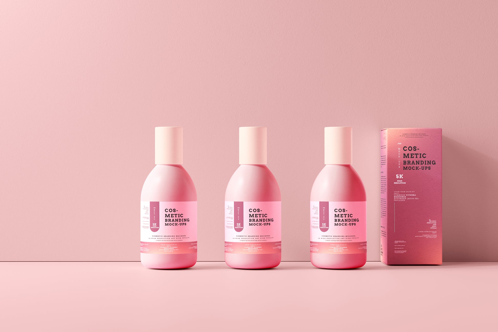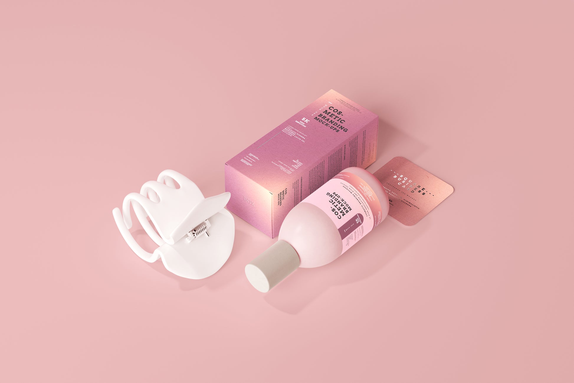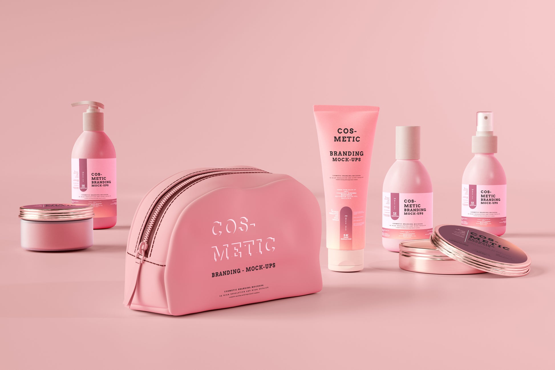 101x Cosmetic Branding Mockup Scenes featuring 6x packaging containers with boxes.