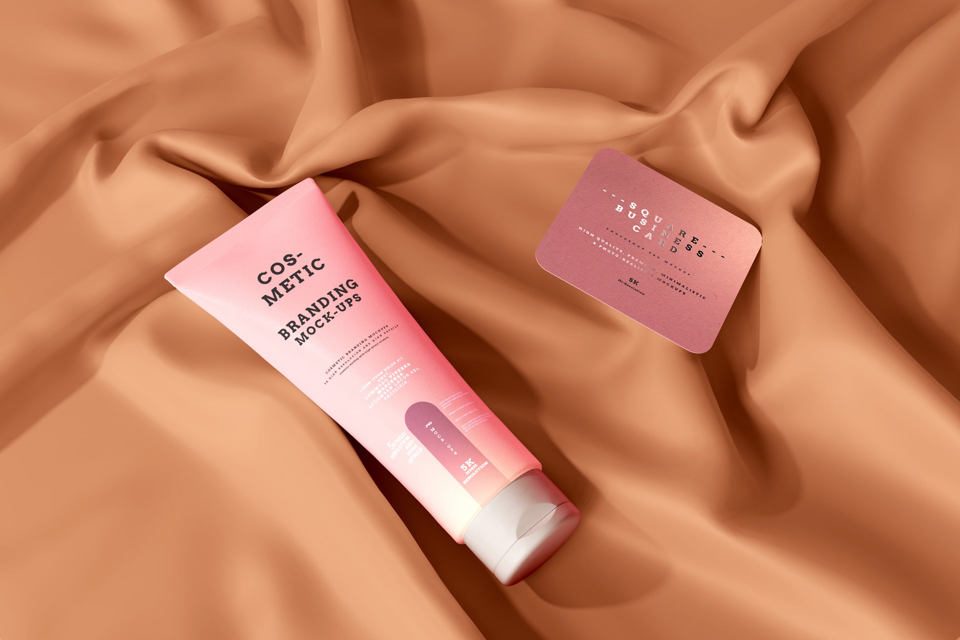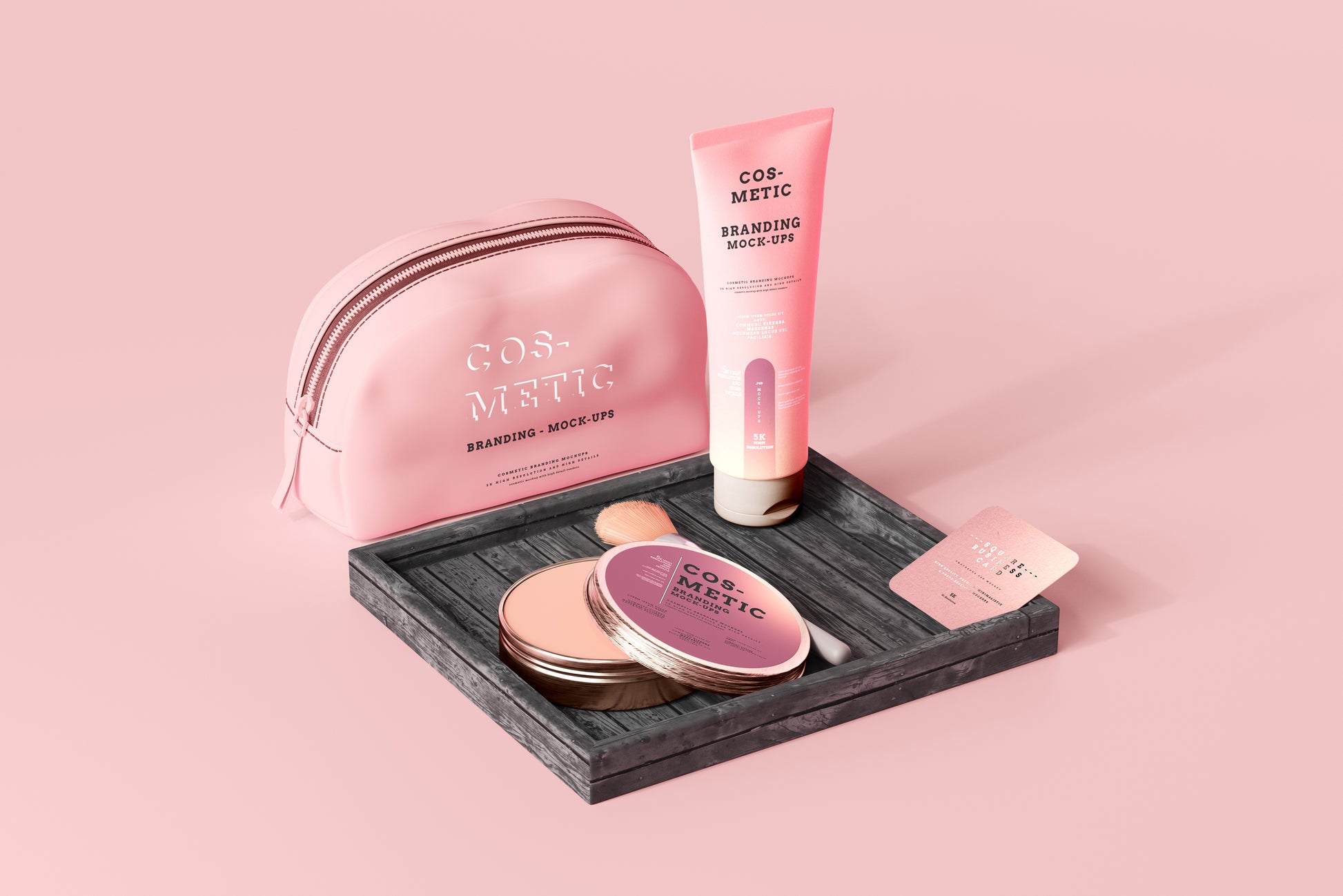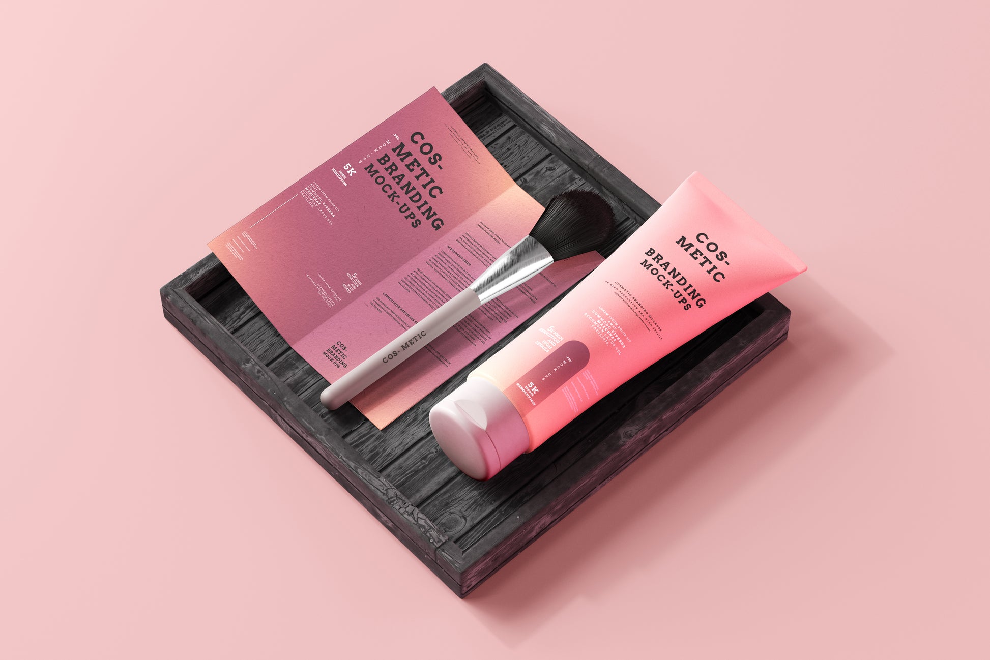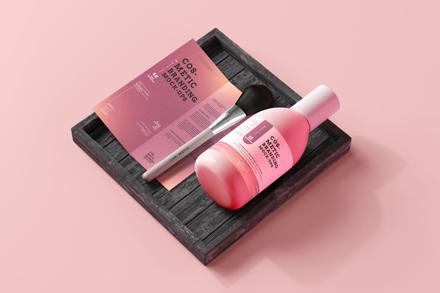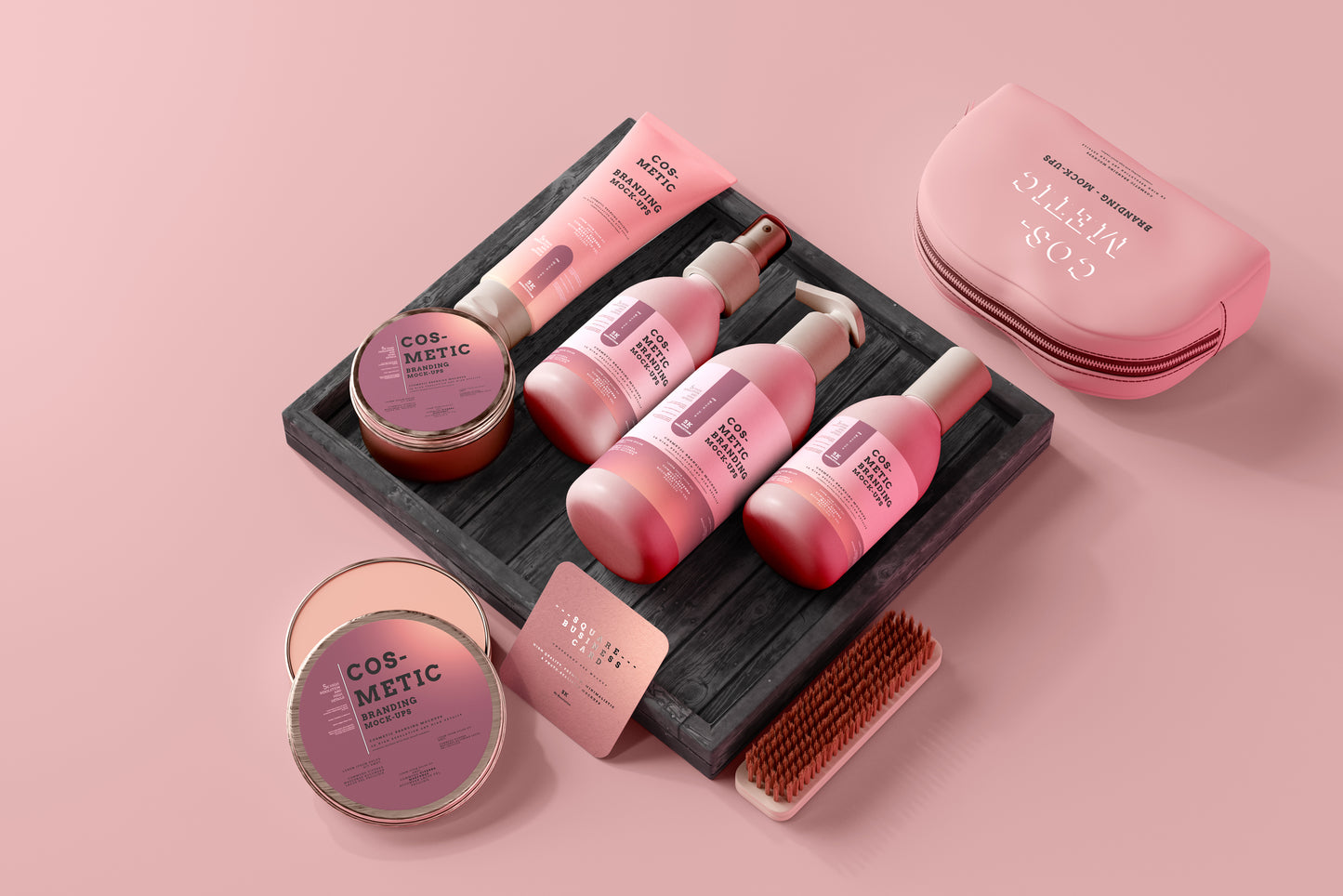 101x Cosmetic Branding Mockup Scenes featuring 6x packaging containers with boxes.