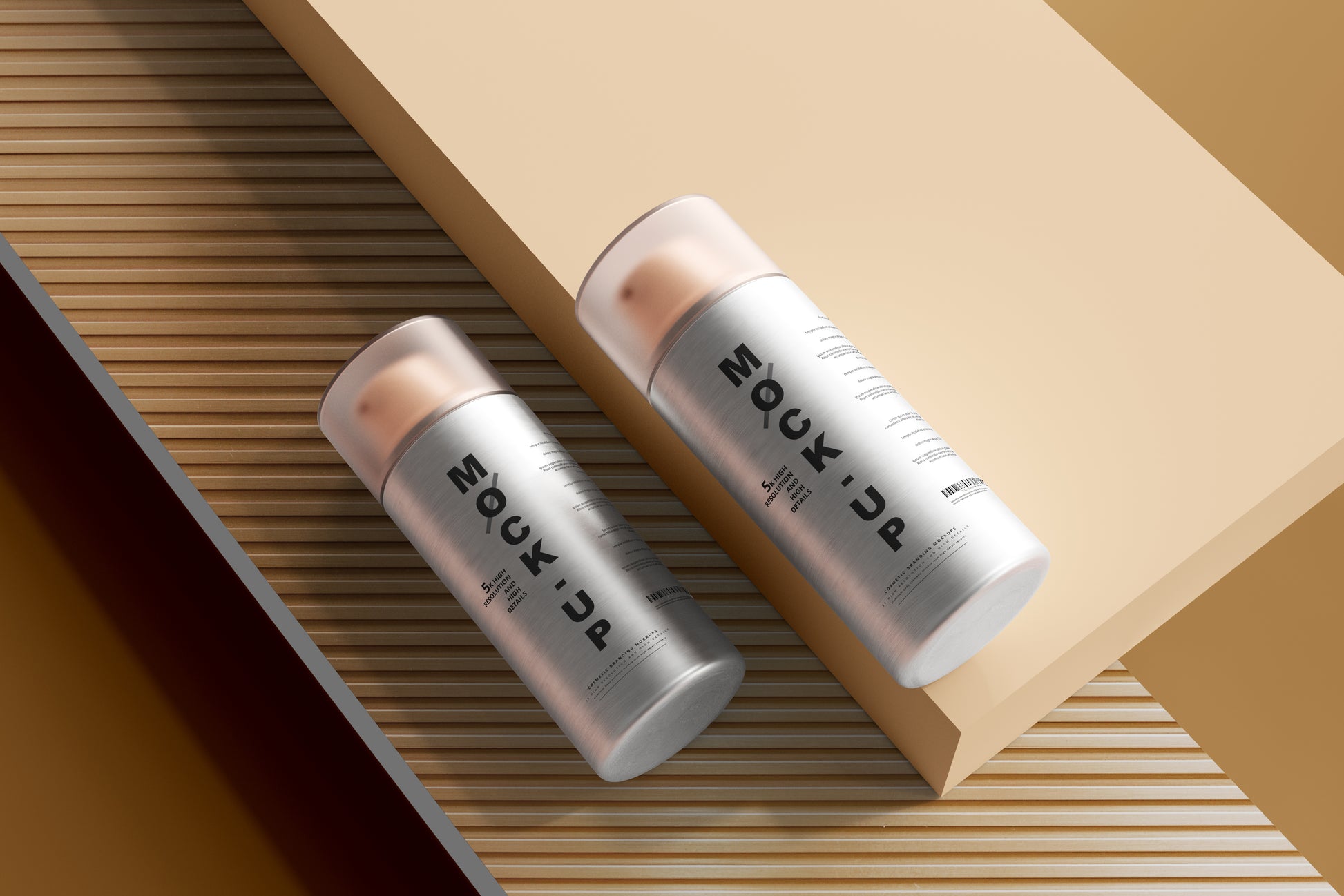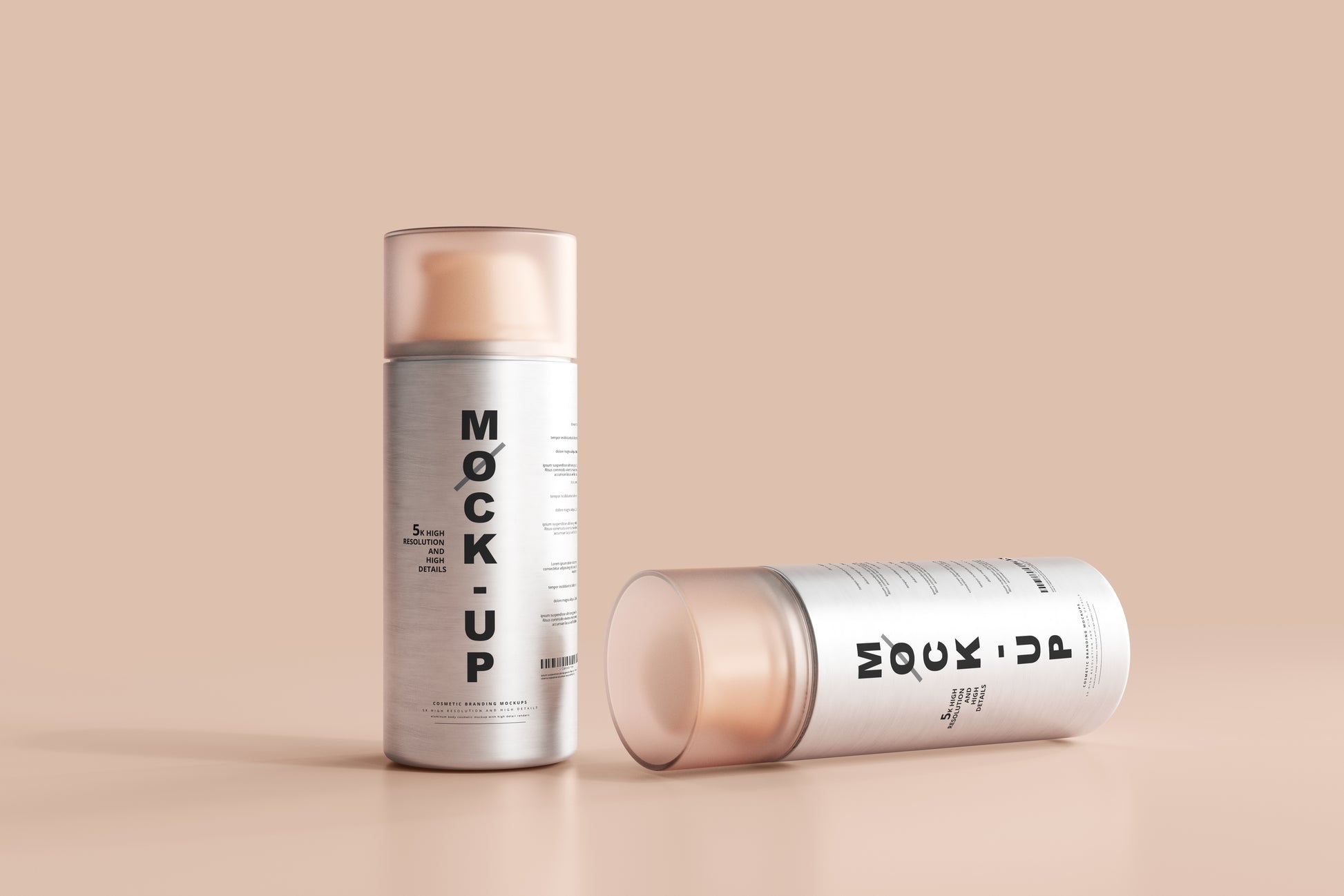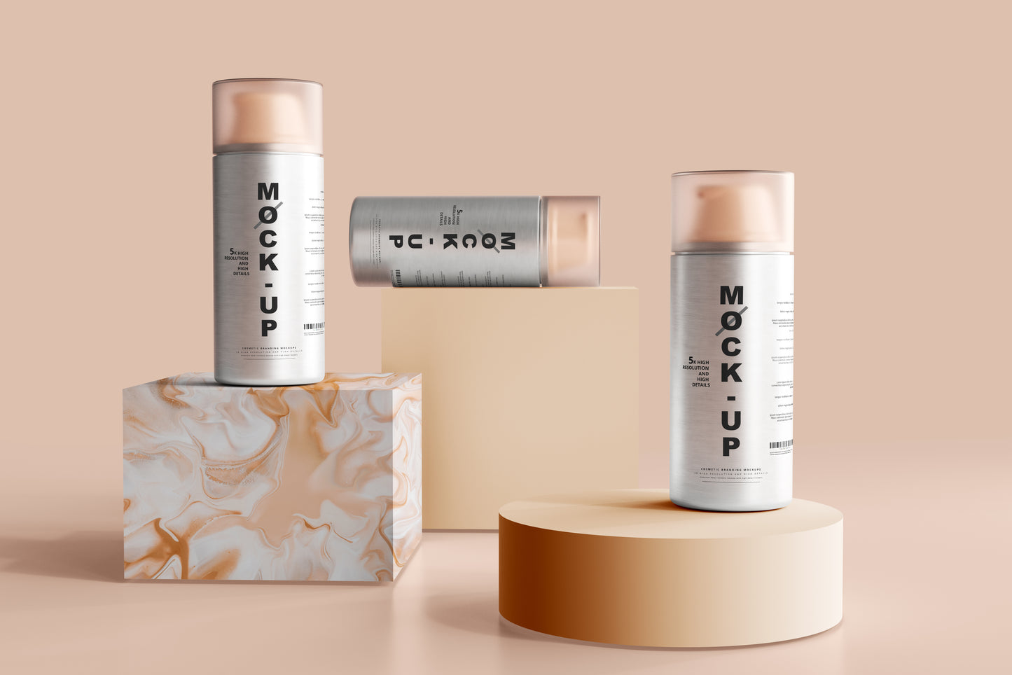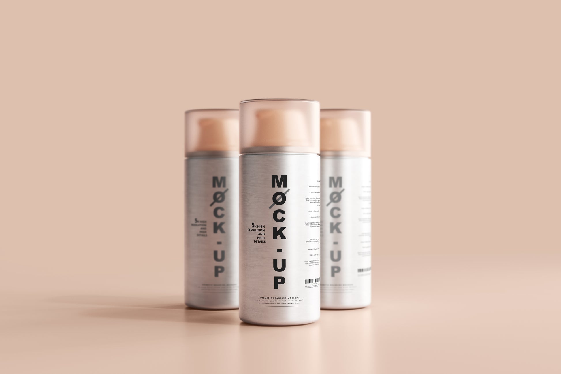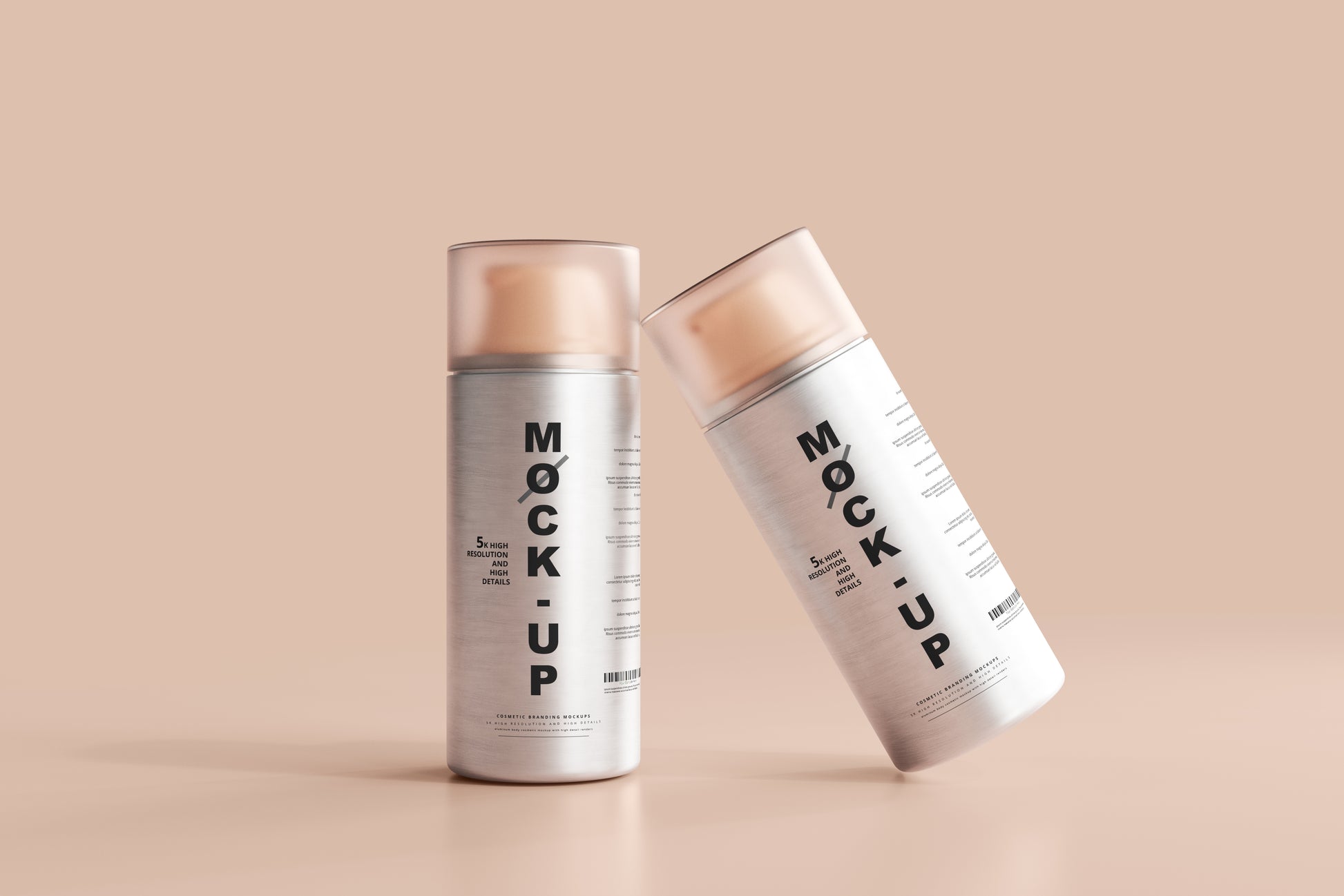 Aluminum bottle mockups which are most commonly used in cosmetic product packaging.