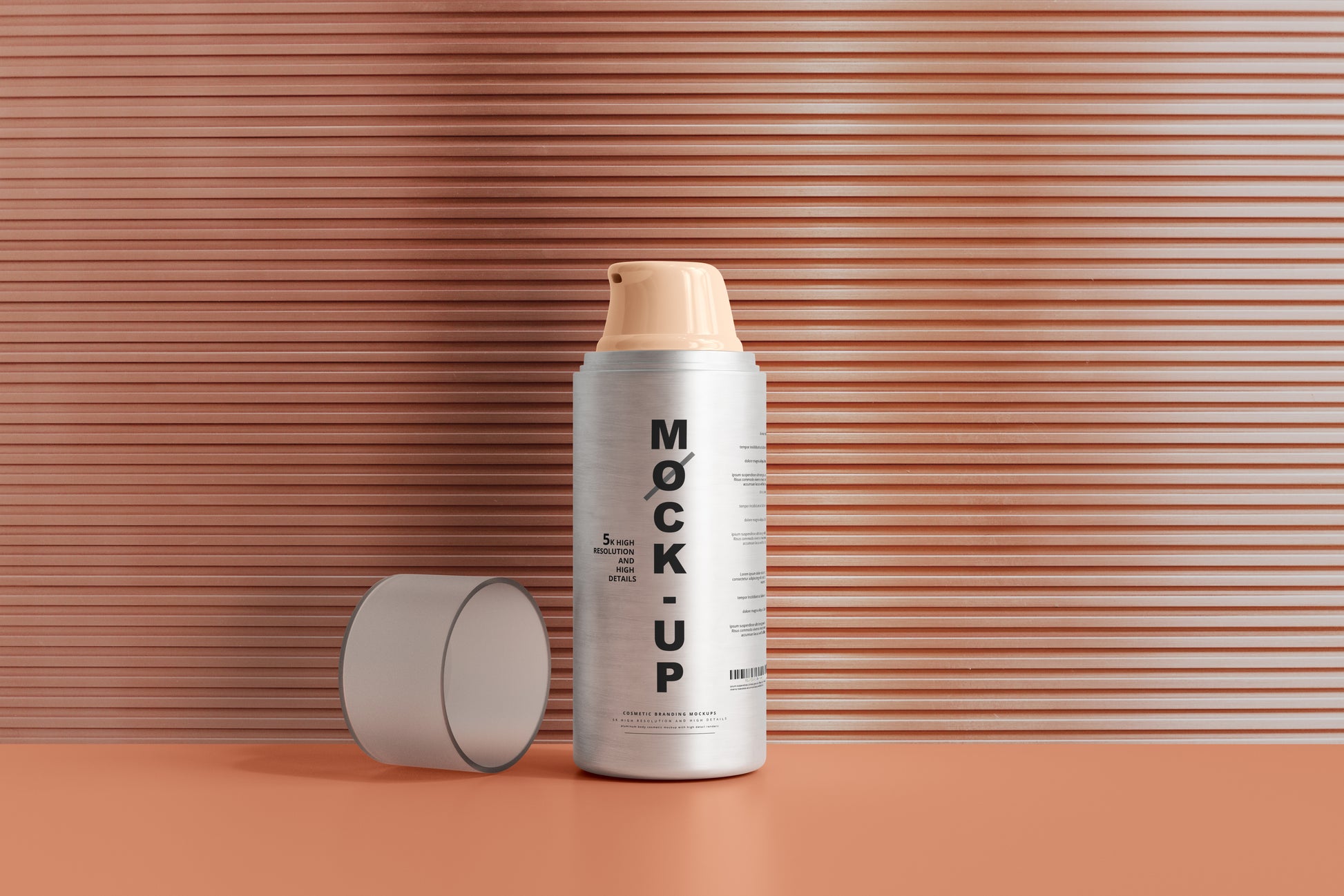 Aluminum Body Cosmetic Pump Bottle Mockup