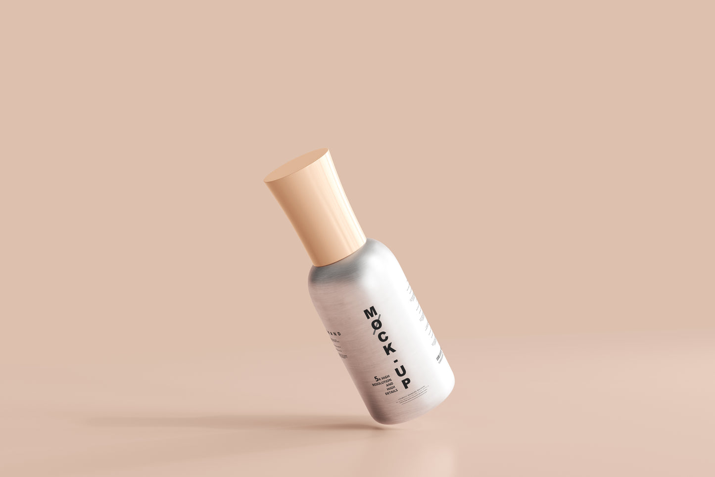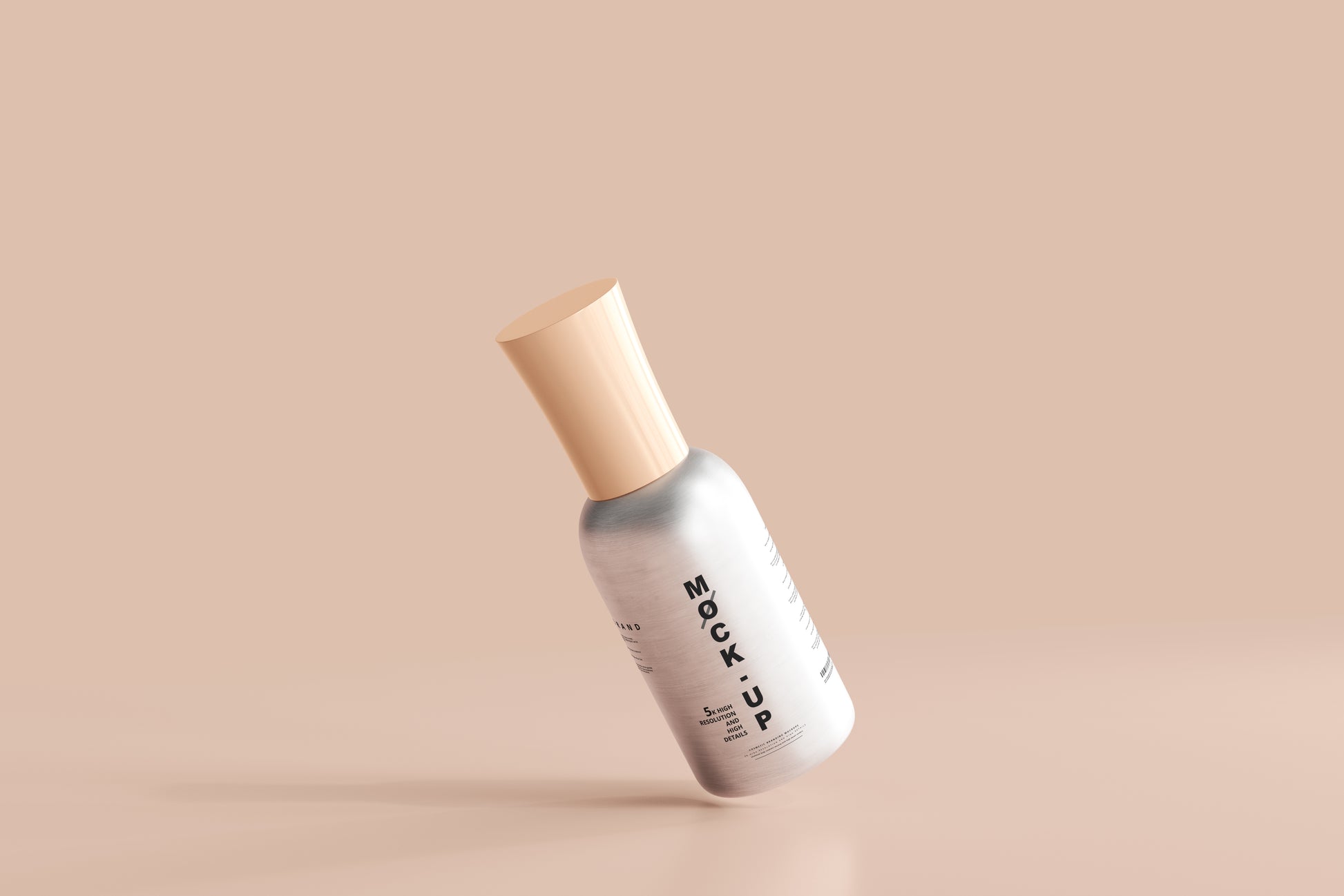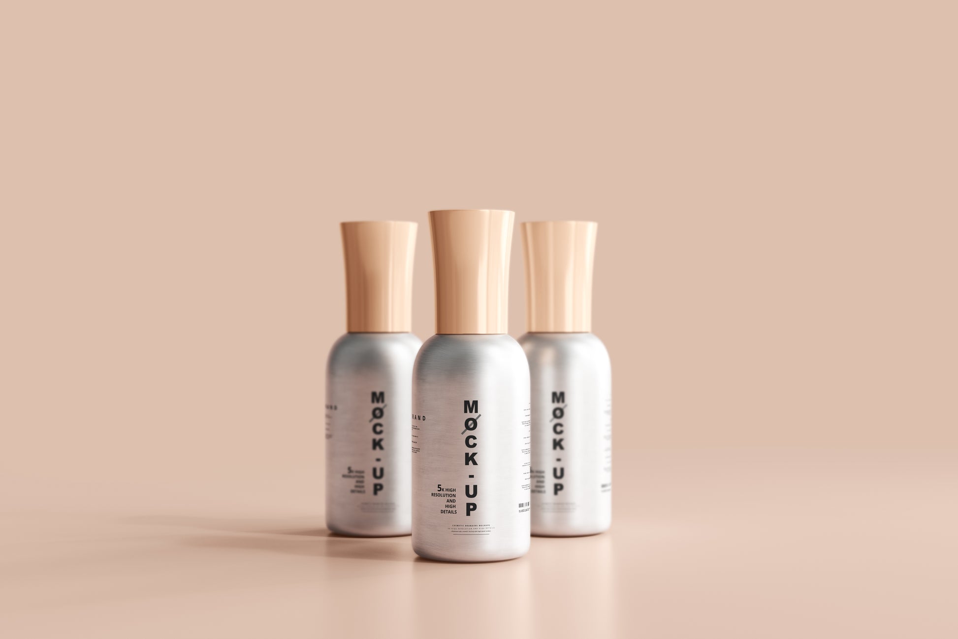 Aluminum bottle mockups which are most commonly used in cosmetic product packaging.