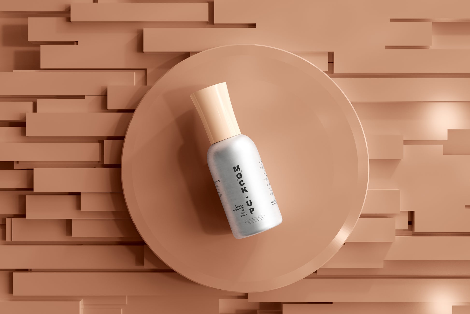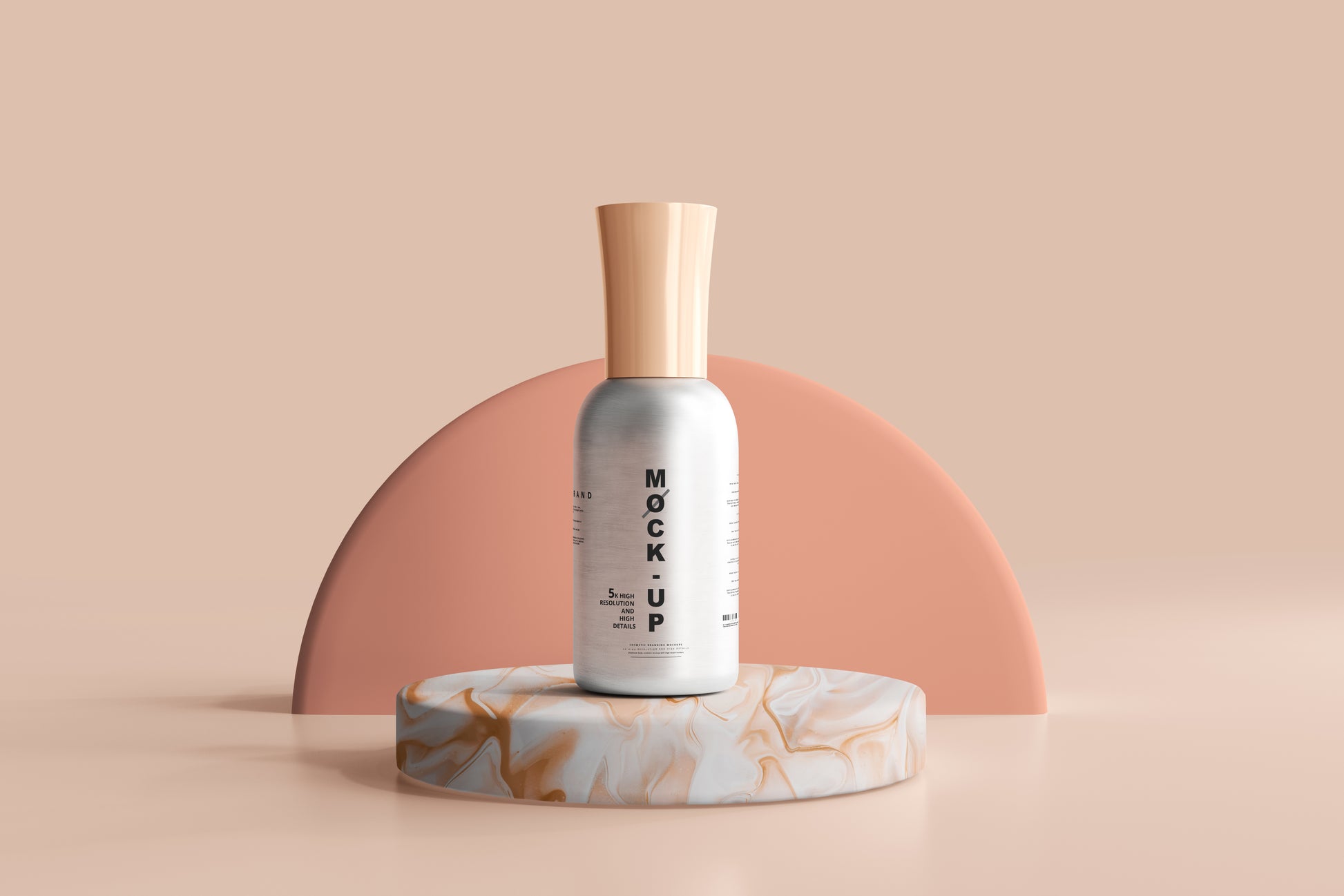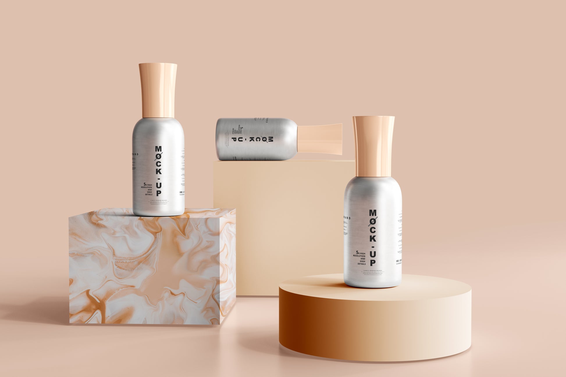 Aluminum bottle mockups which are most commonly used in cosmetic product packaging.
