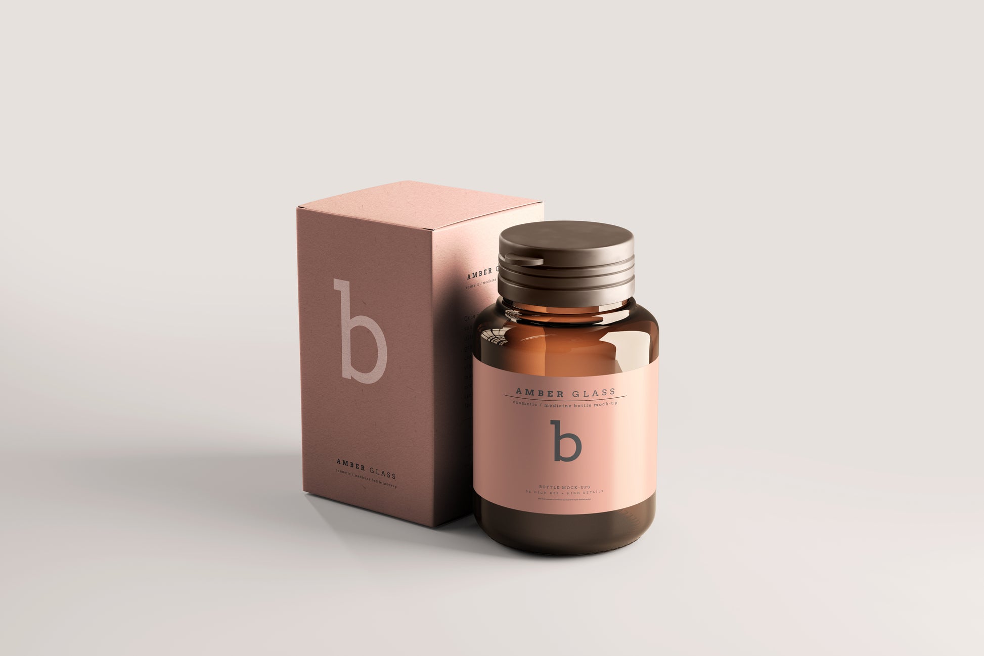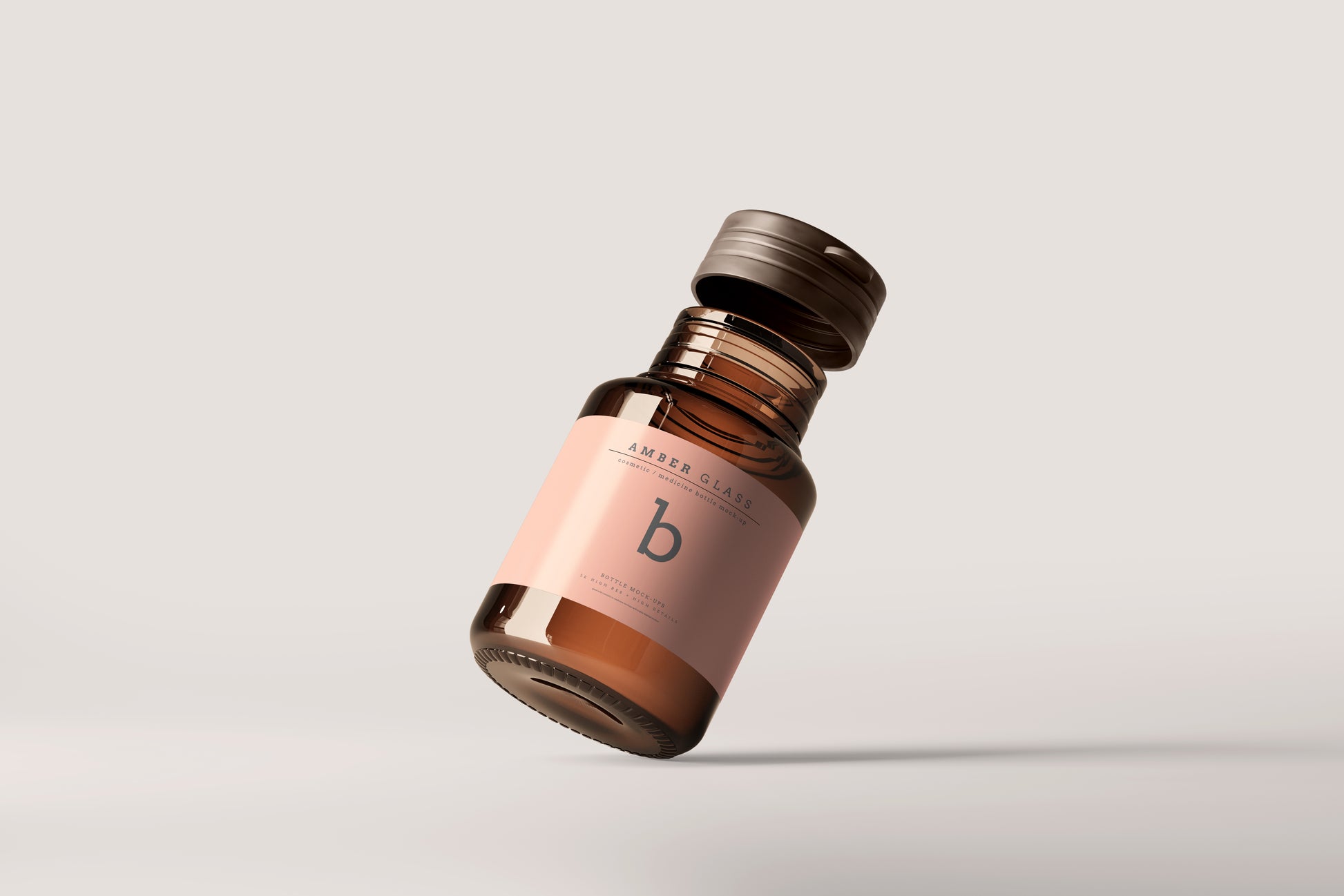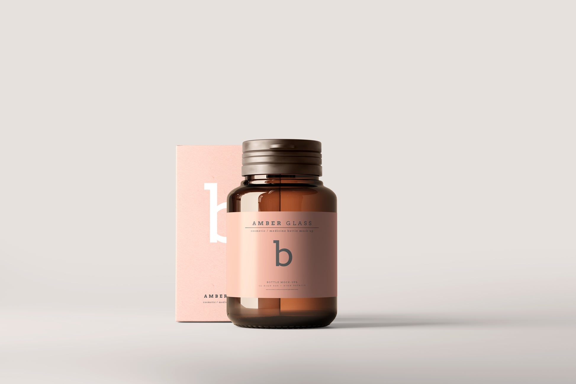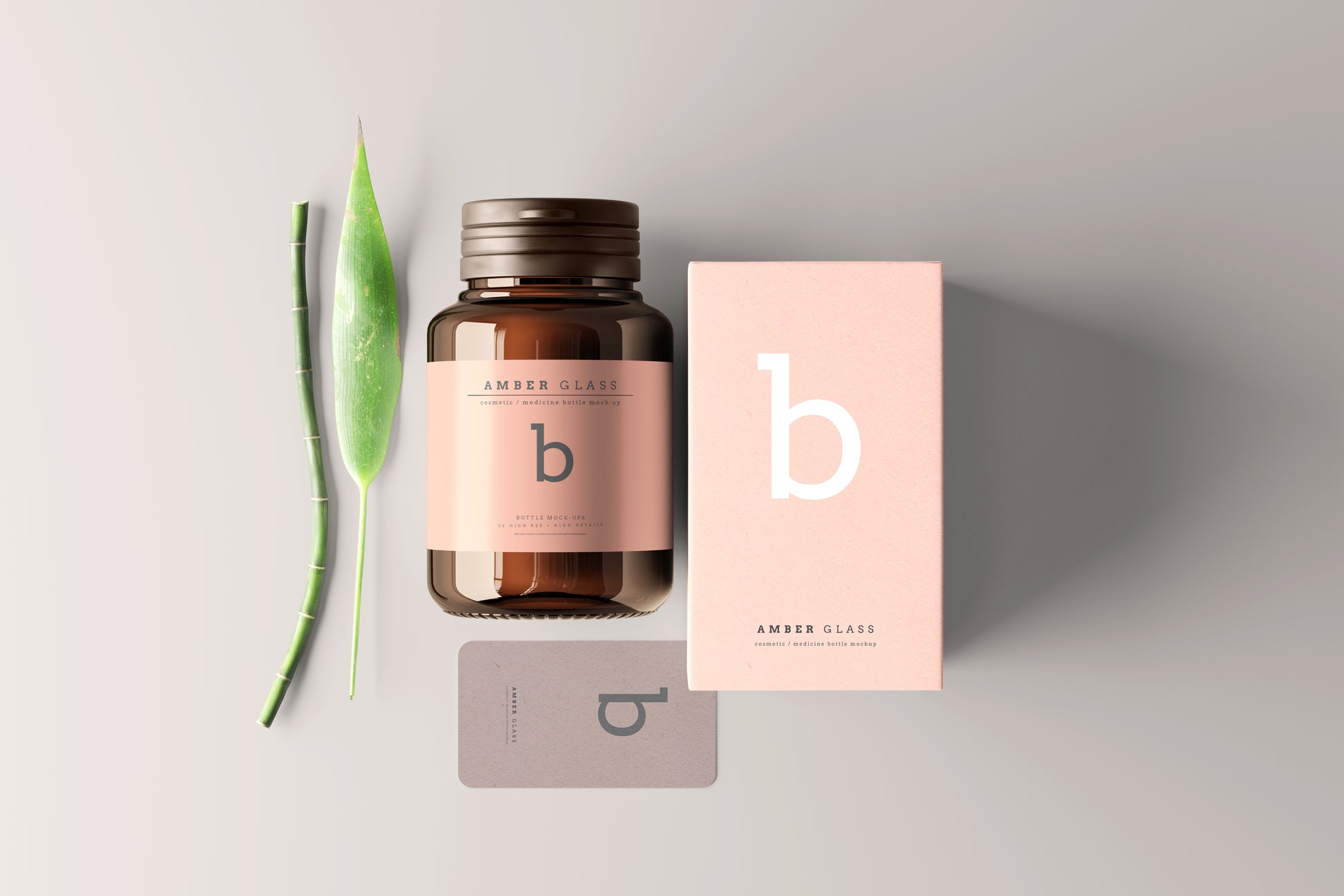 Amber Color Glass Cosmetic or Medicine Bottle Packaging Mockups.