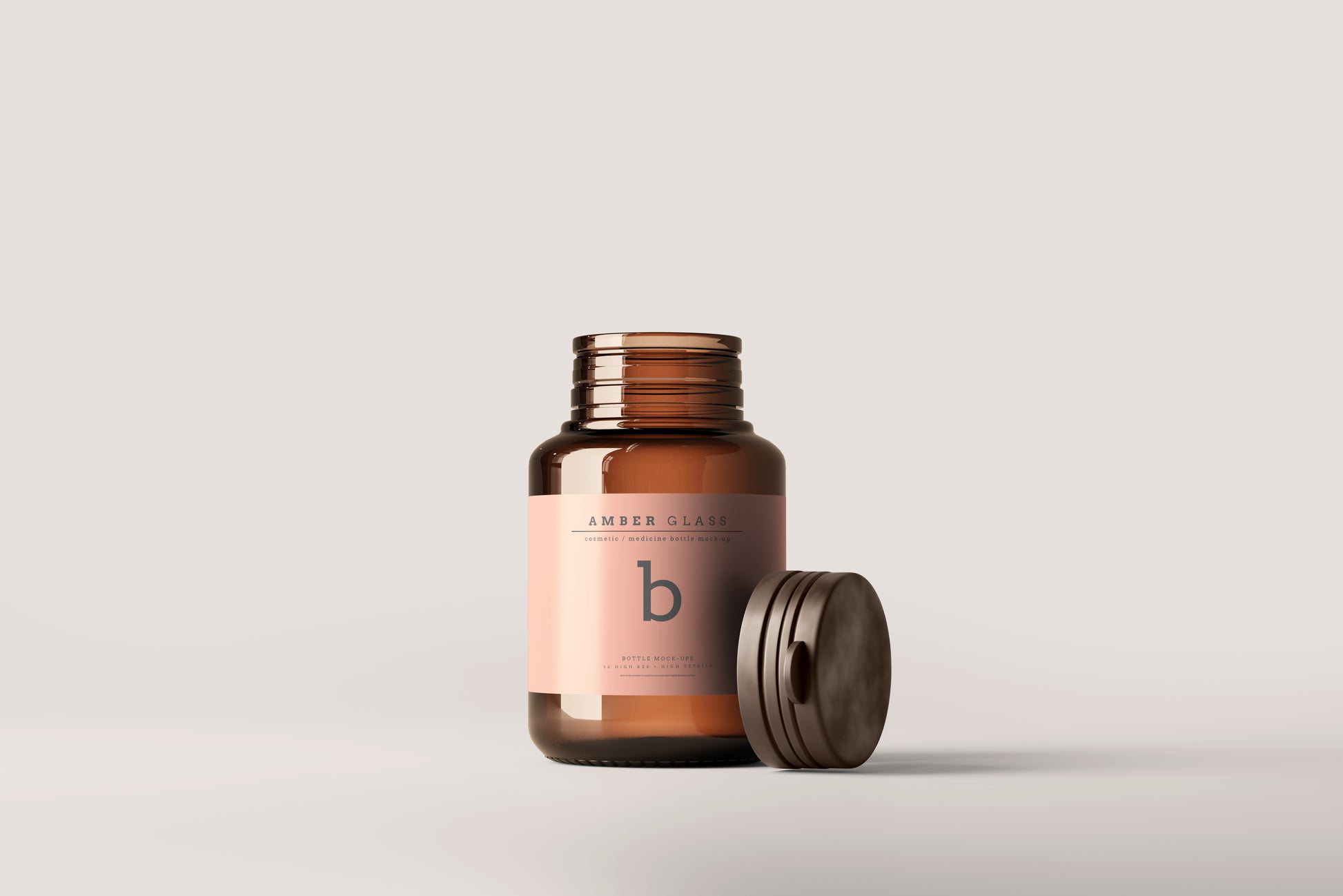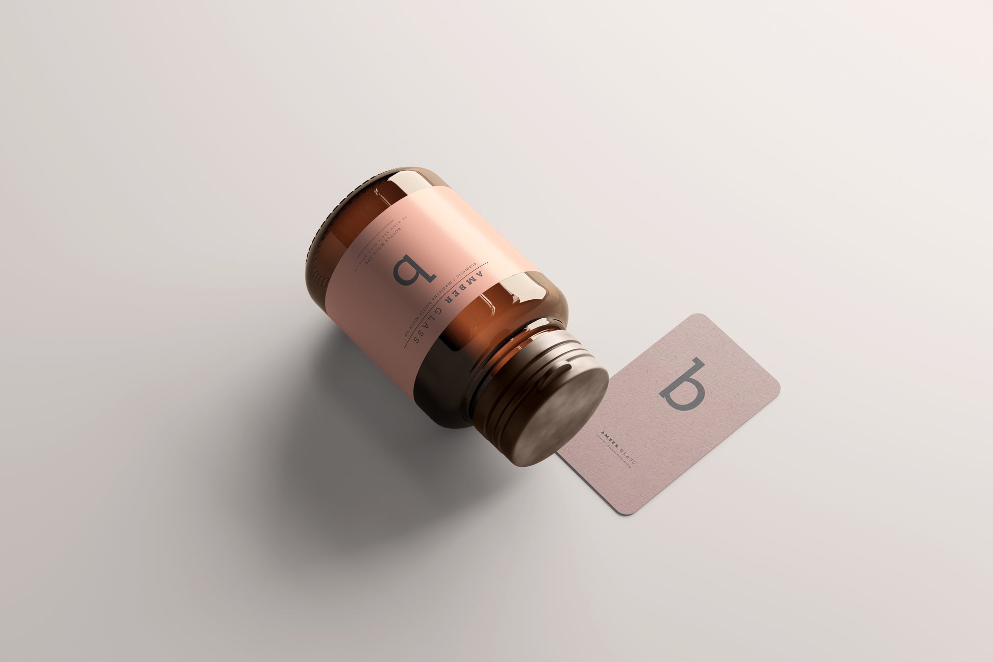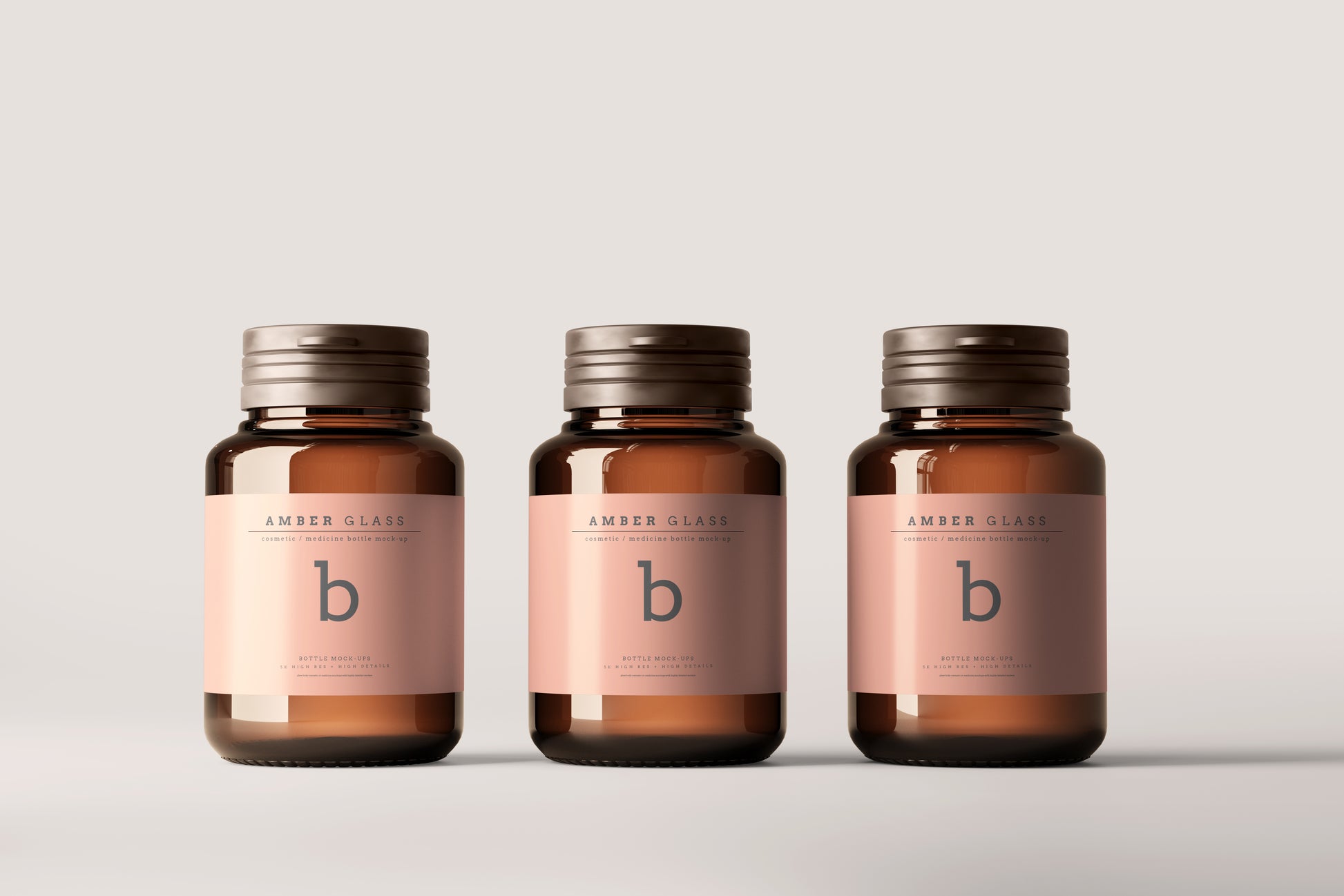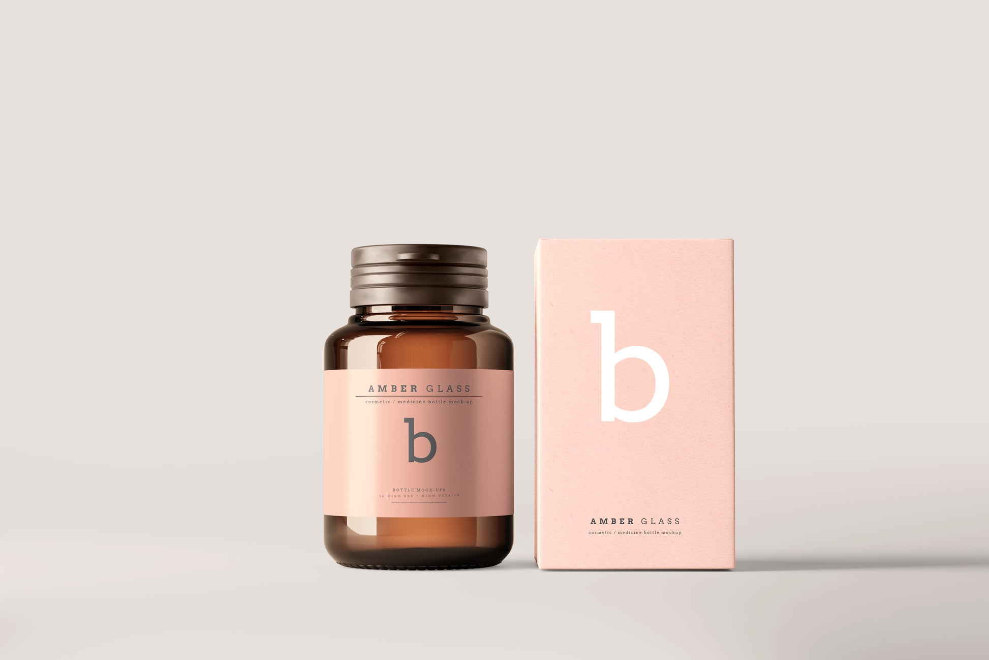 Amber Color Glass Cosmetic or Medicine Bottle Packaging Mockups.
