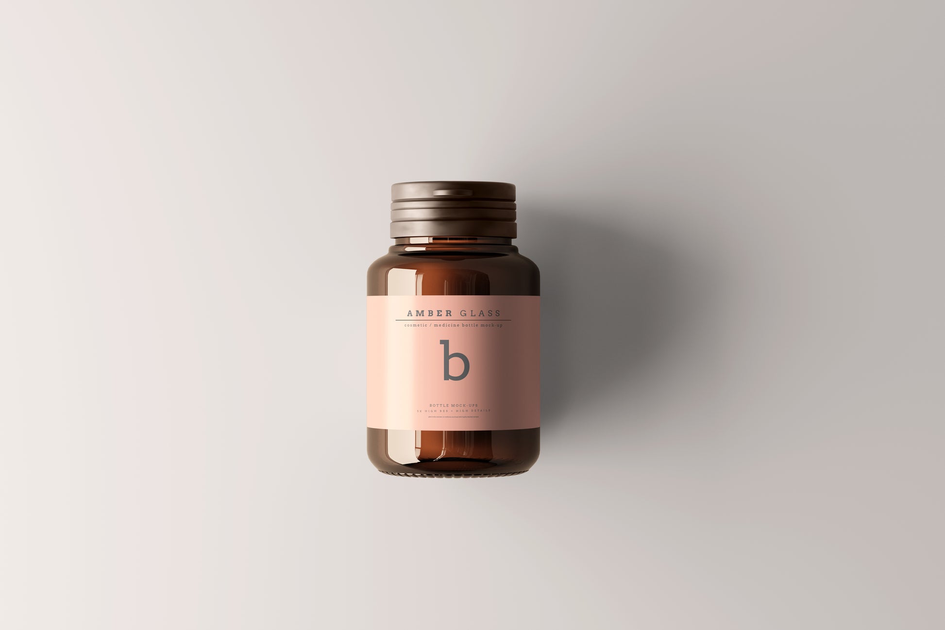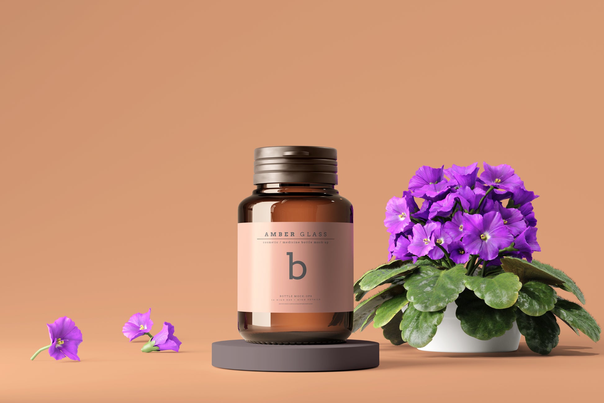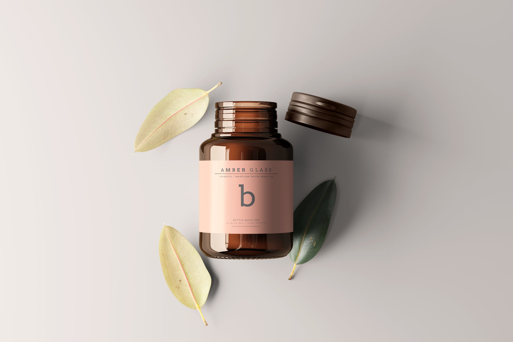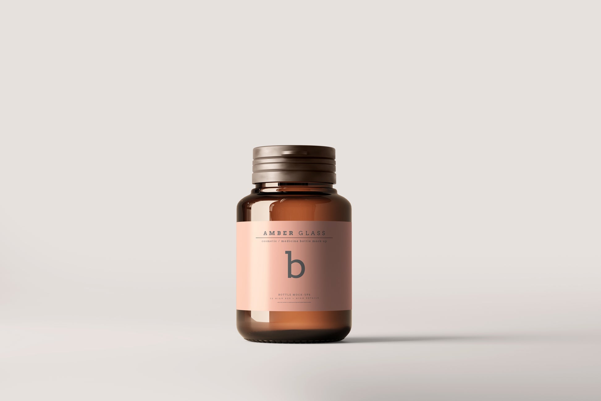 Amber Color Glass Cosmetic or Medicine Bottle Packaging Mockups.