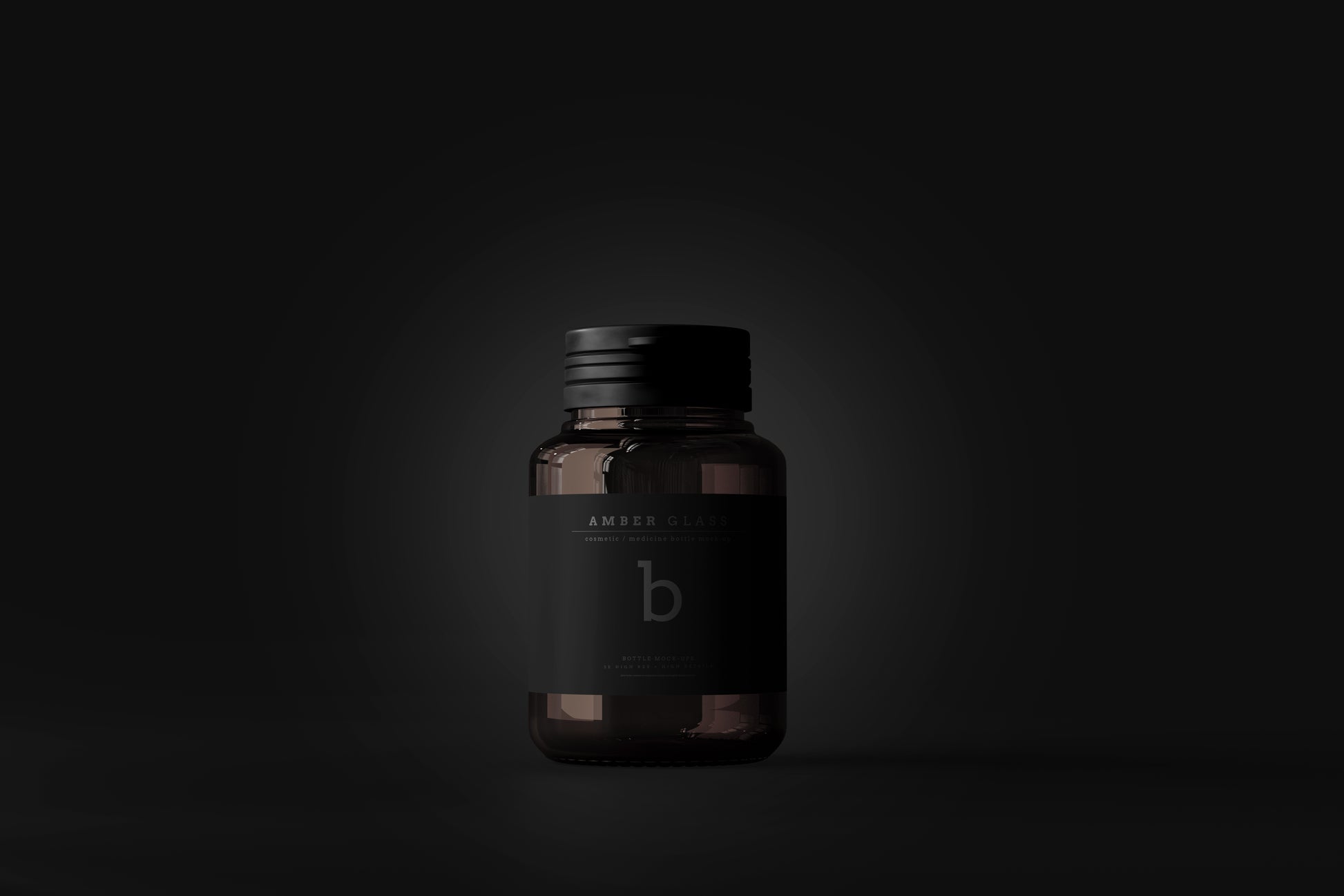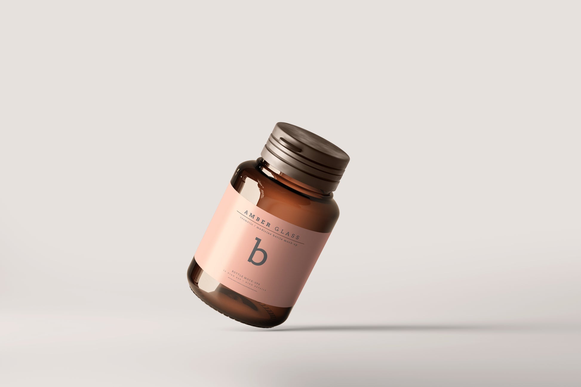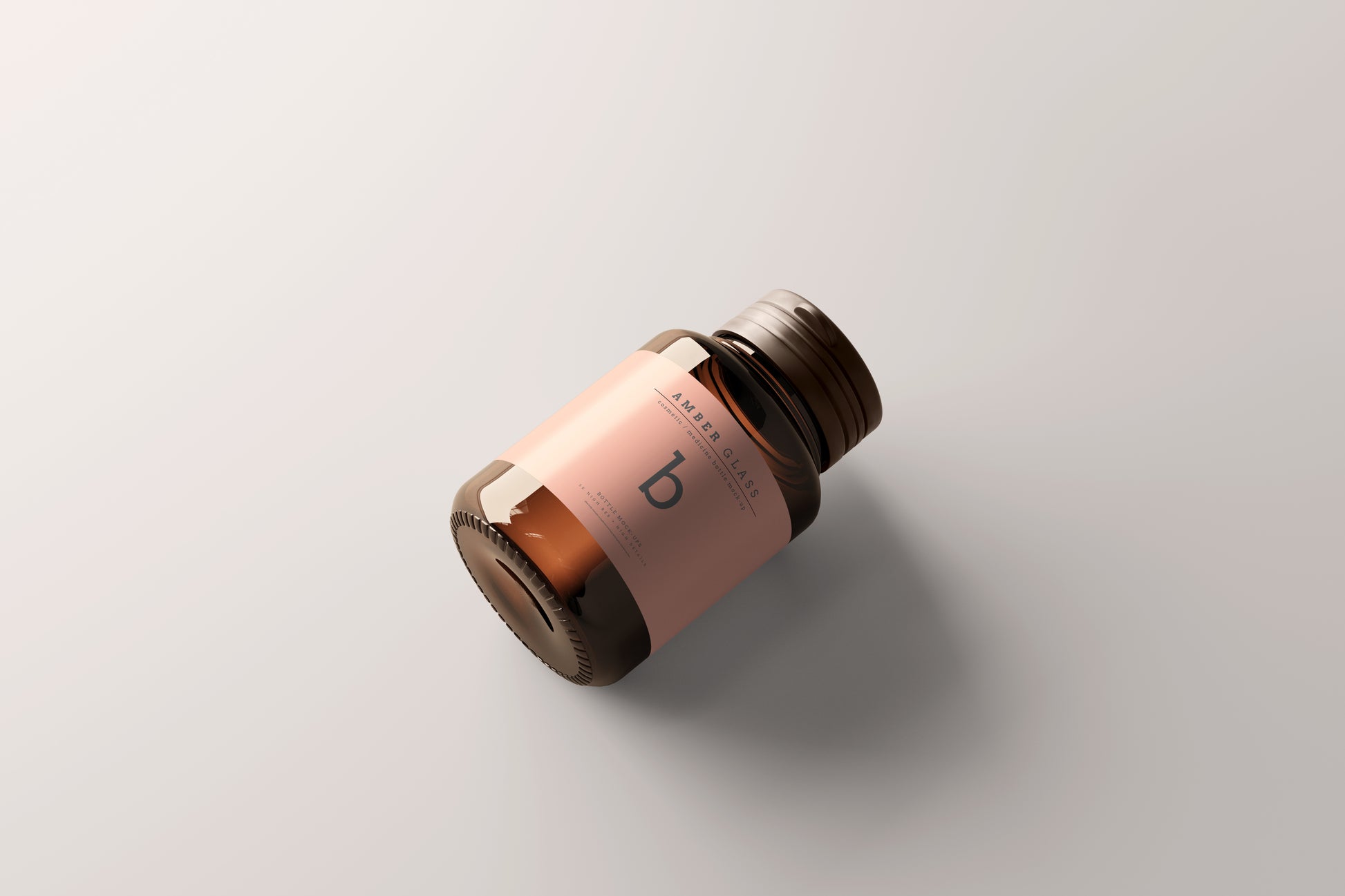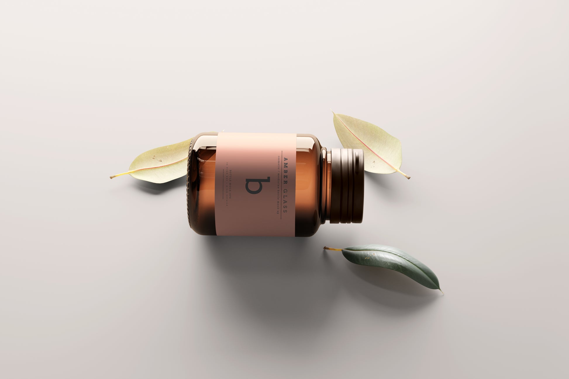 Amber Color Glass Cosmetic or Medicine Bottle Packaging Mockups.