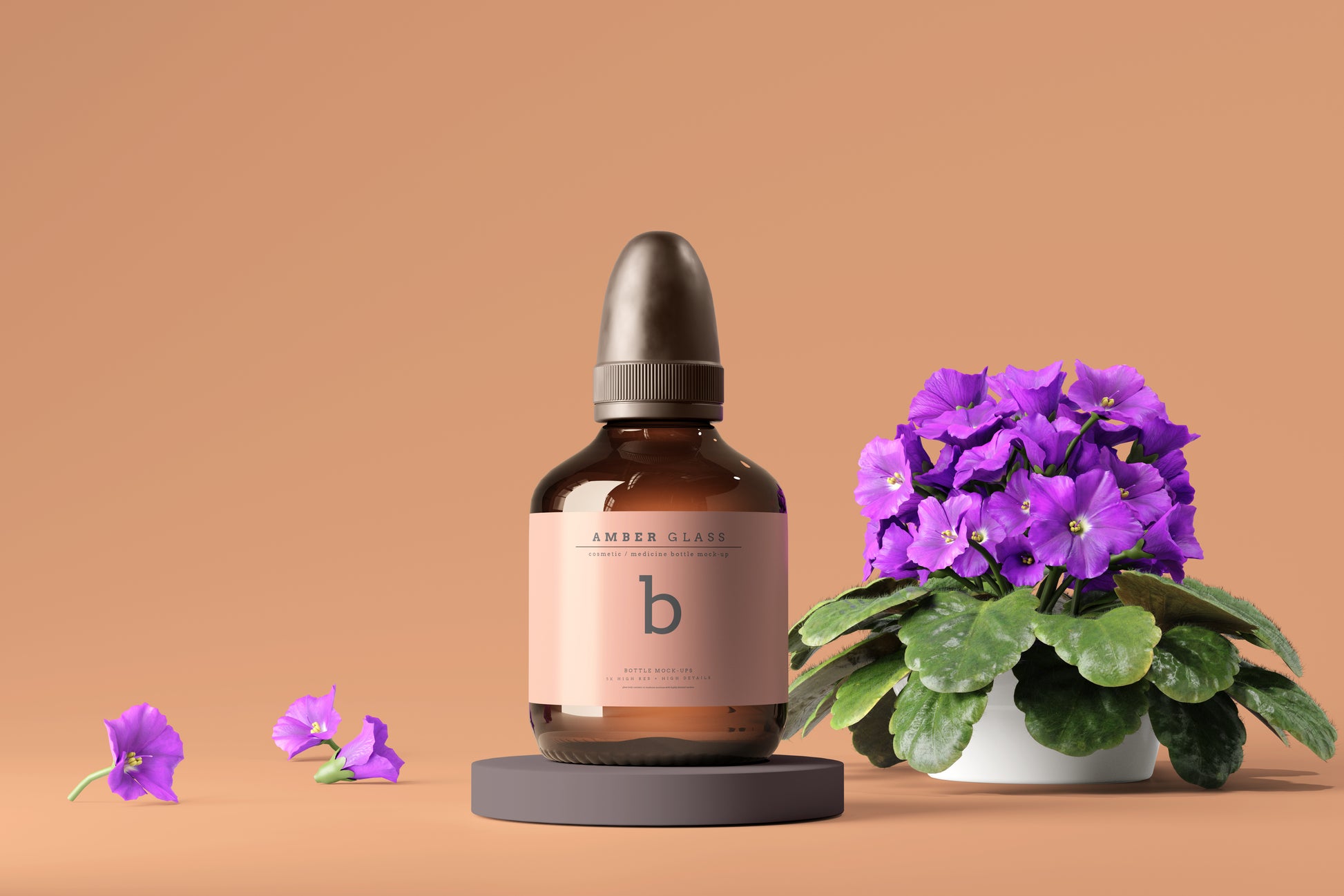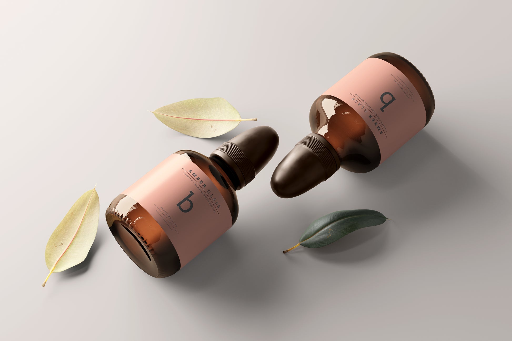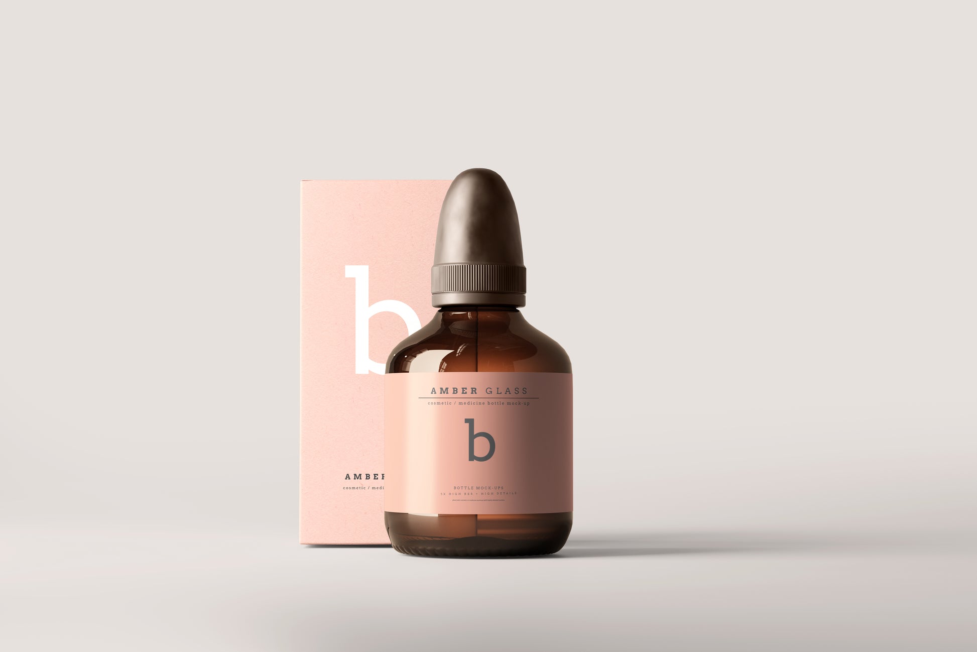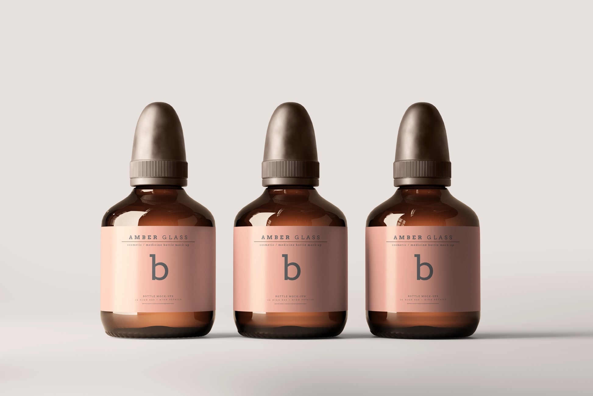 Amber Color Glass Cosmetic or Medicine Bottle Packaging Mockups.