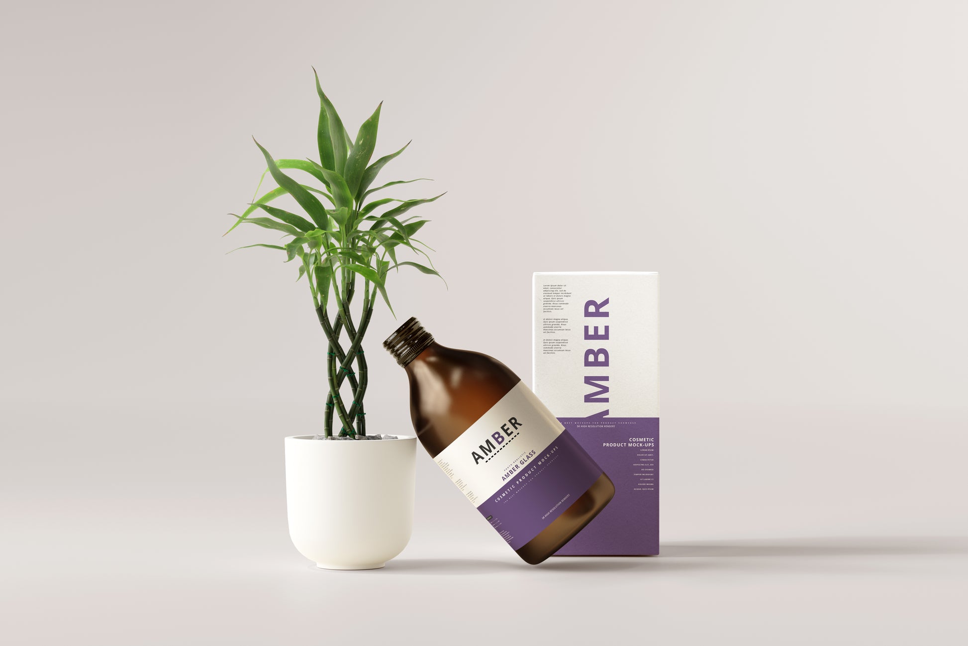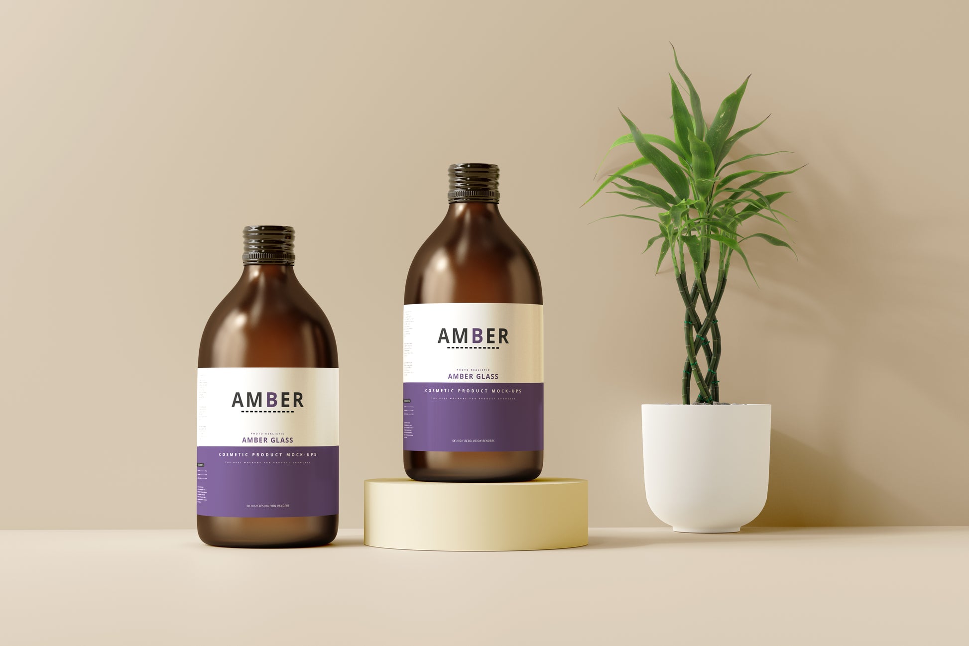 Amber Glass Bottle Mockups, A common type of bottle generally used for cosmetic and medical products.