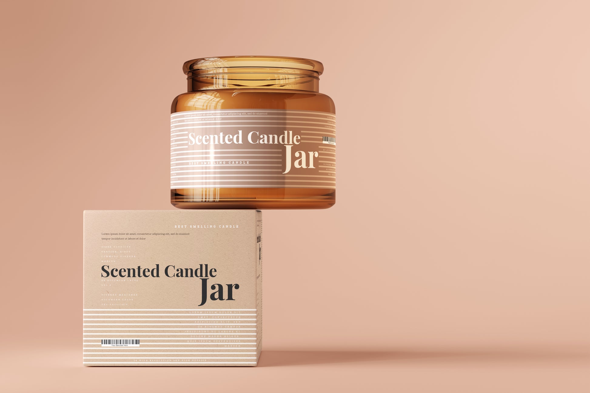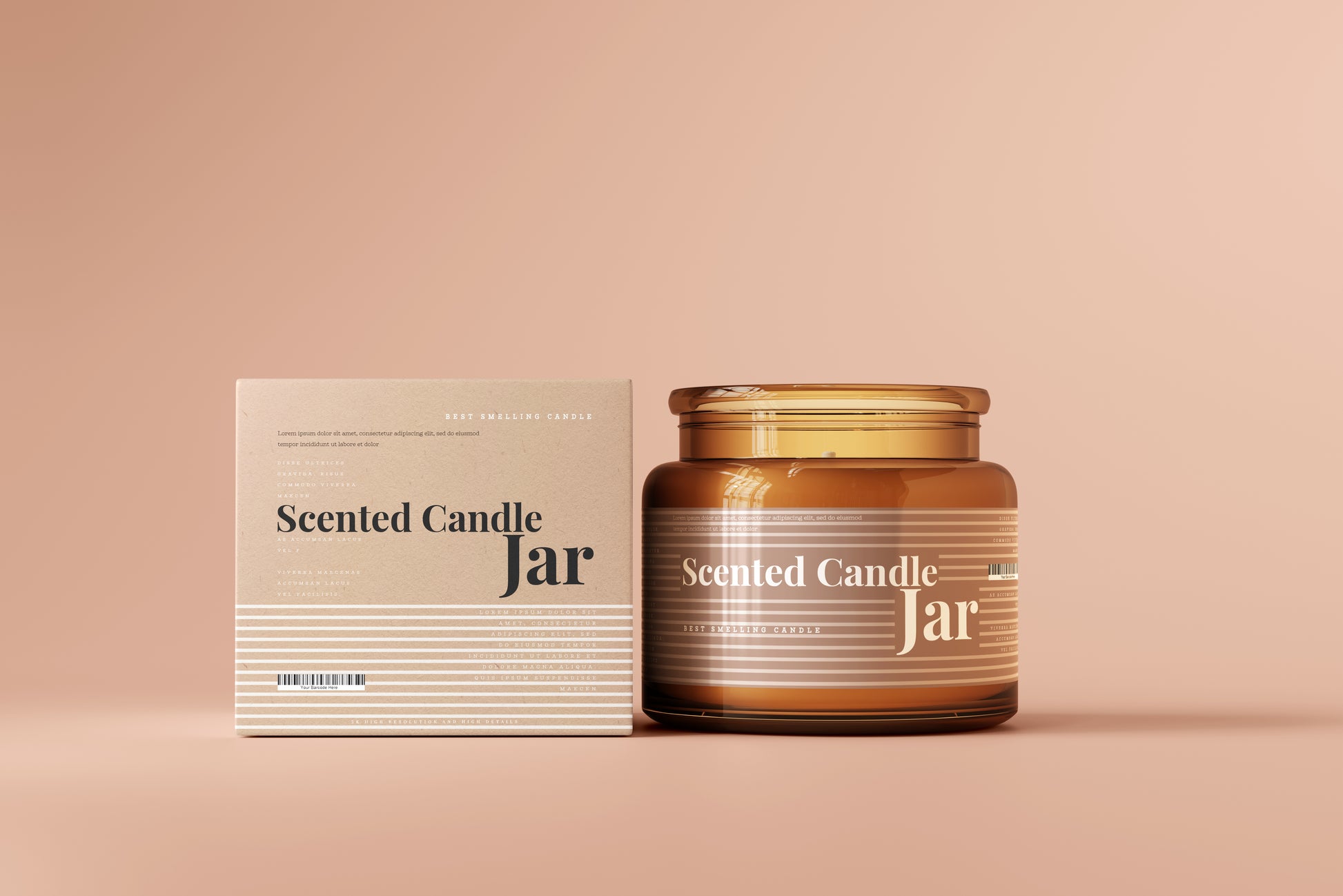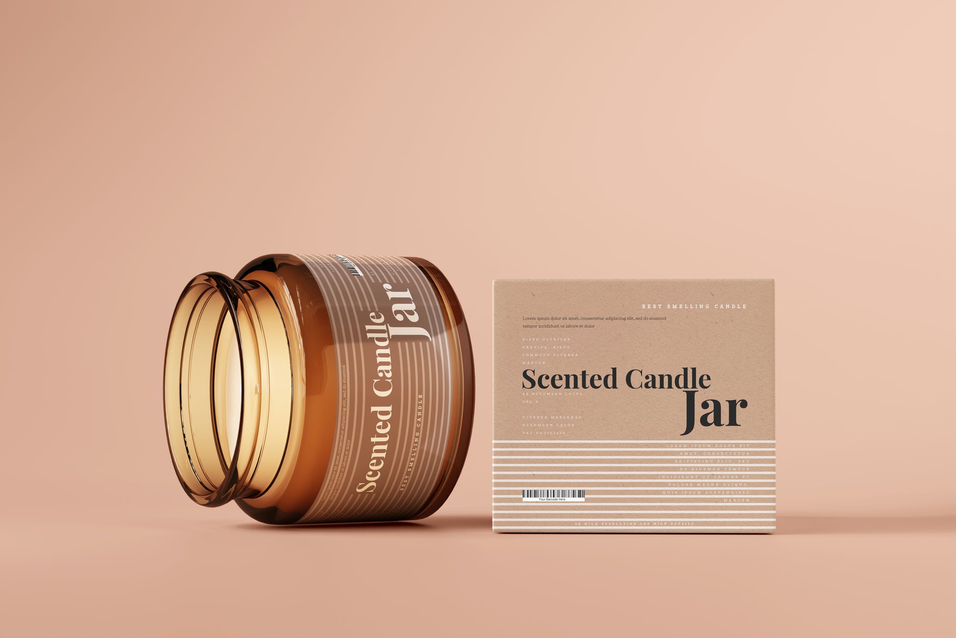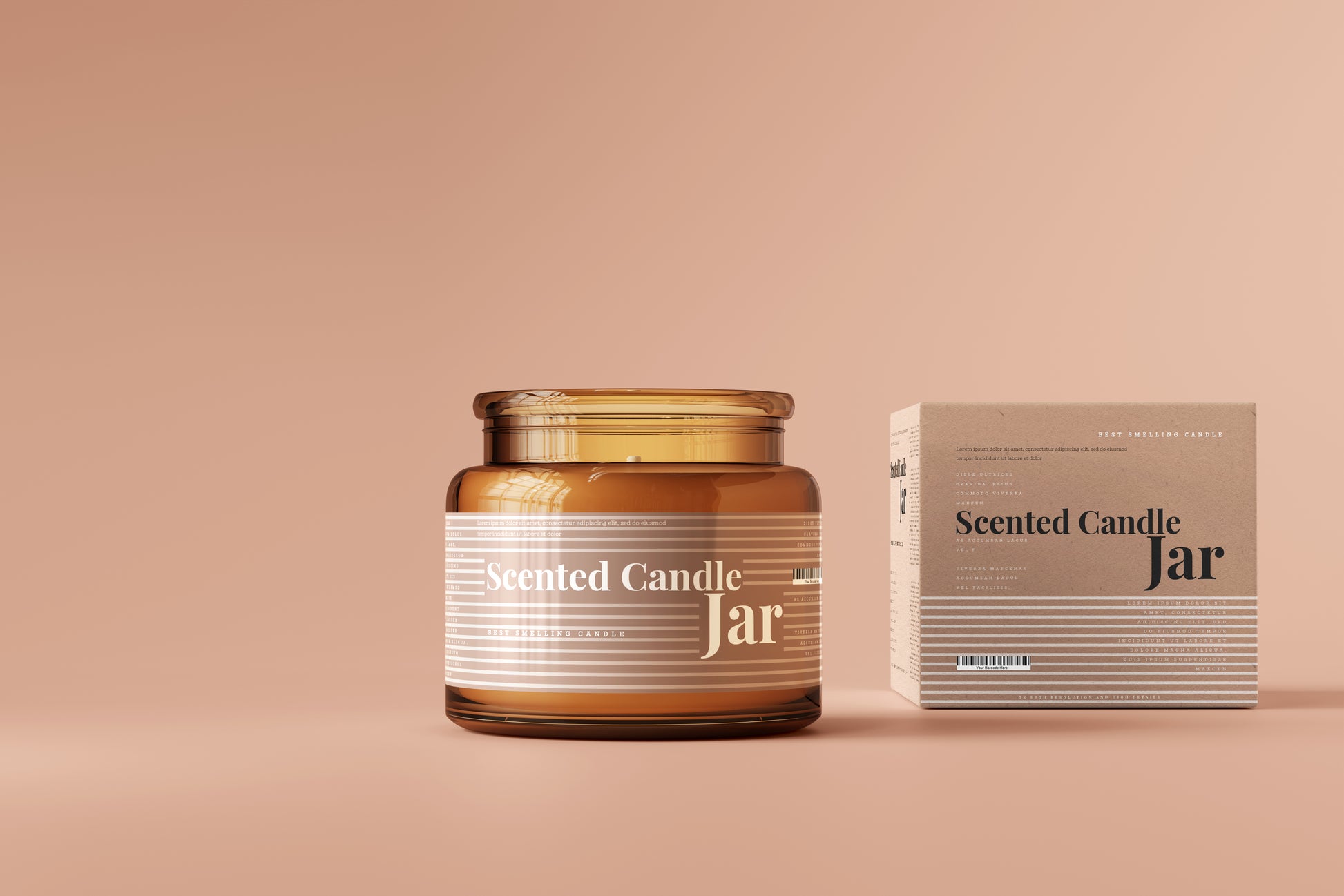 Amber Glass Candle Jar and Box Packaging Mockups