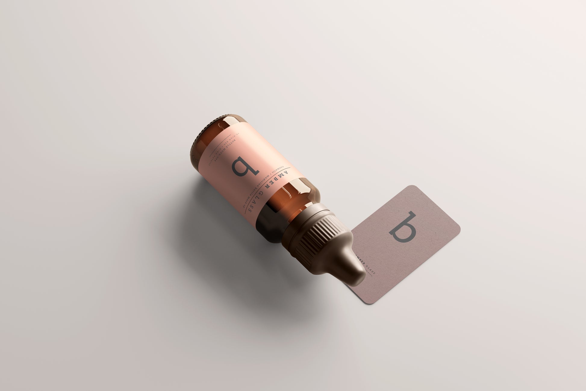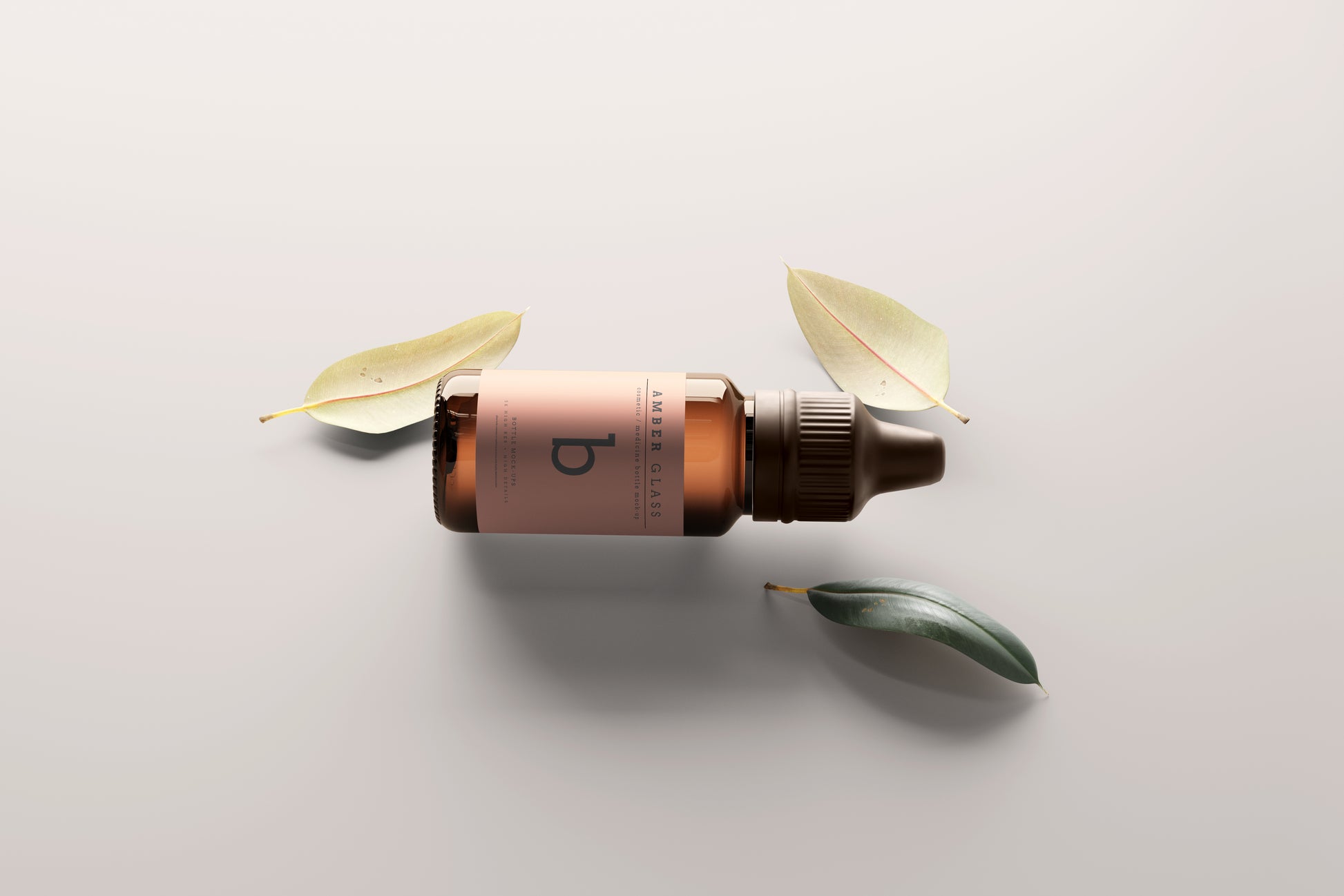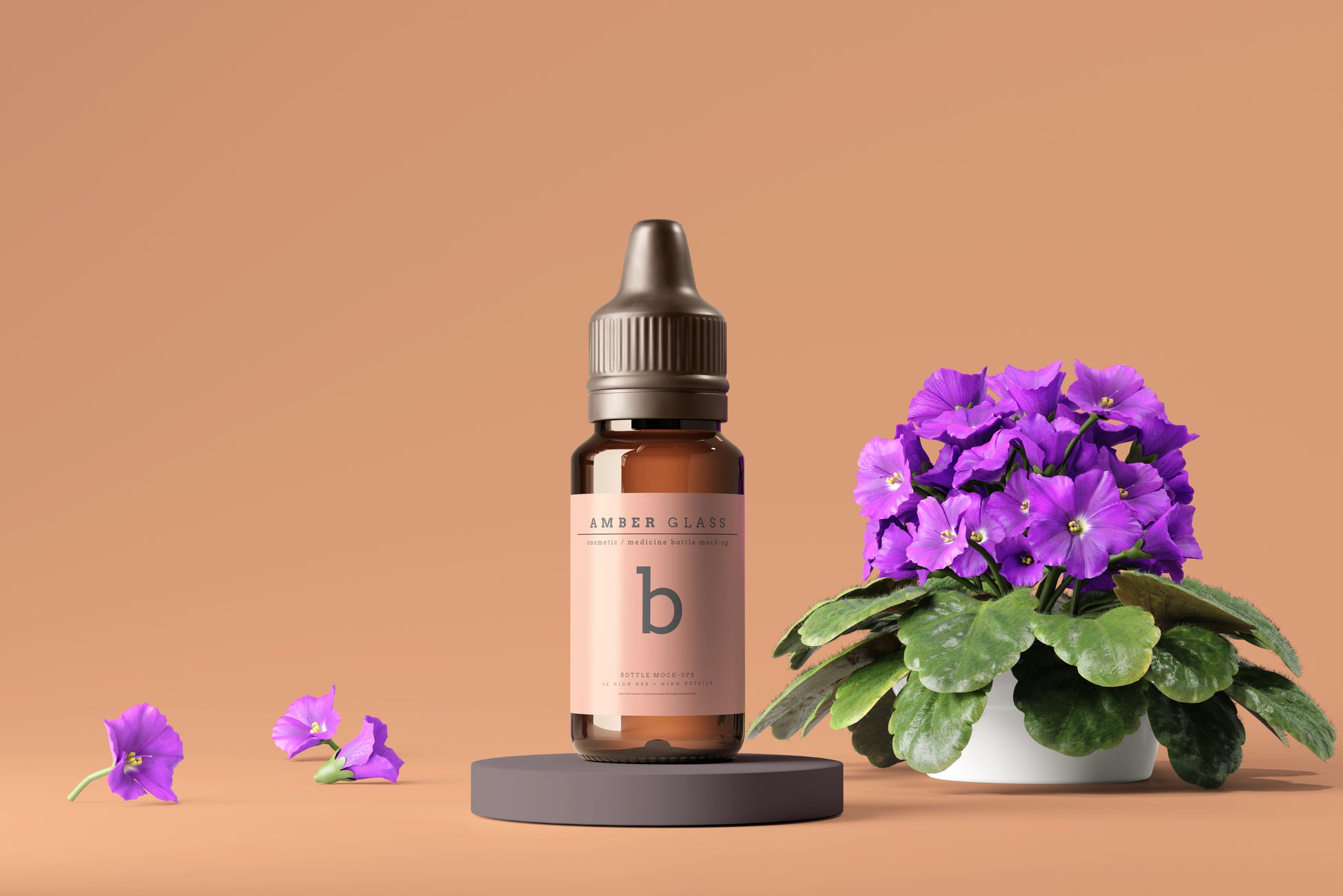 Amber Color Glass Cosmetic or Medicine Bottle Packaging Mockups.