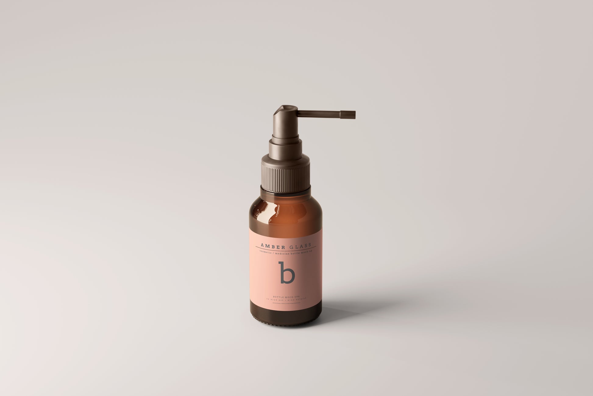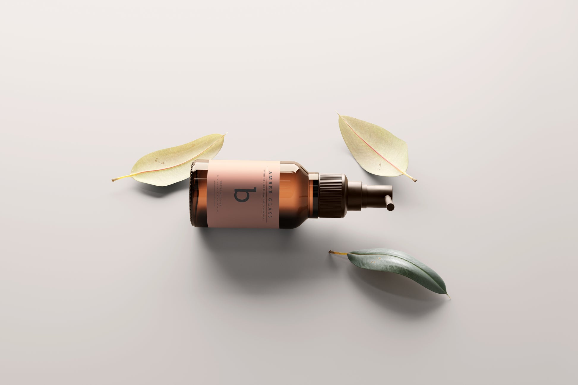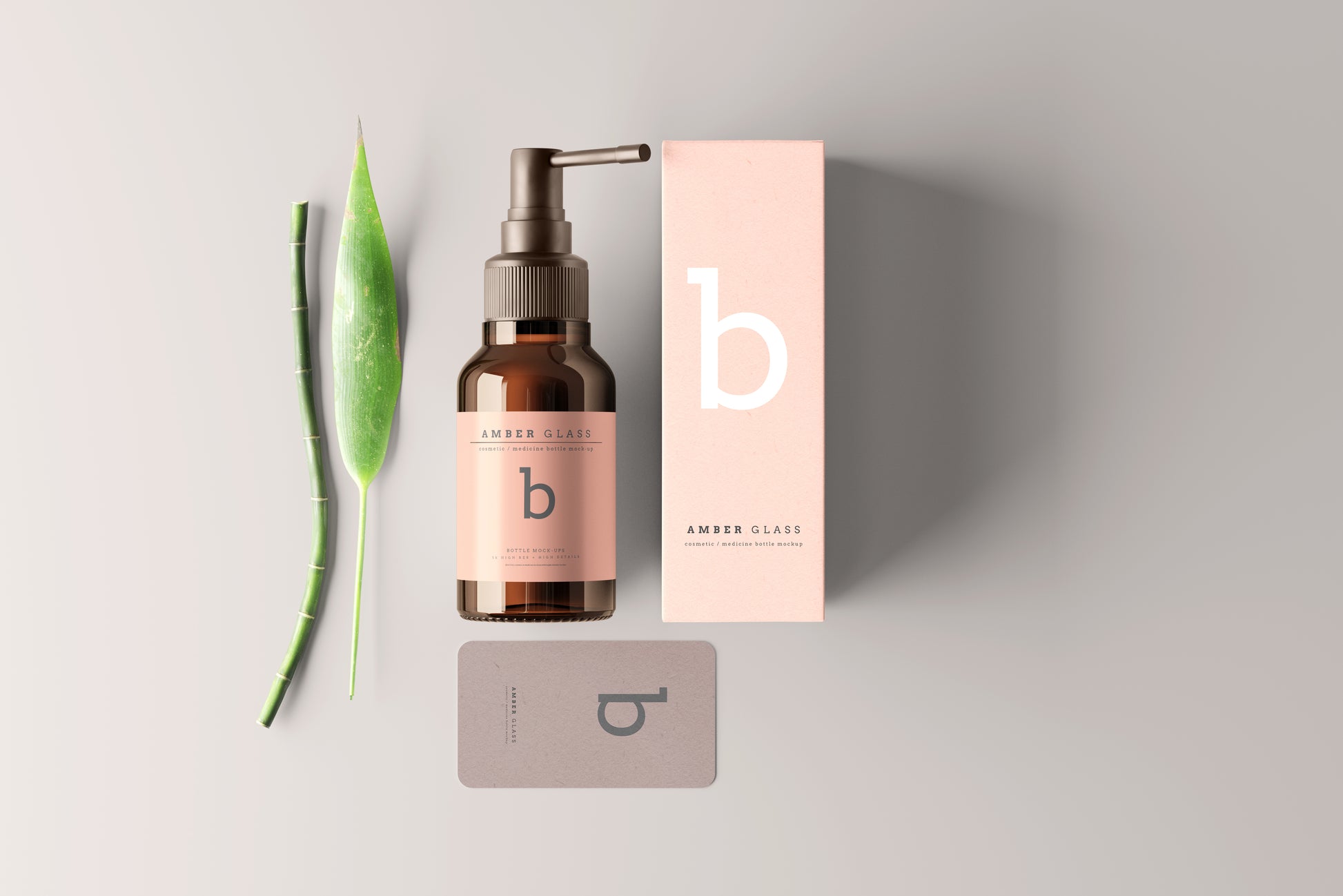 Amber Color Glass Cosmetic or Medicine Bottle Packaging Mockups.