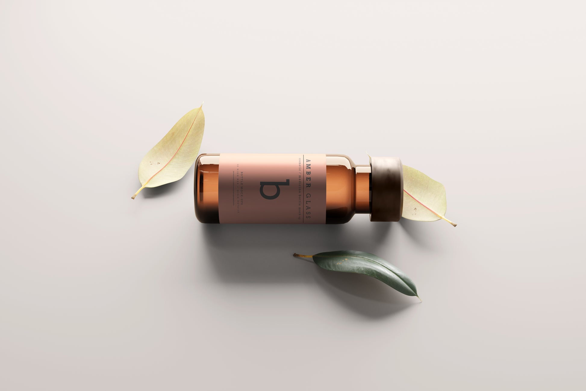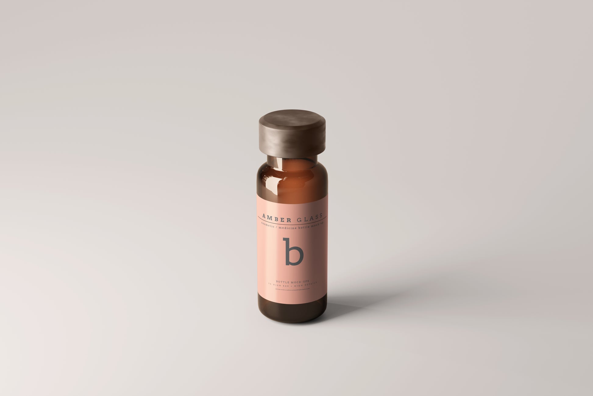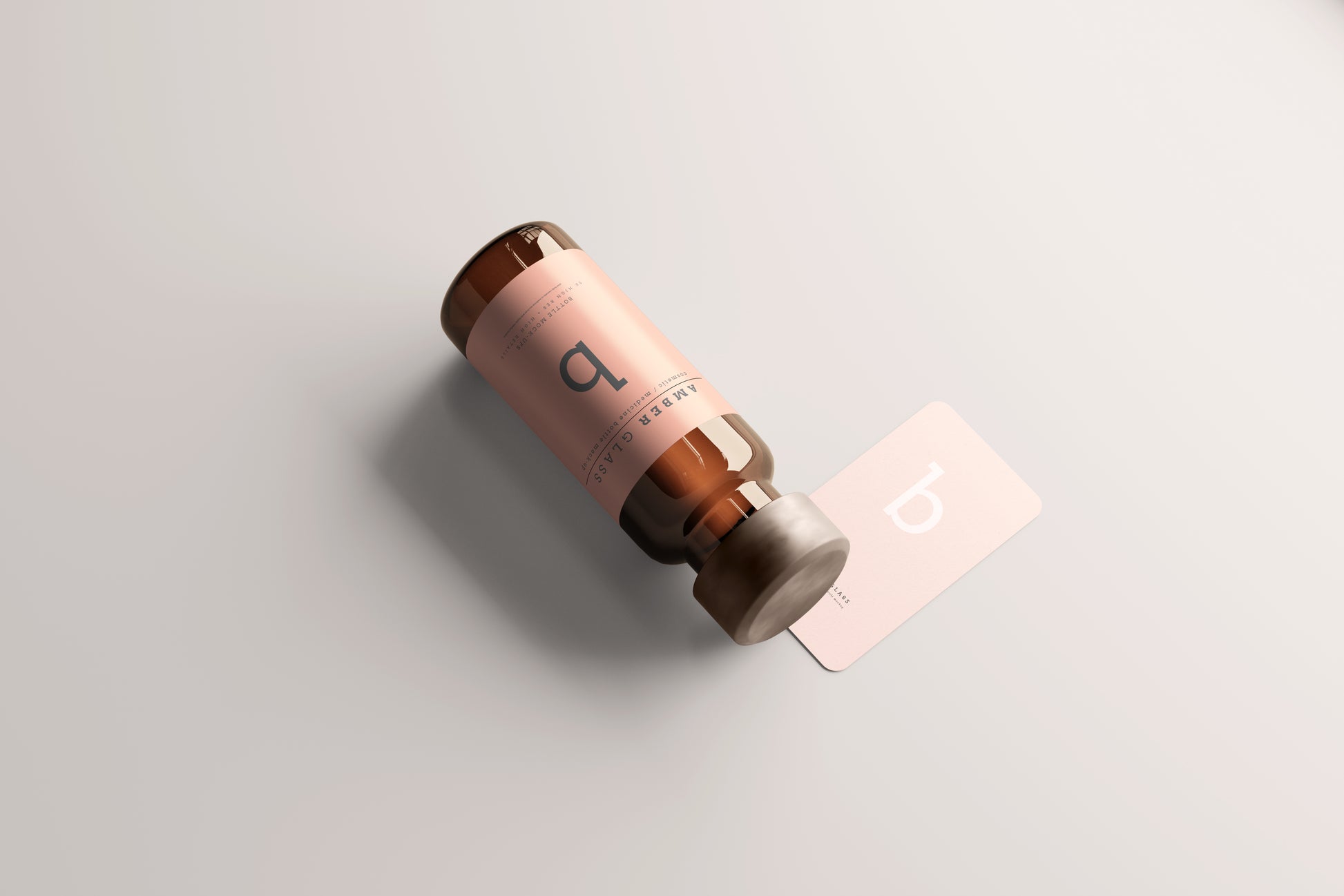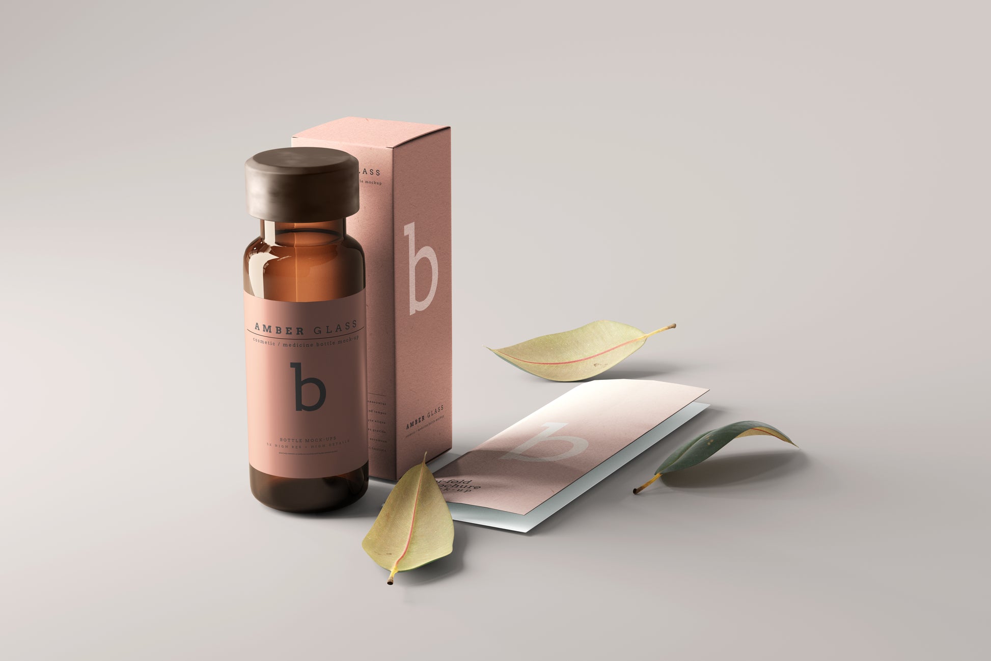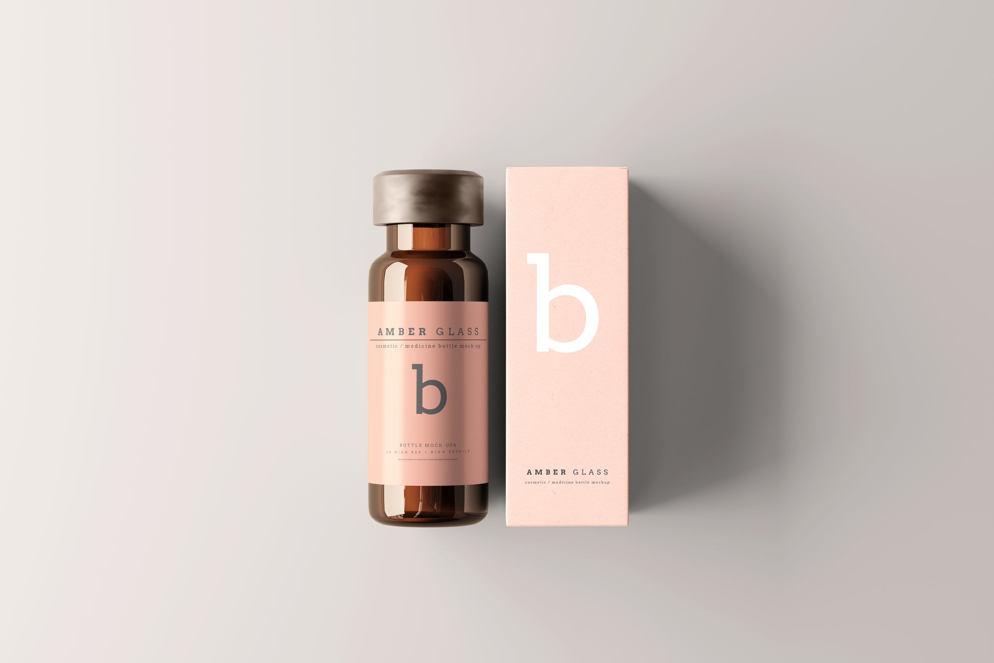 Amber Color Glass Cosmetic or Medicine Bottle Packaging Mockups.