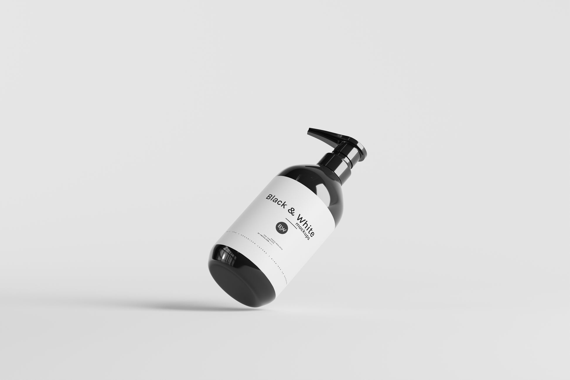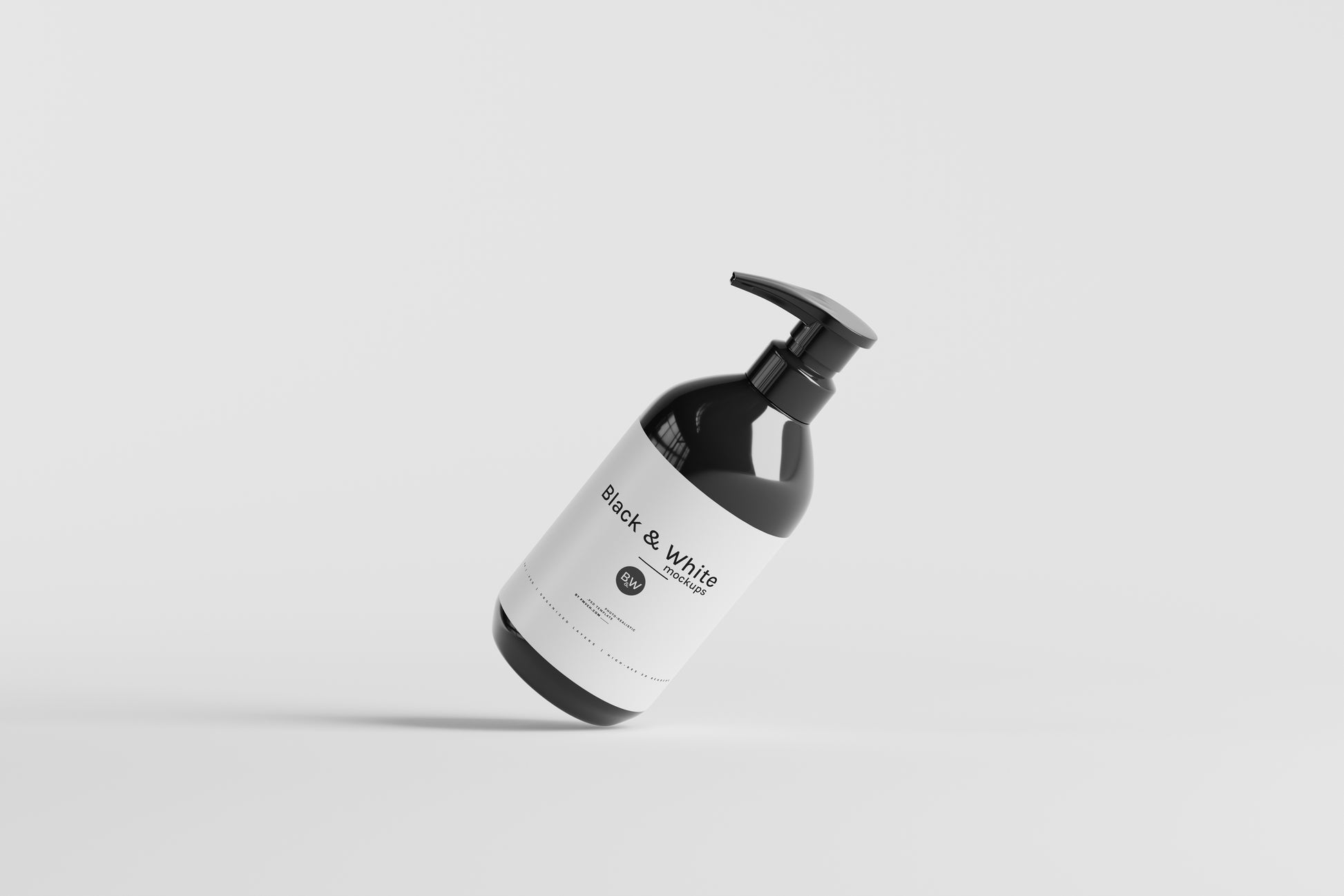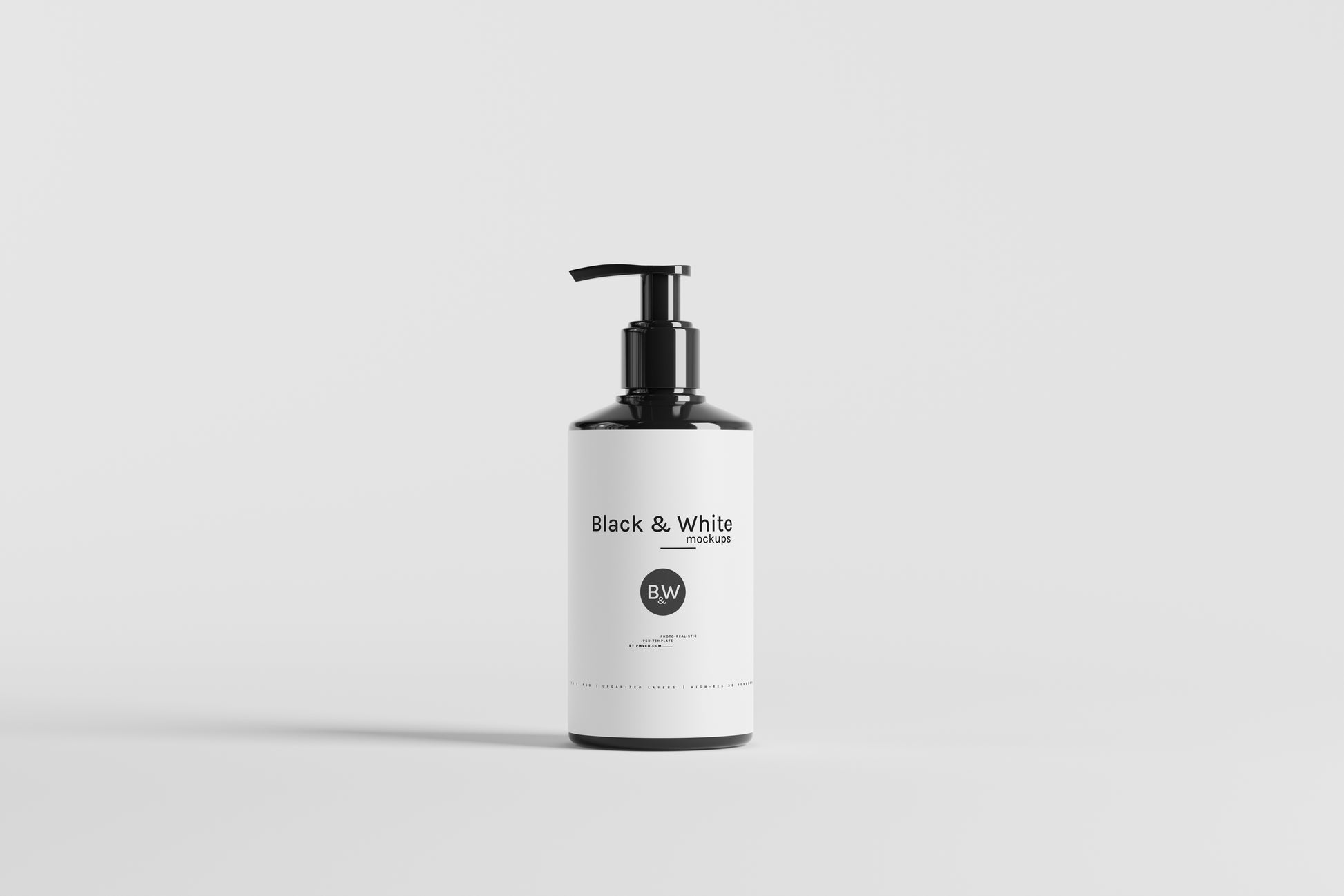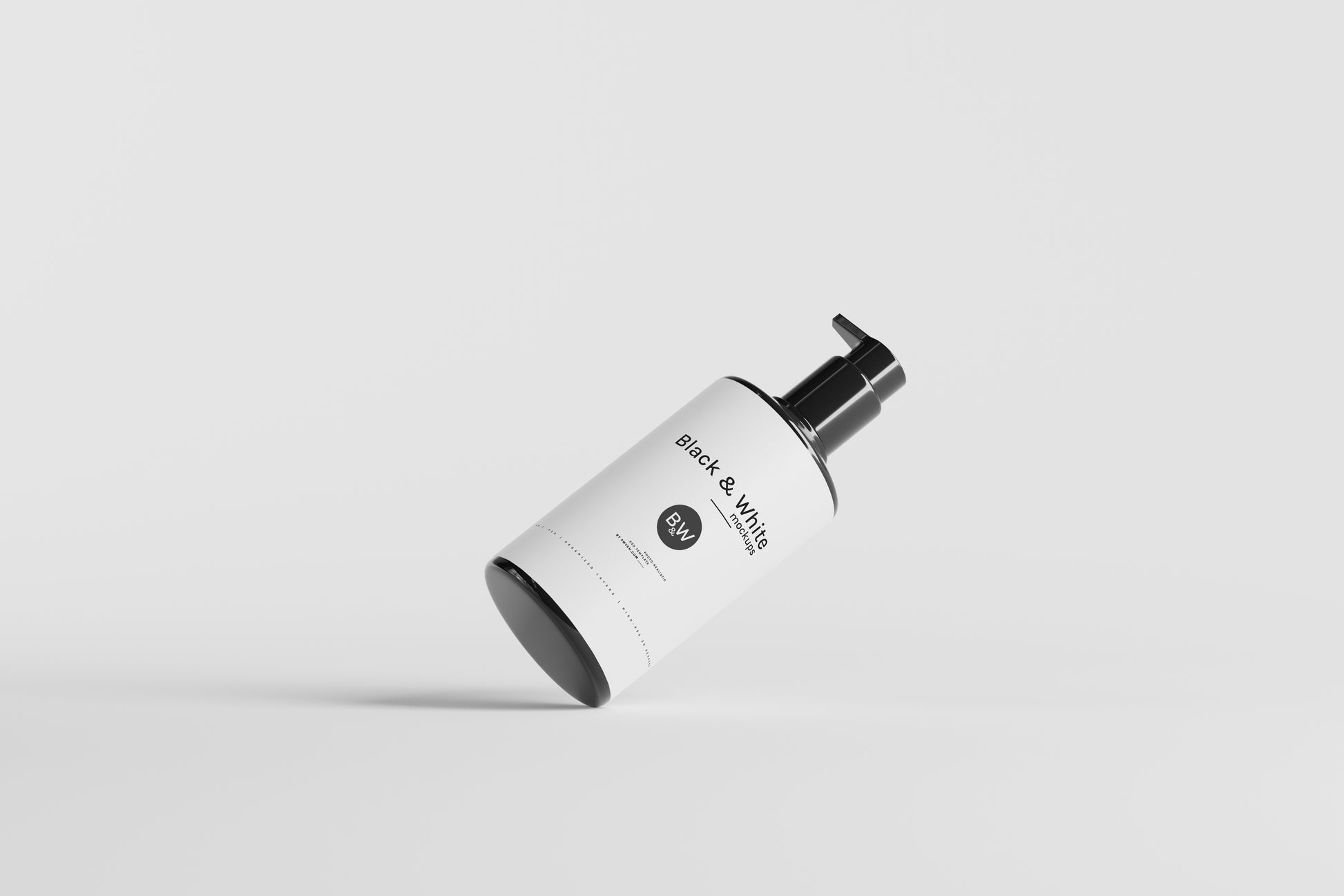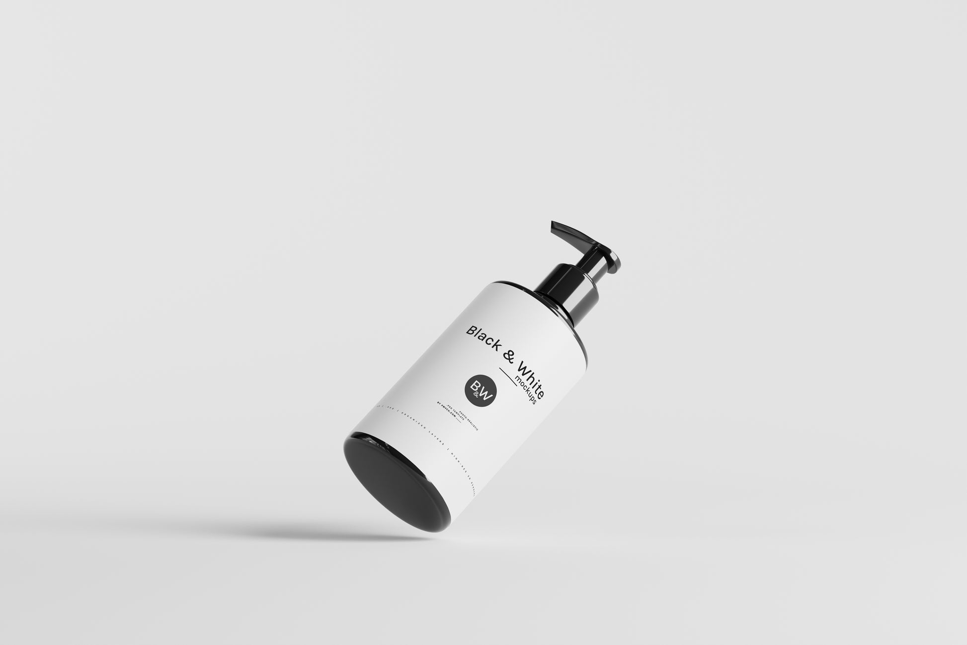 This mockup set focuses on pump bottles and is specifically tailored for black and white labels. However, it can also be used with labels of any color, and they will still look exceptionally good with these mockups.