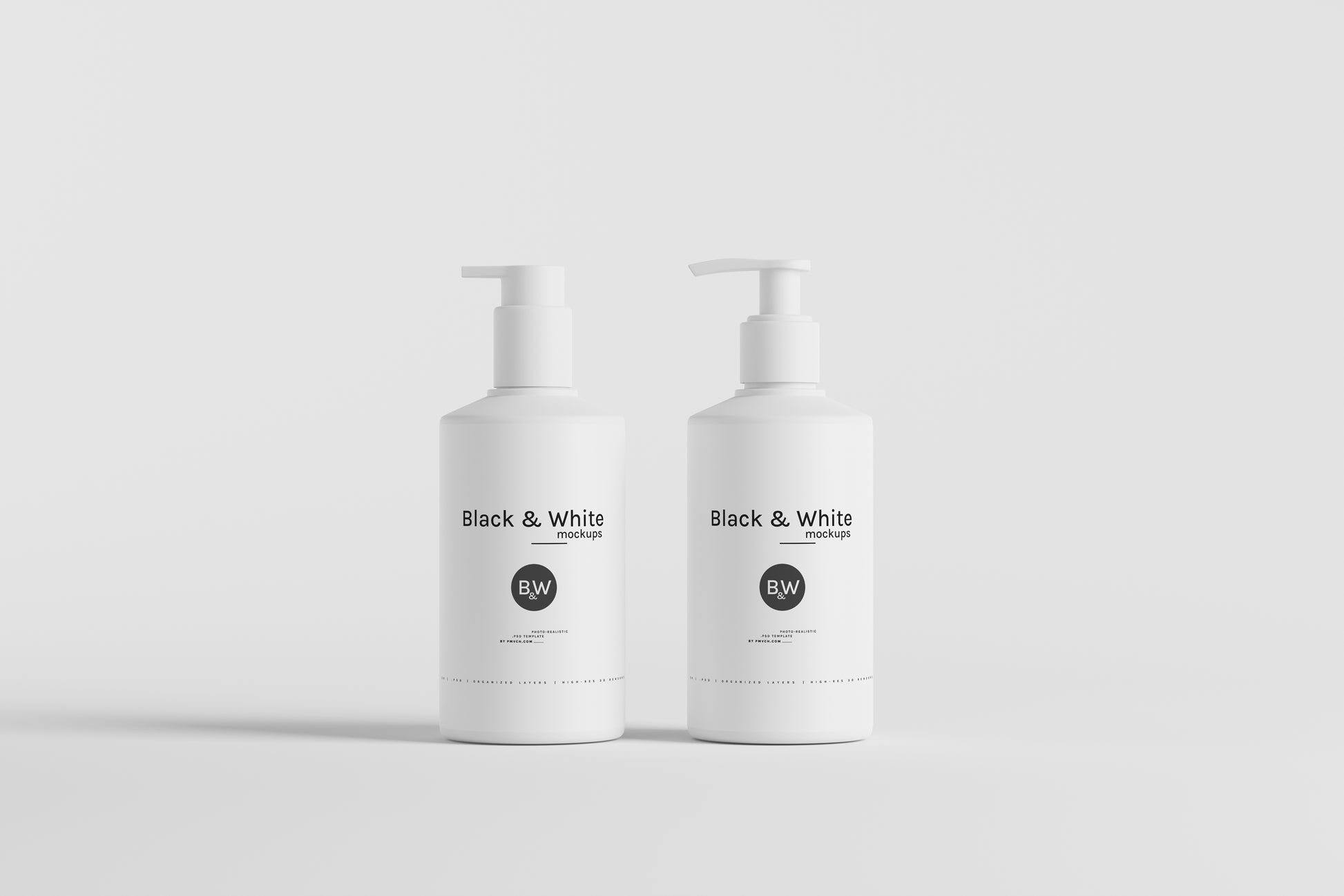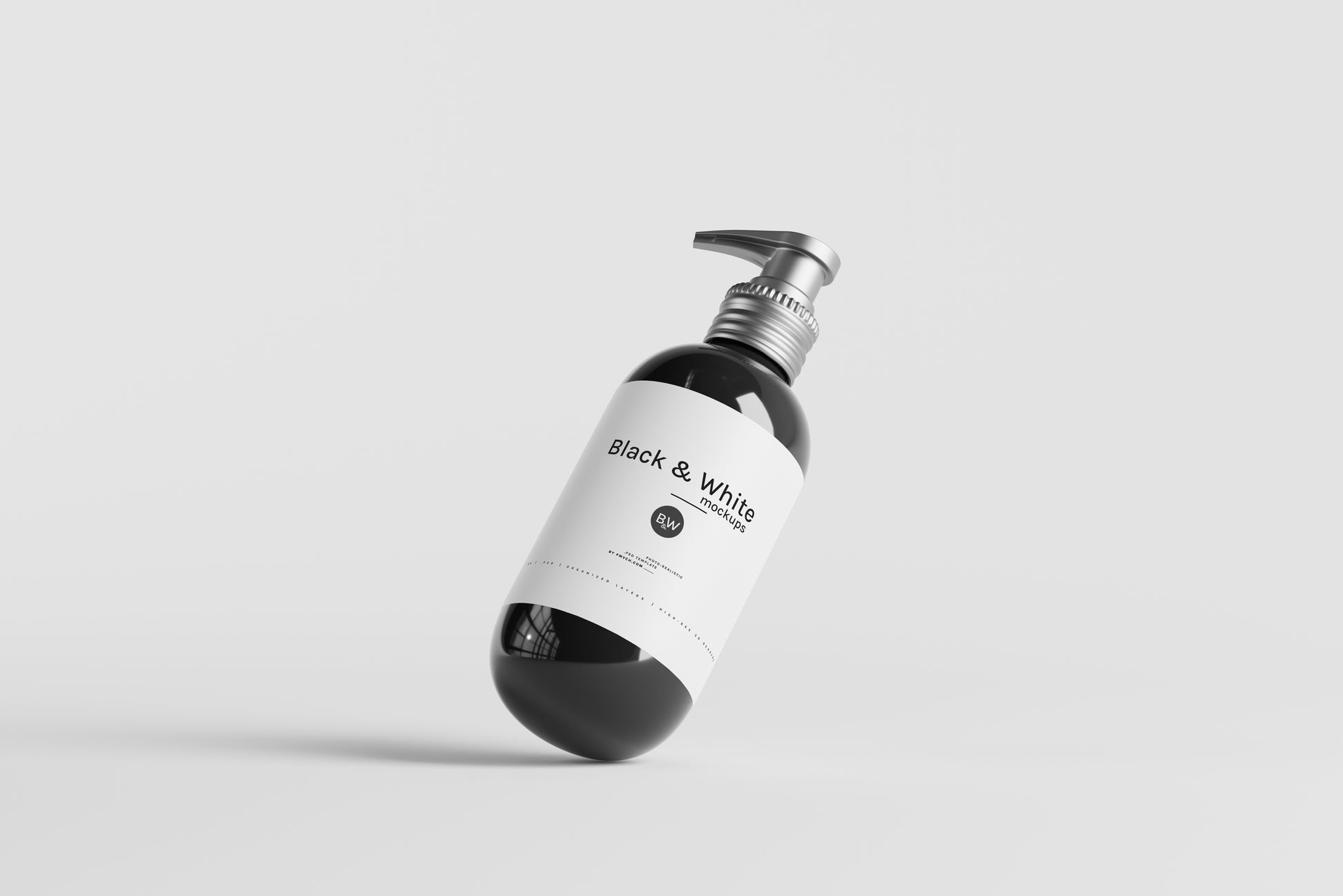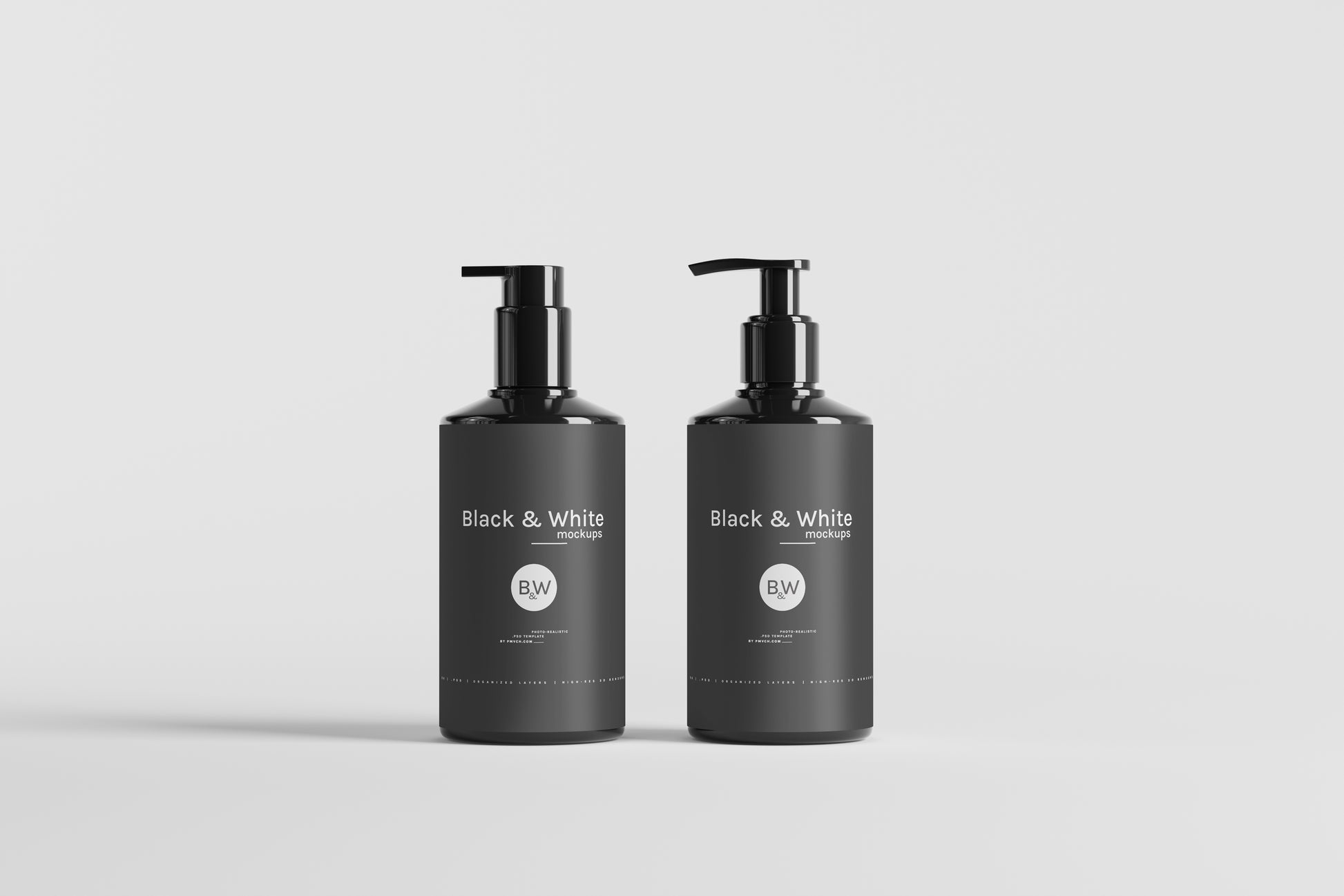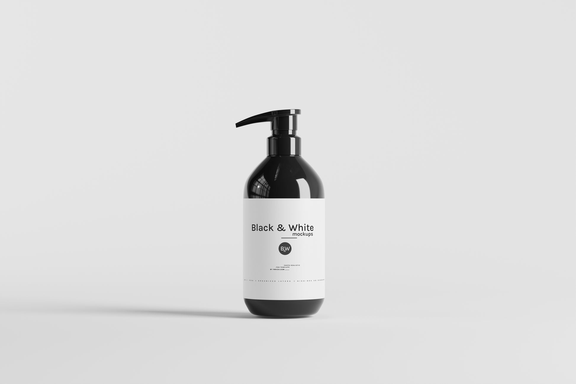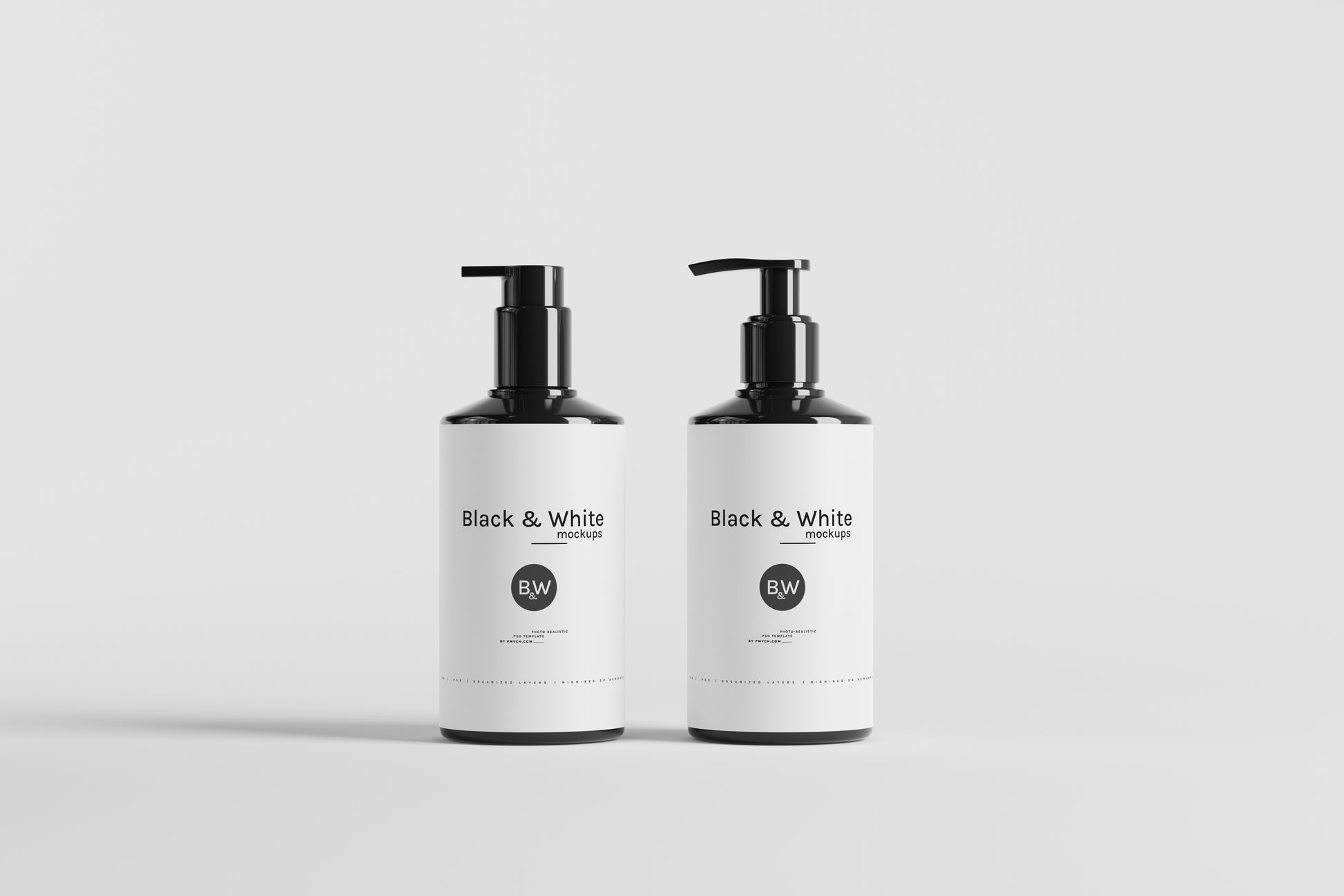This mockup set focuses on pump bottles and is specifically tailored for black and white labels. However, it can also be used with labels of any color, and they will still look exceptionally good with these mockups.