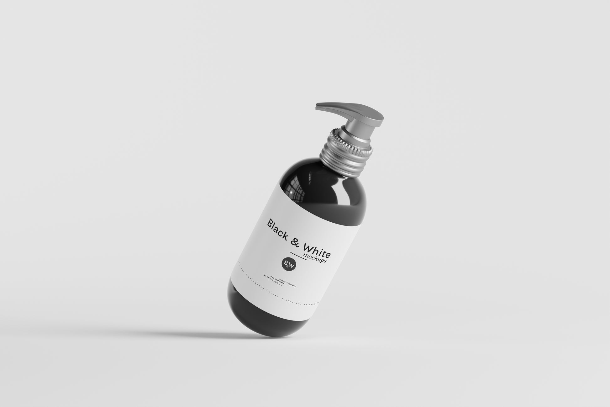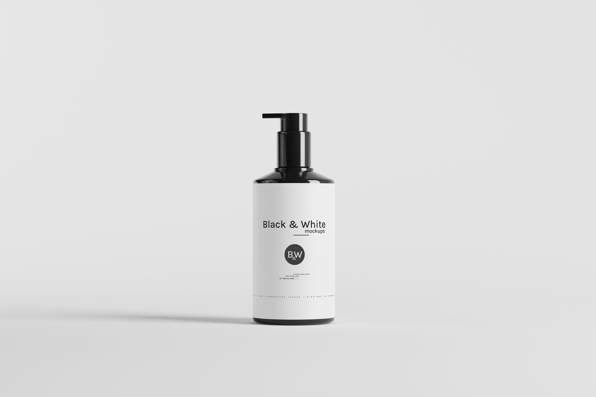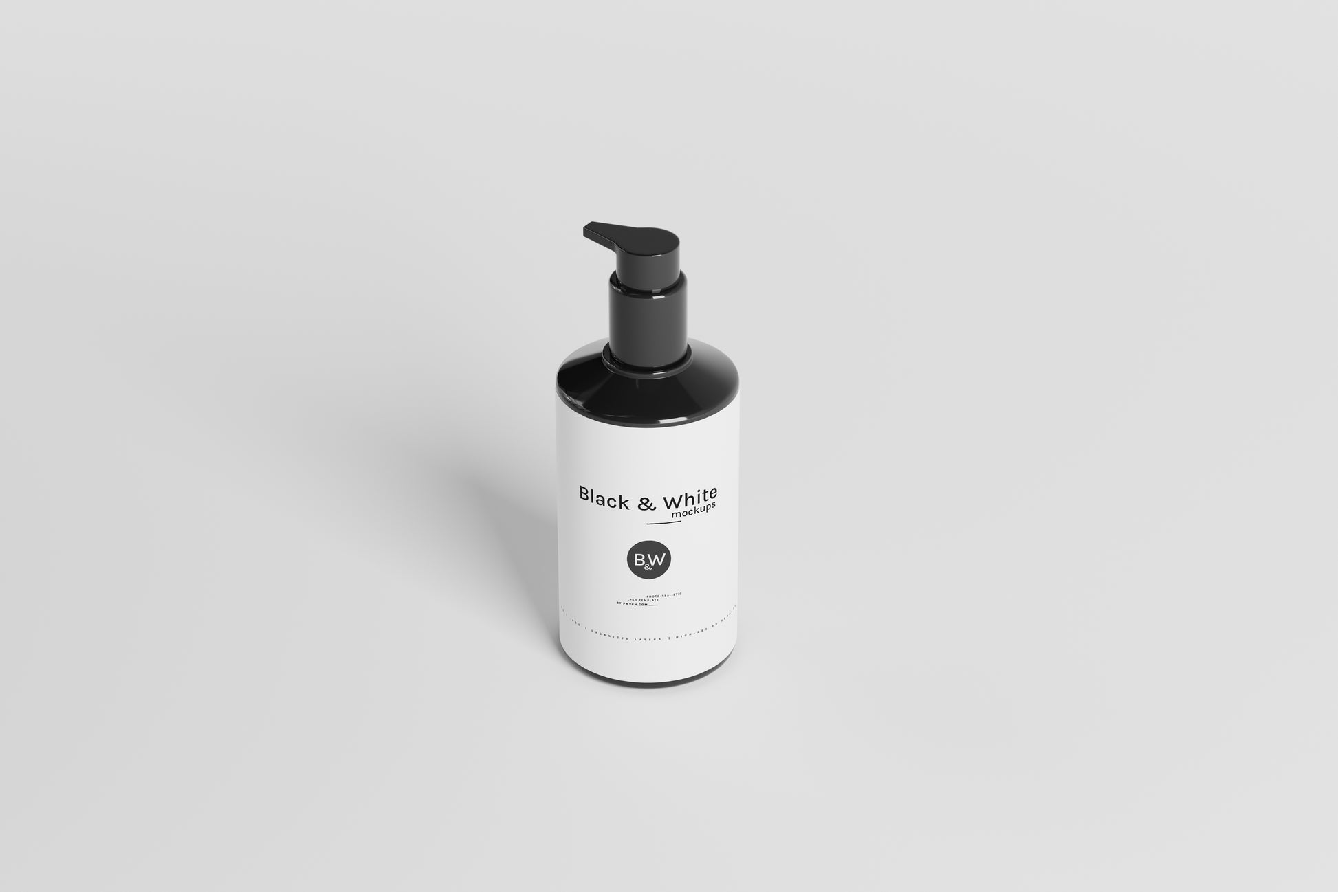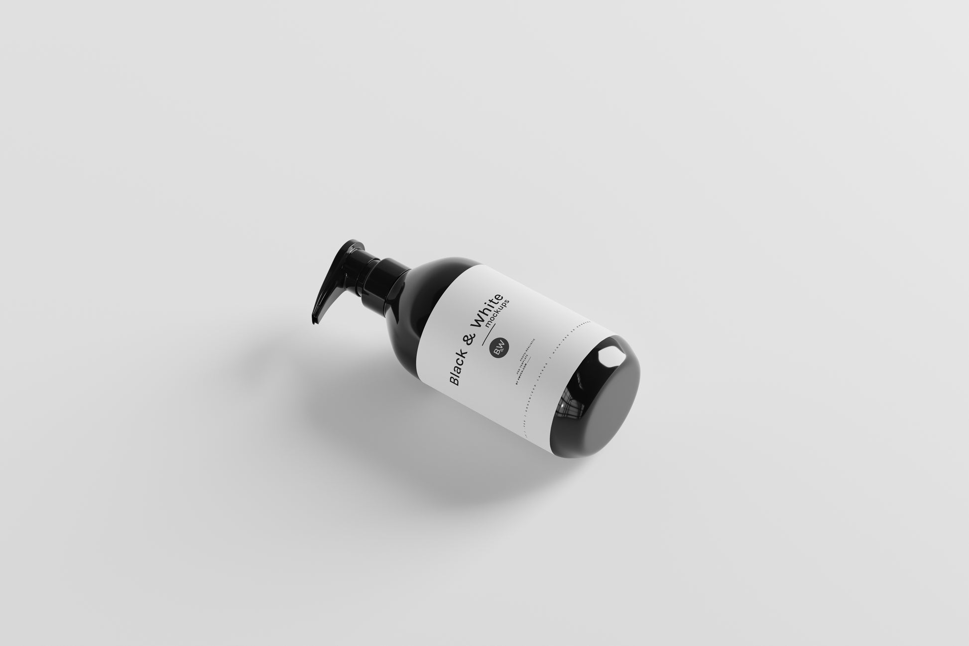 This mockup set focuses on pump bottles and is specifically tailored for black and white labels. However, it can also be used with labels of any color, and they will still look exceptionally good with these mockups.