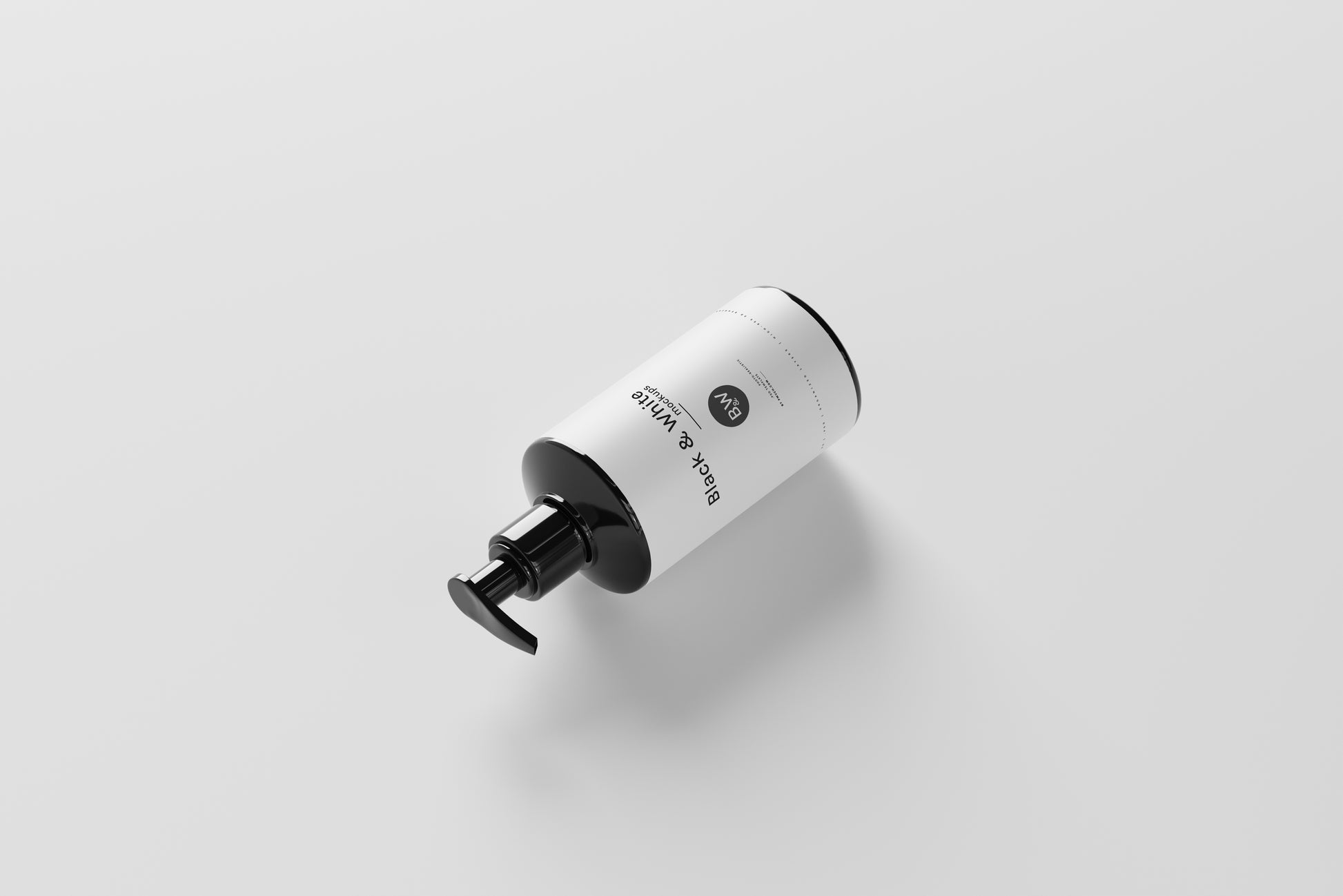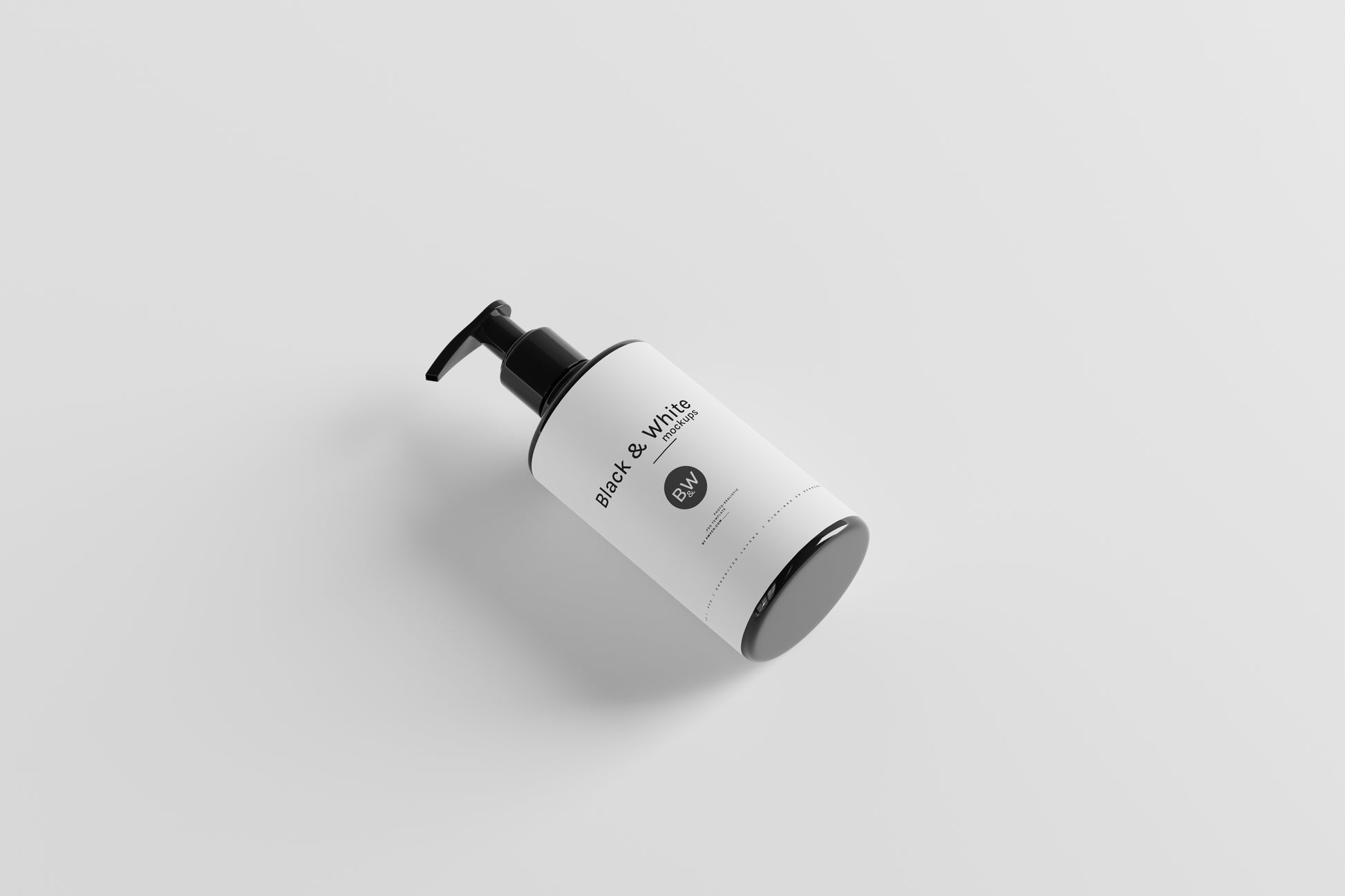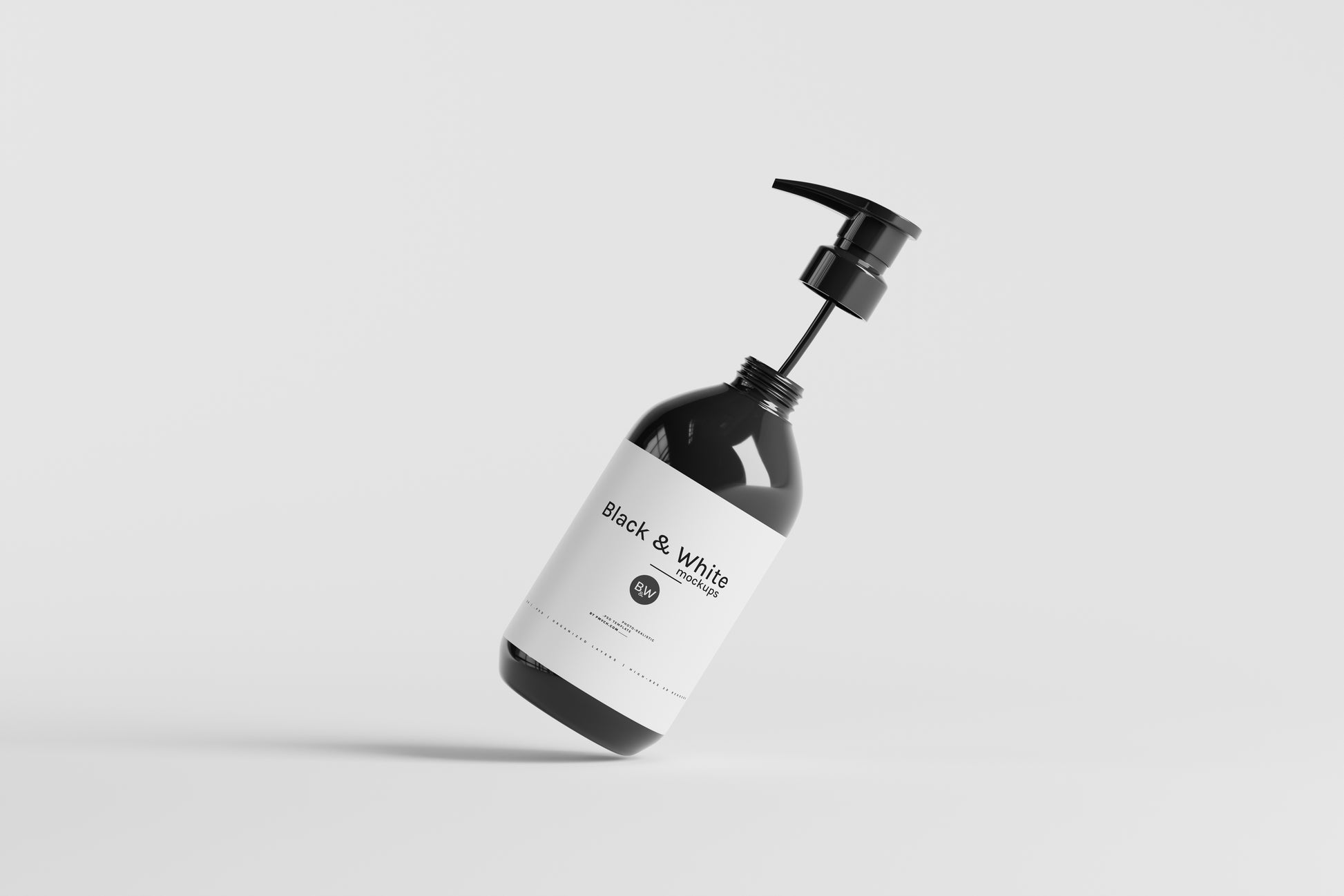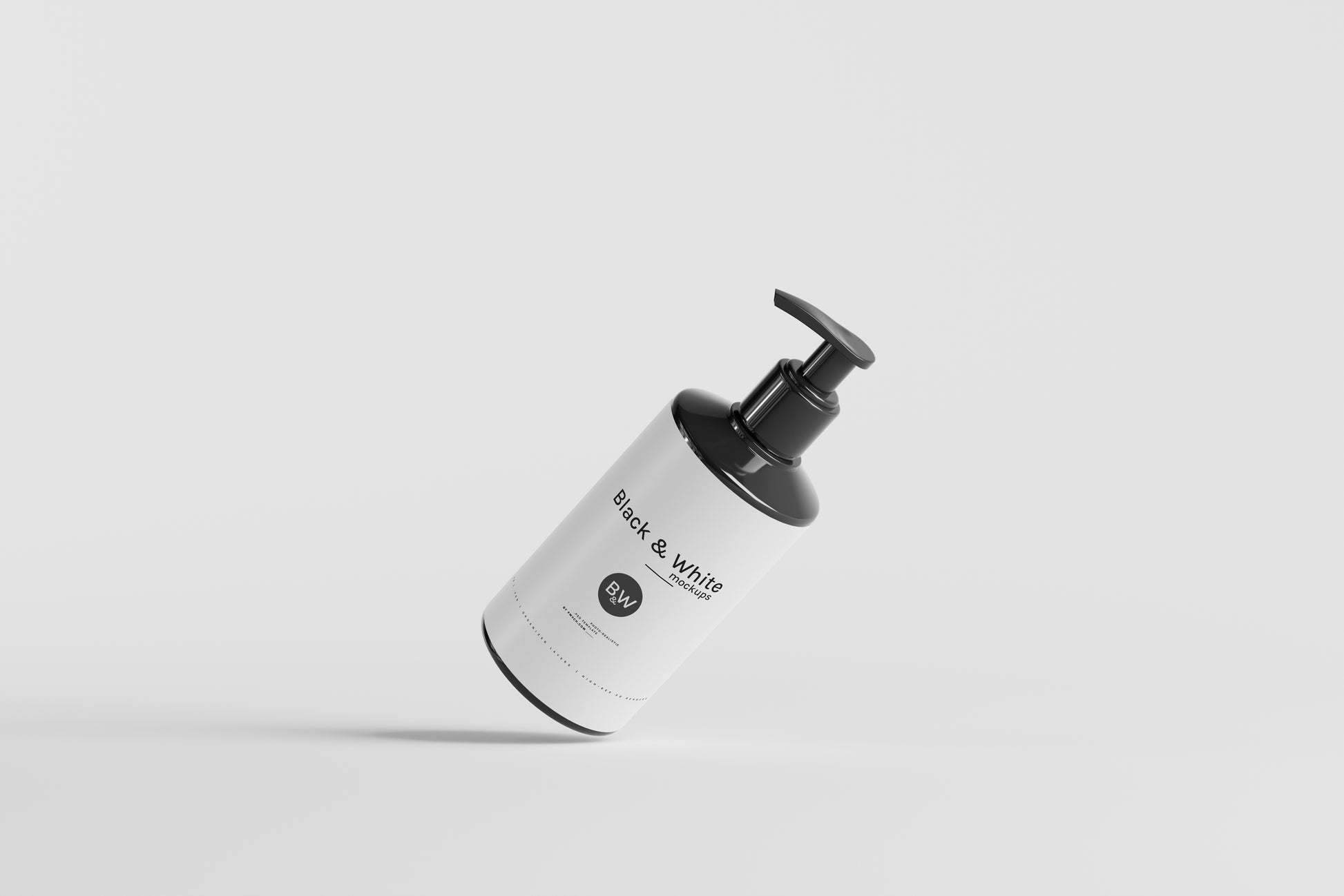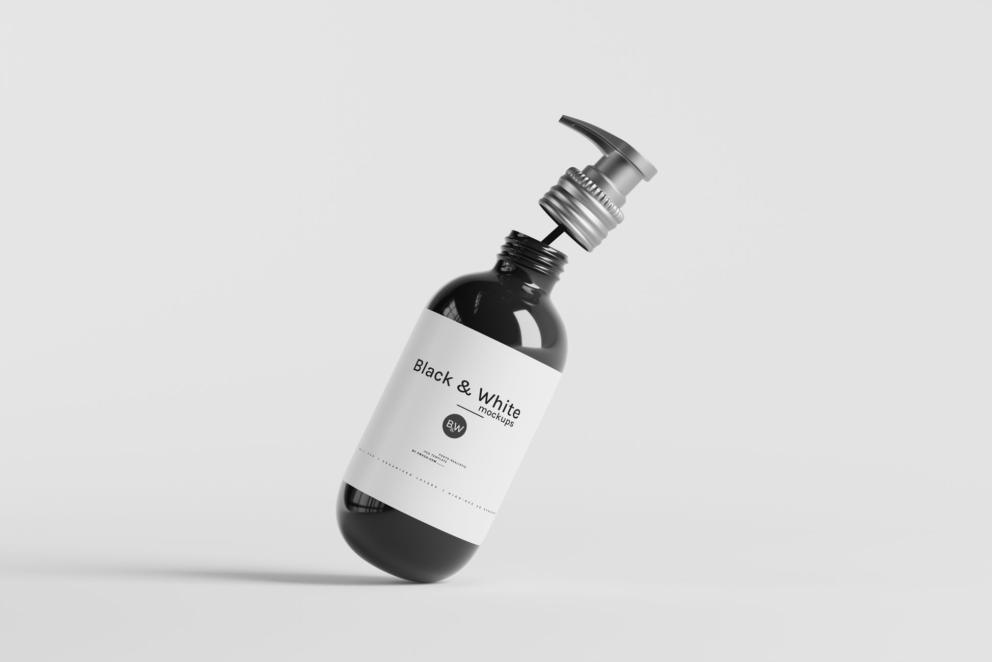 This mockup set focuses on pump bottles and is specifically tailored for black and white labels. However, it can also be used with labels of any color, and they will still look exceptionally good with these mockups.