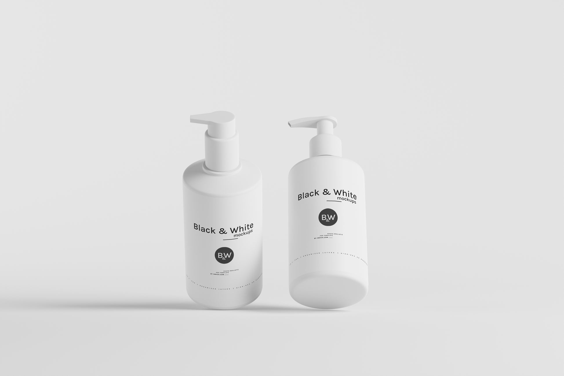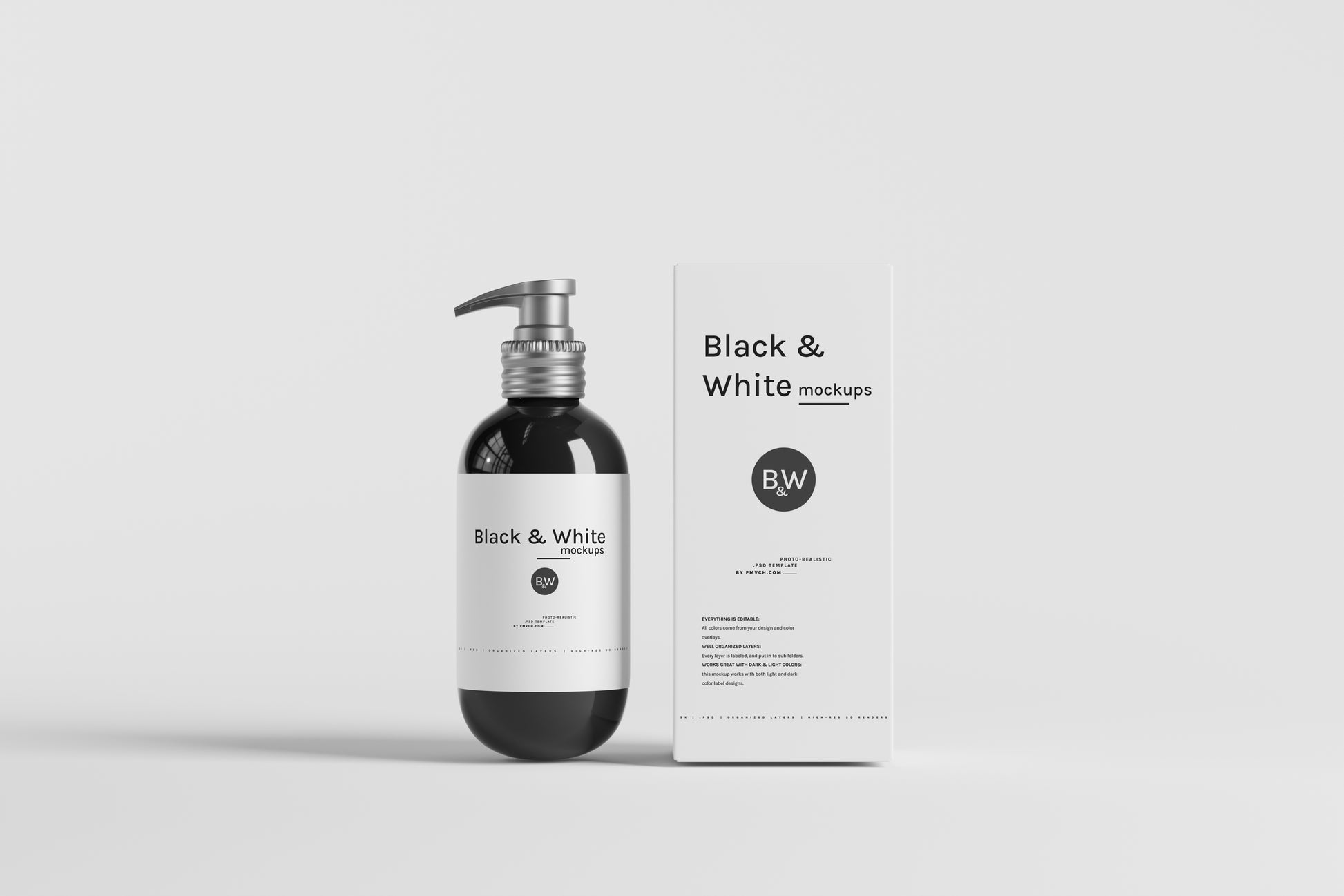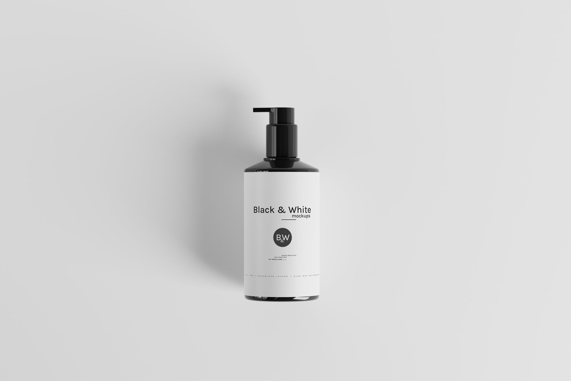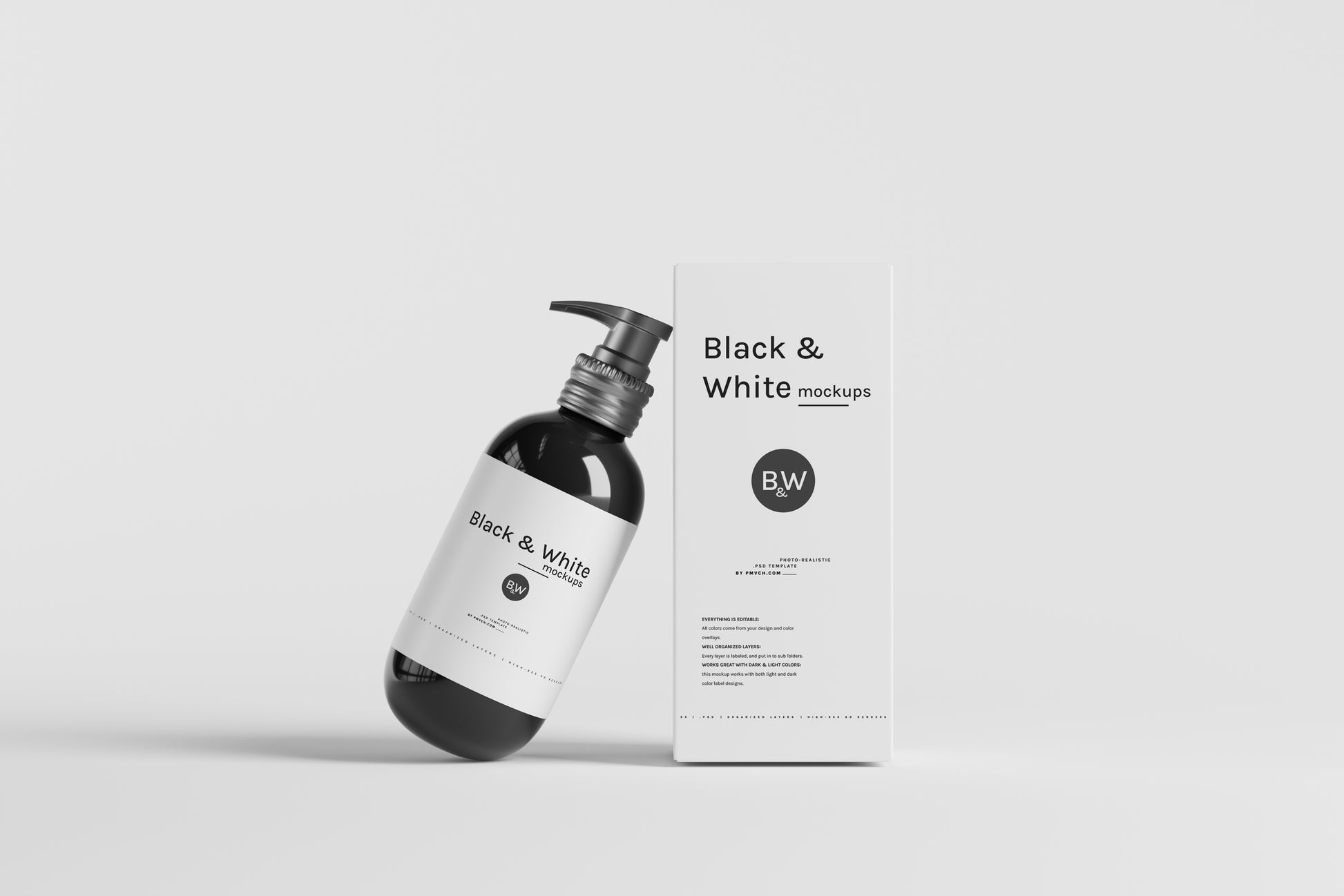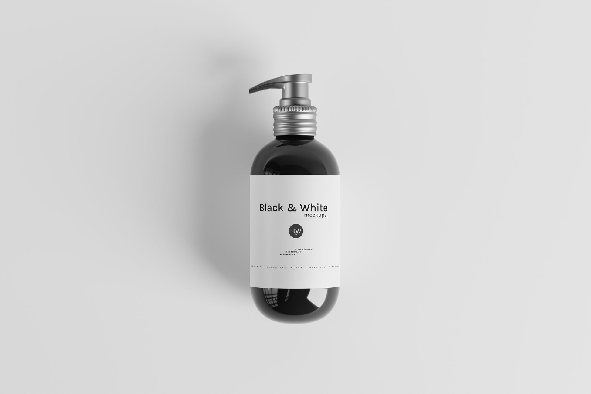 This mockup set focuses on pump bottles and is specifically tailored for black and white labels. However, it can also be used with labels of any color, and they will still look exceptionally good with these mockups.