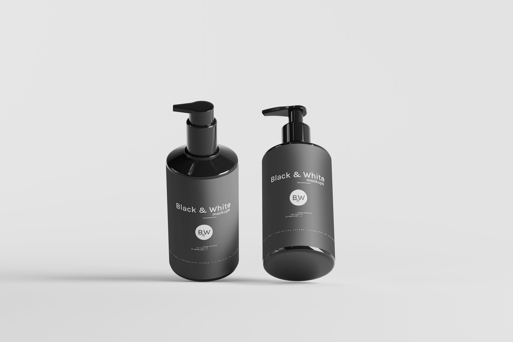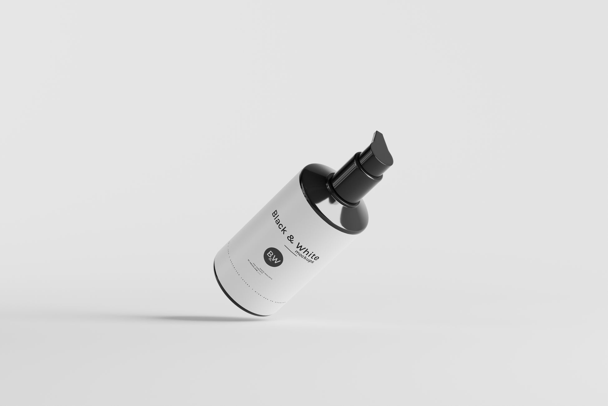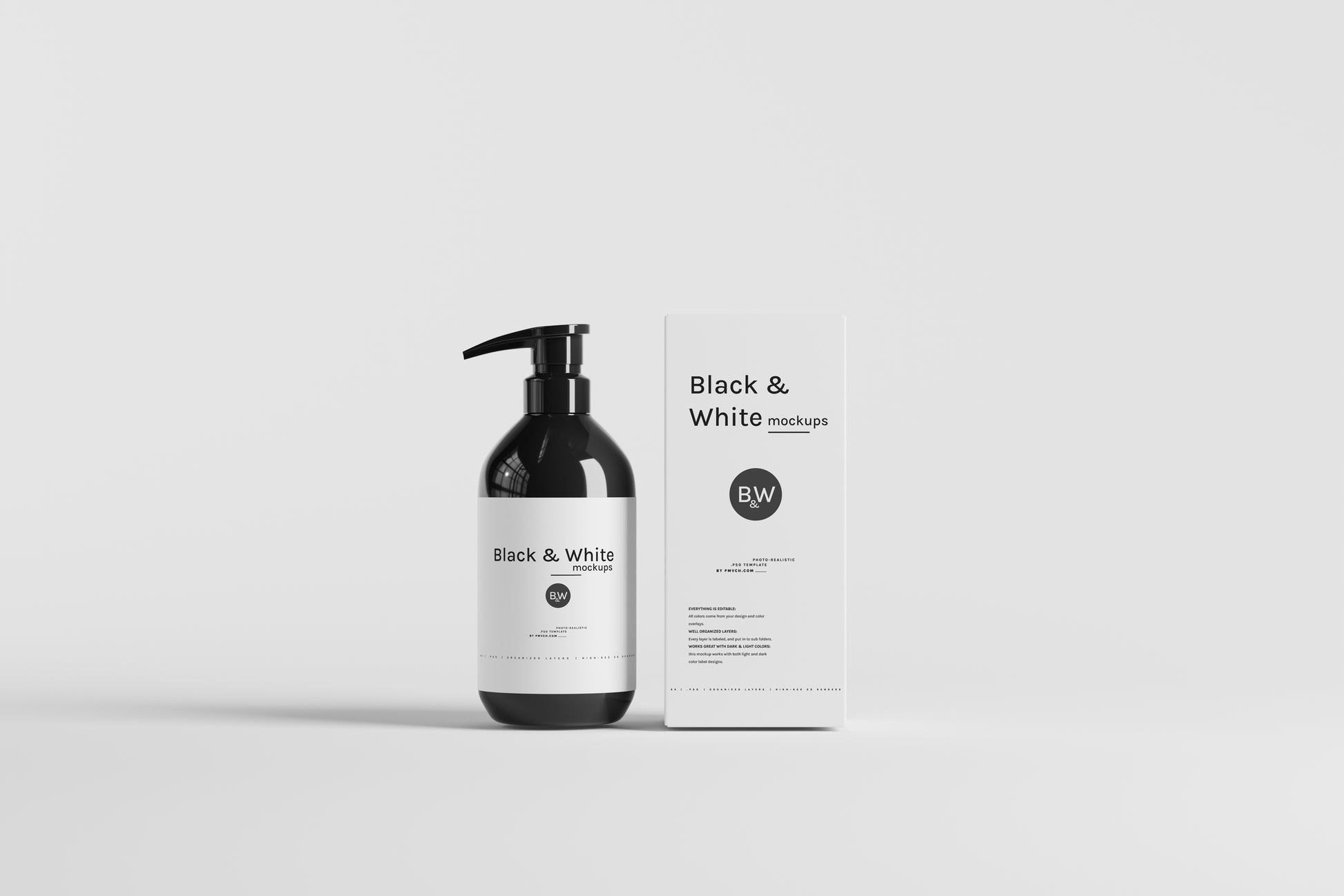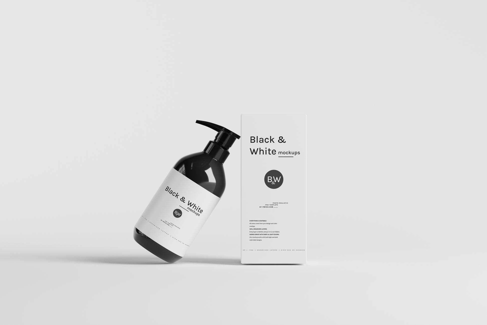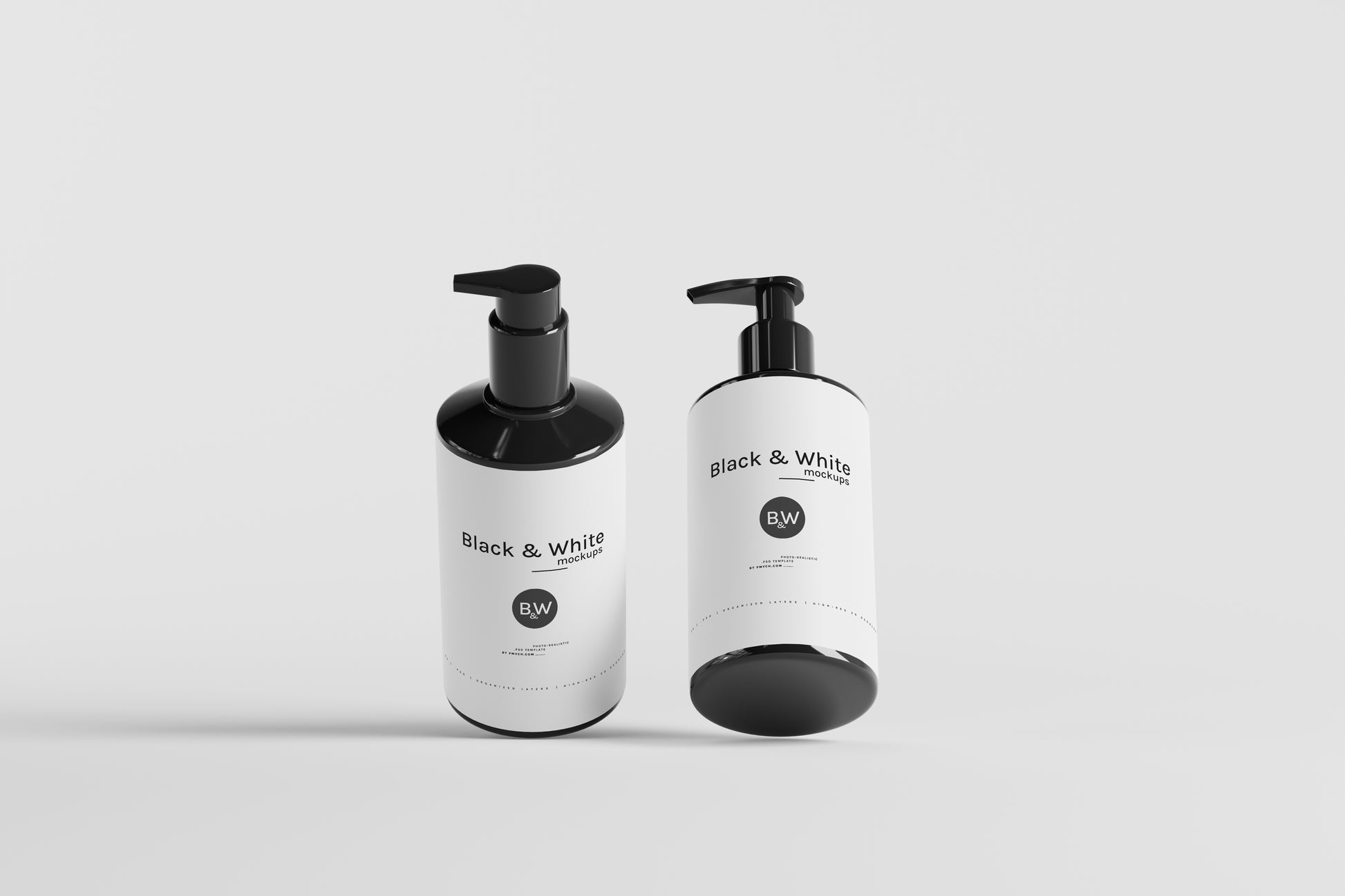 This mockup set focuses on pump bottles and is specifically tailored for black and white labels. However, it can also be used with labels of any color, and they will still look exceptionally good with these mockups.
