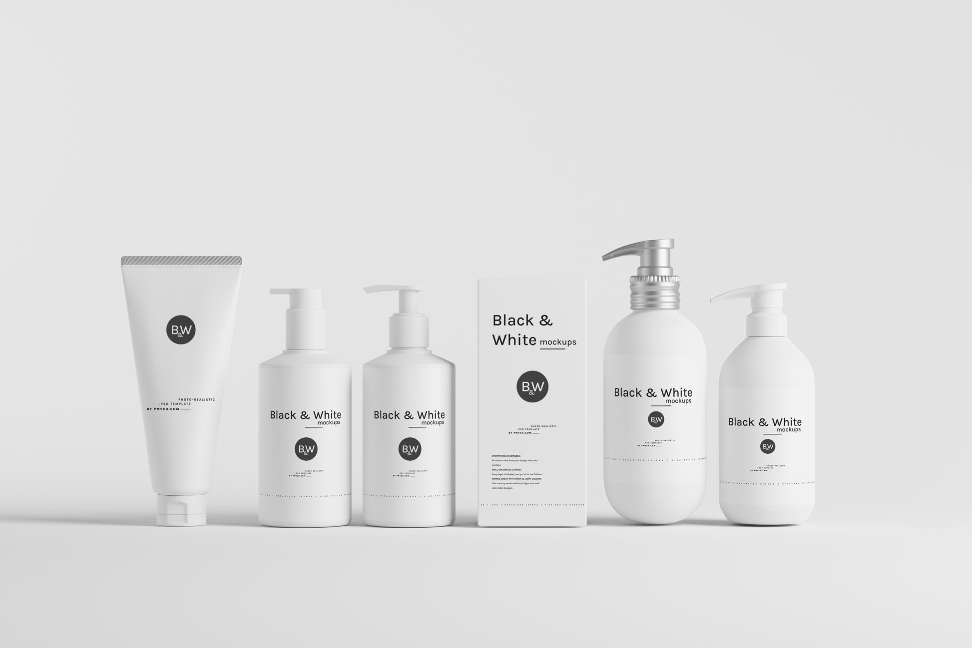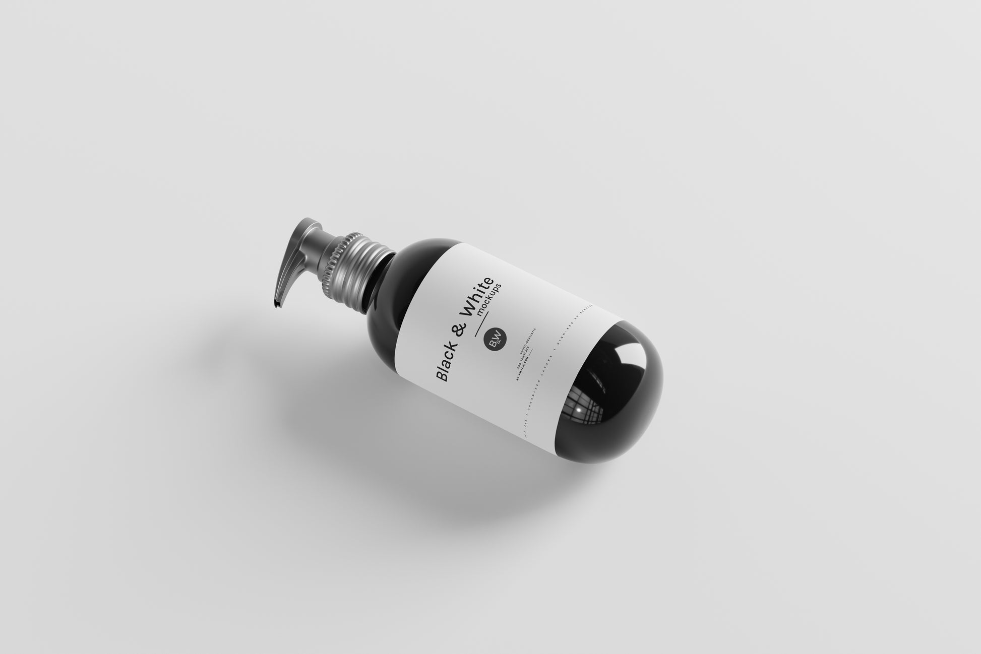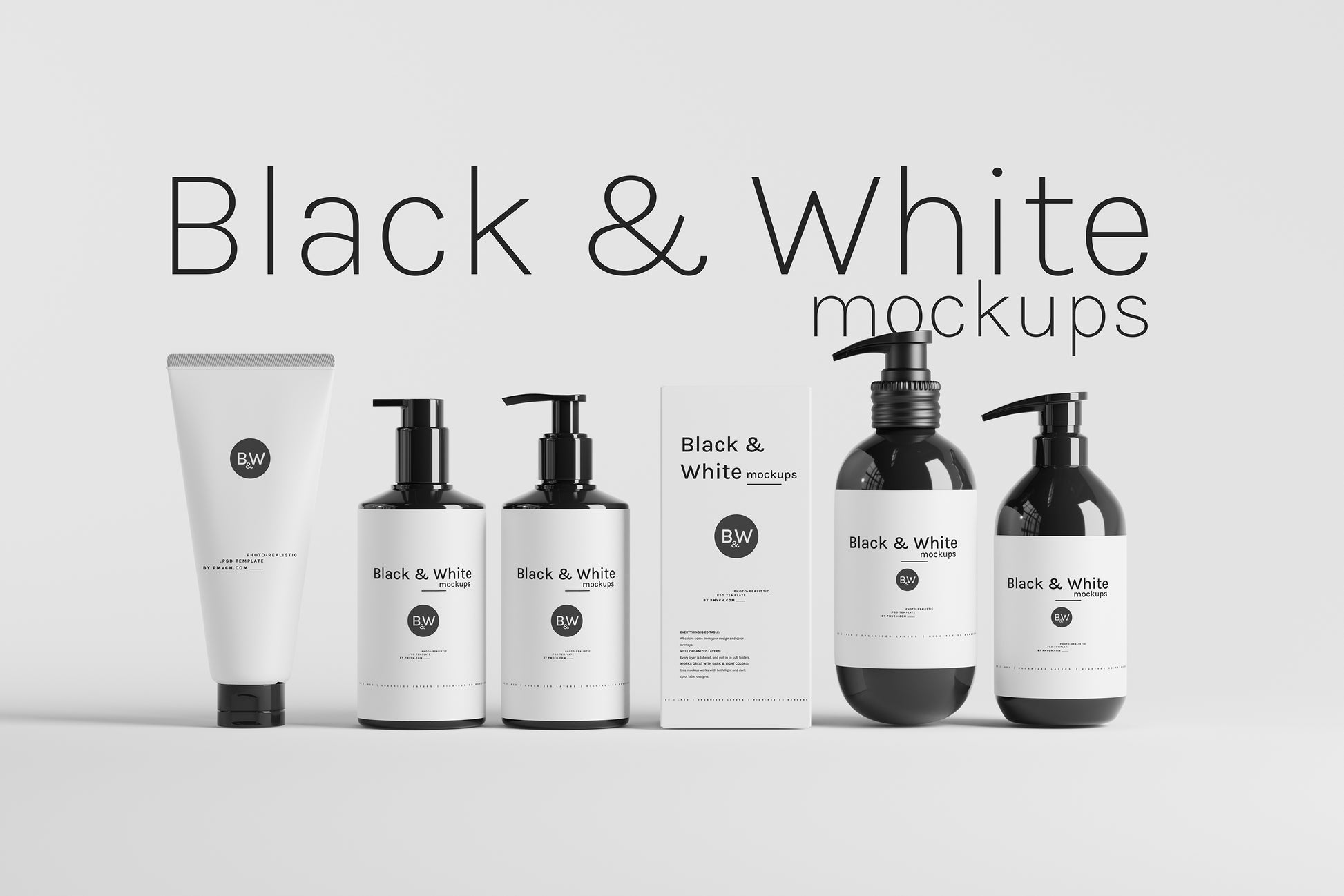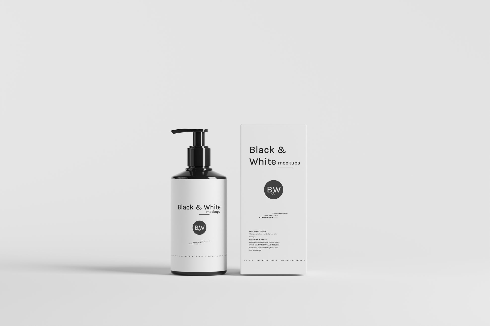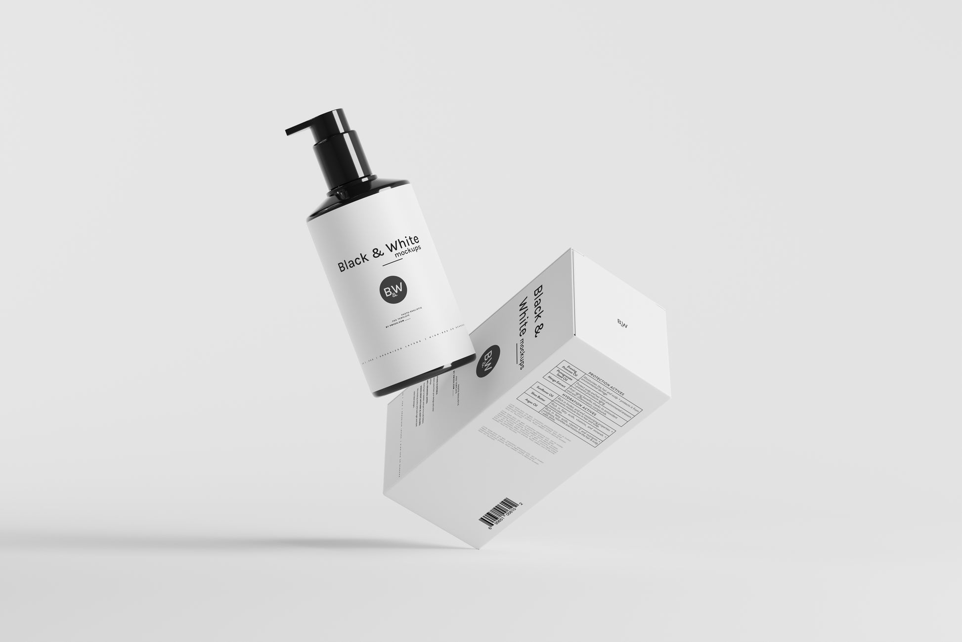 This mockup set focuses on pump bottles and is specifically tailored for black and white labels. However, it can also be used with labels of any color, and they will still look exceptionally good with these mockups.