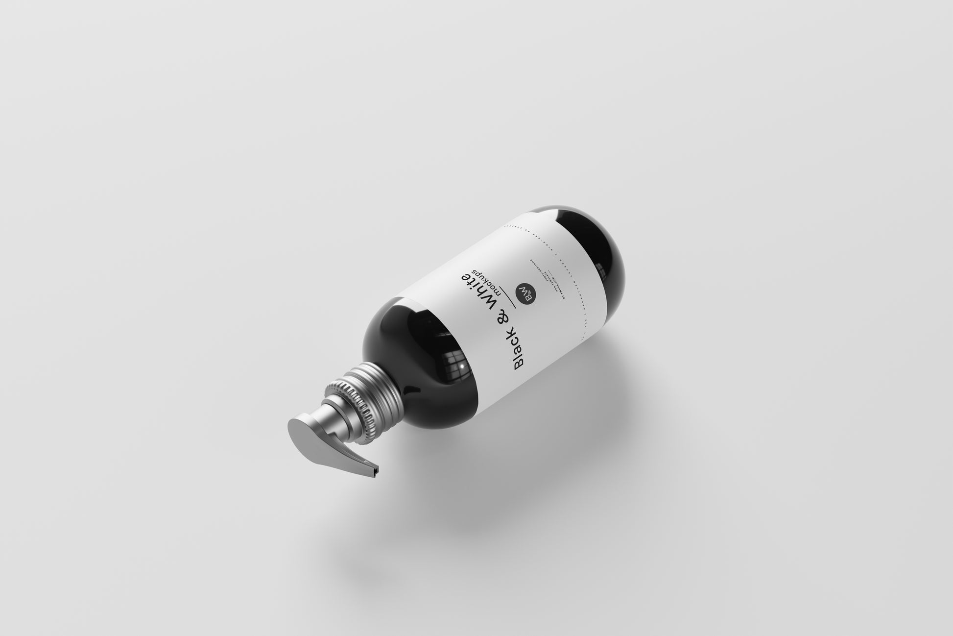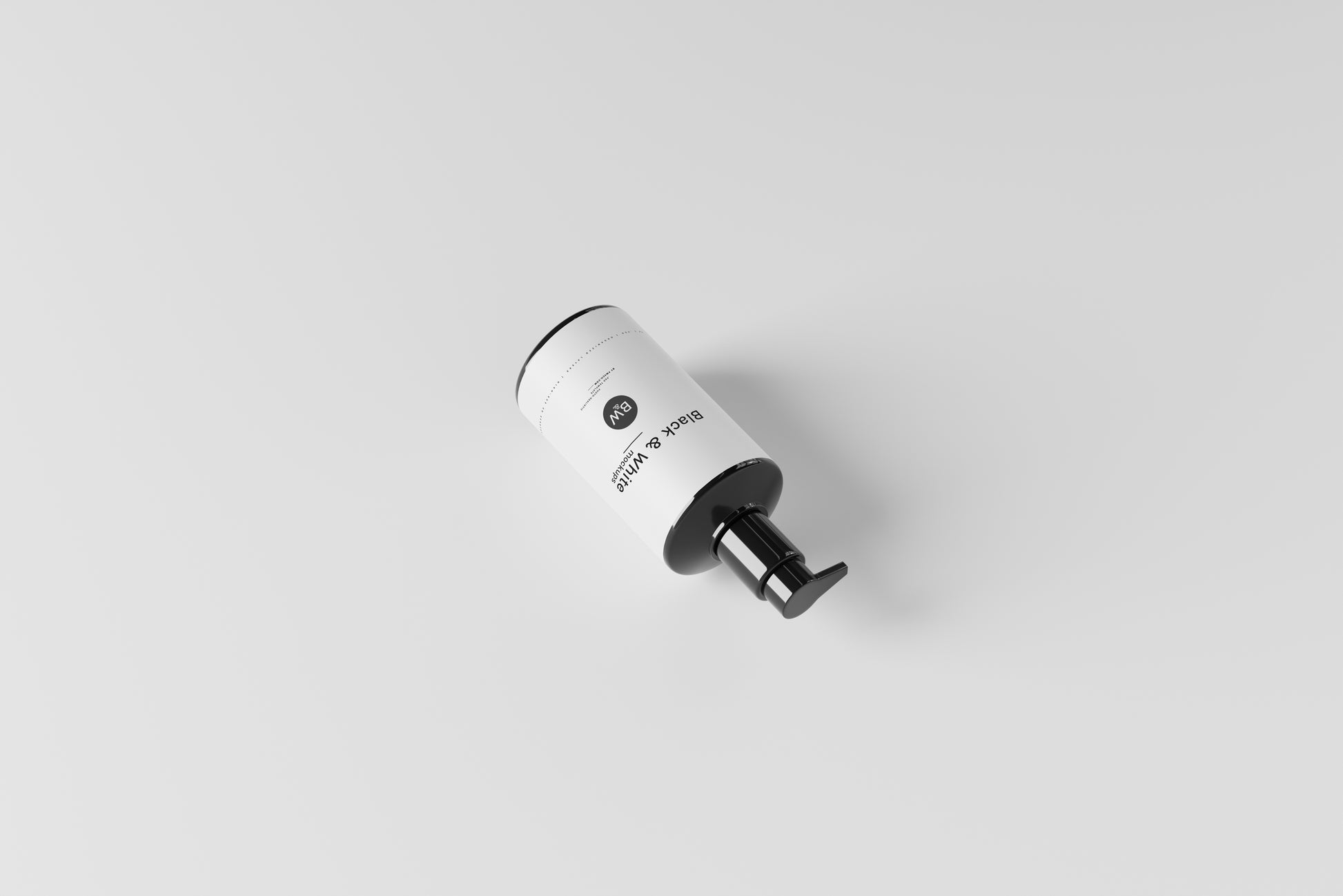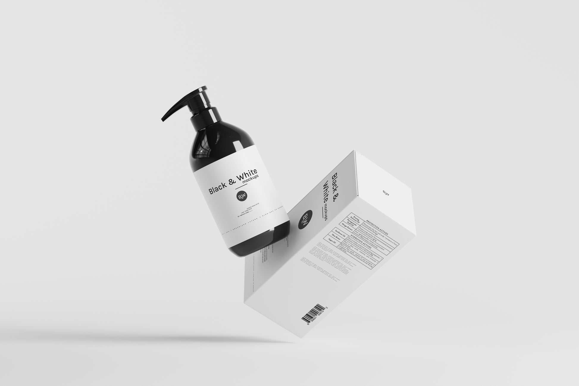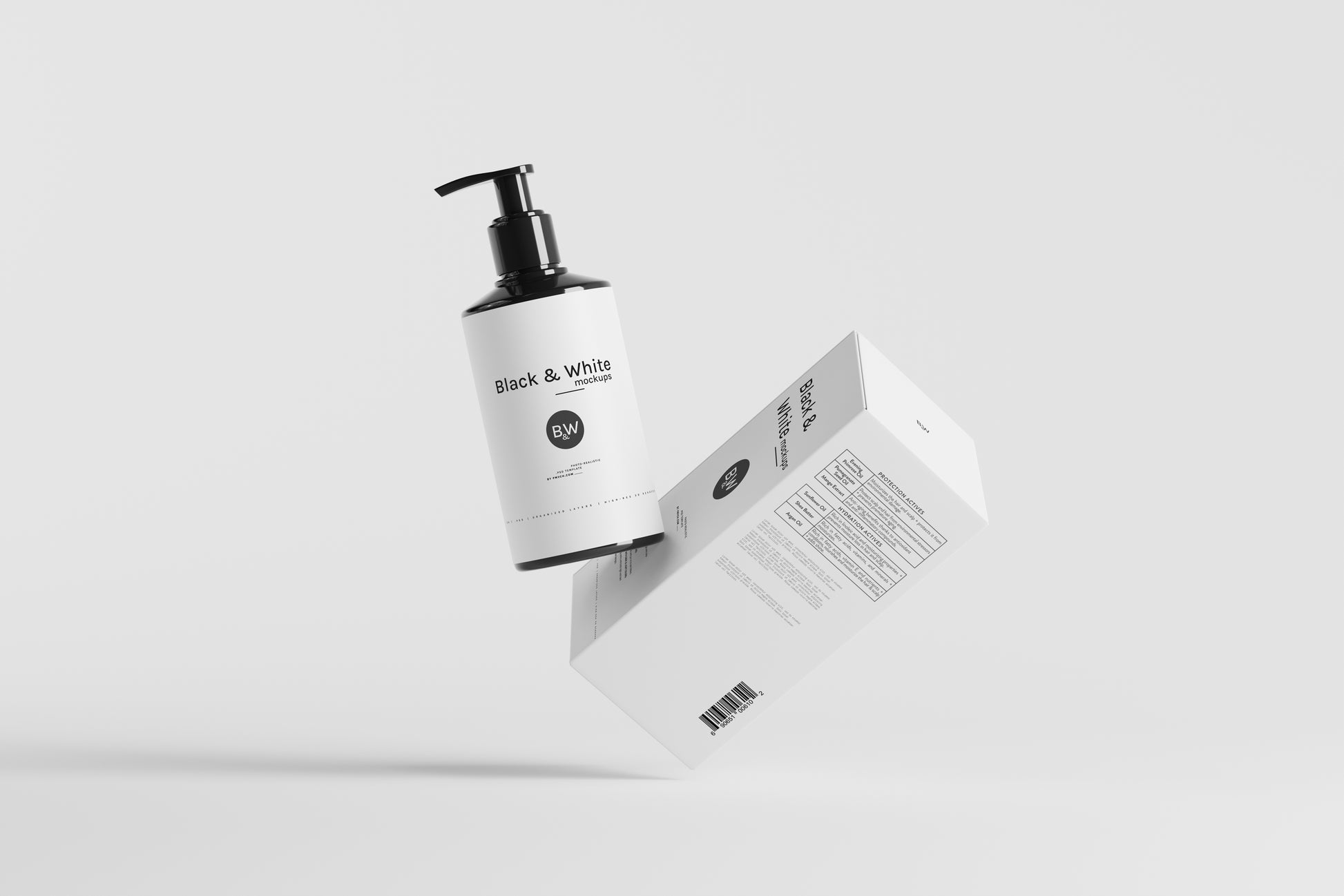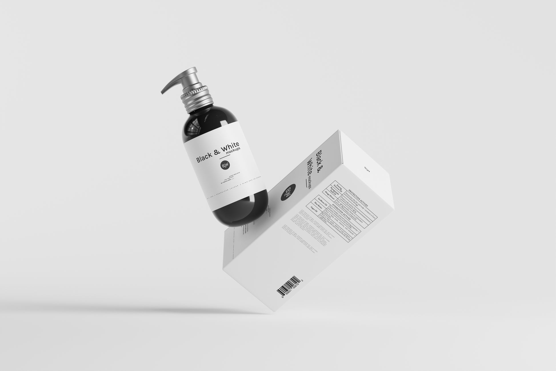 This mockup set focuses on pump bottles and is specifically tailored for black and white labels. However, it can also be used with labels of any color, and they will still look exceptionally good with these mockups.