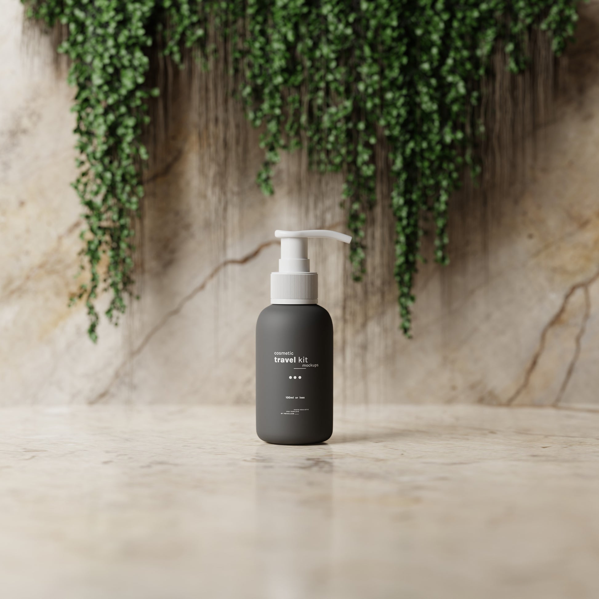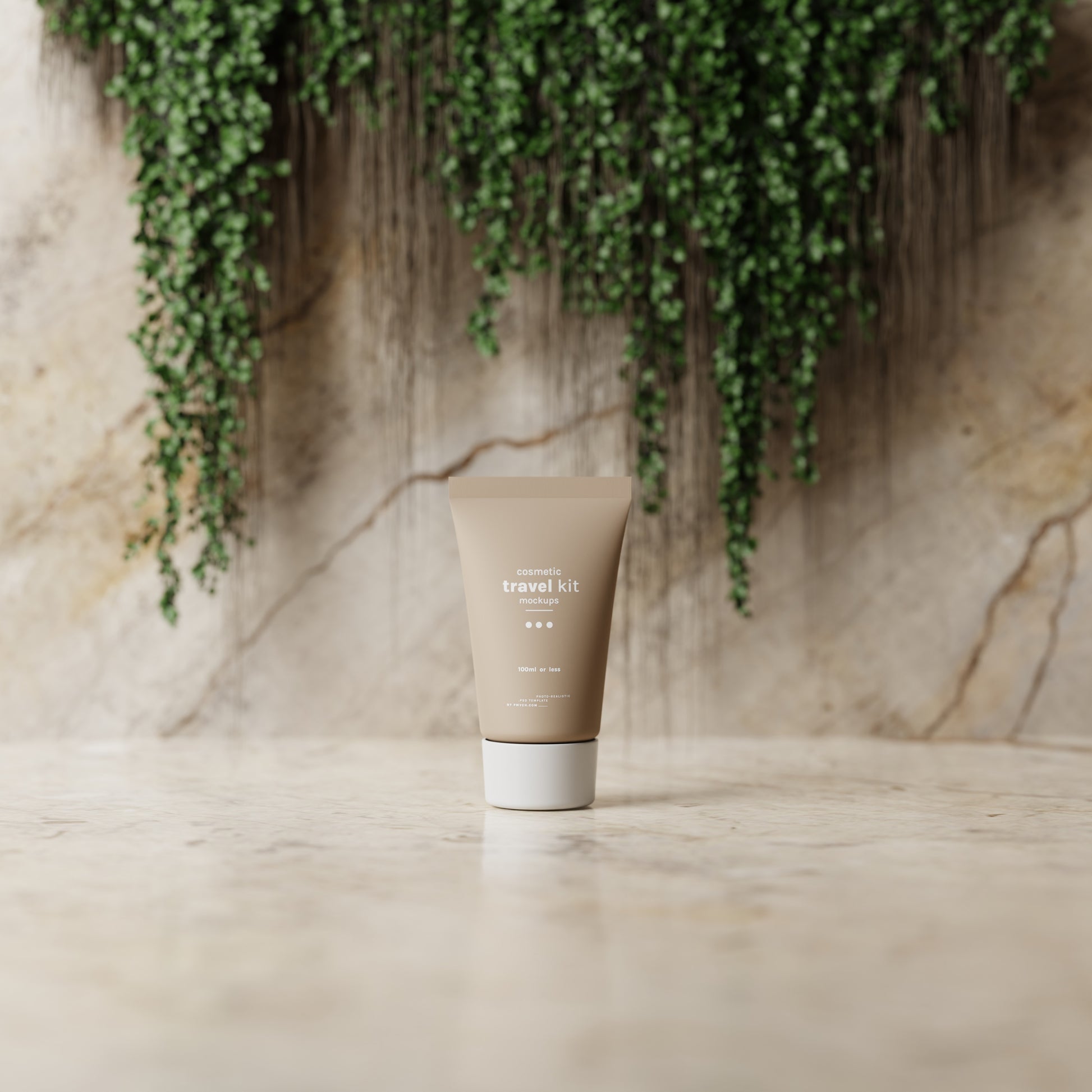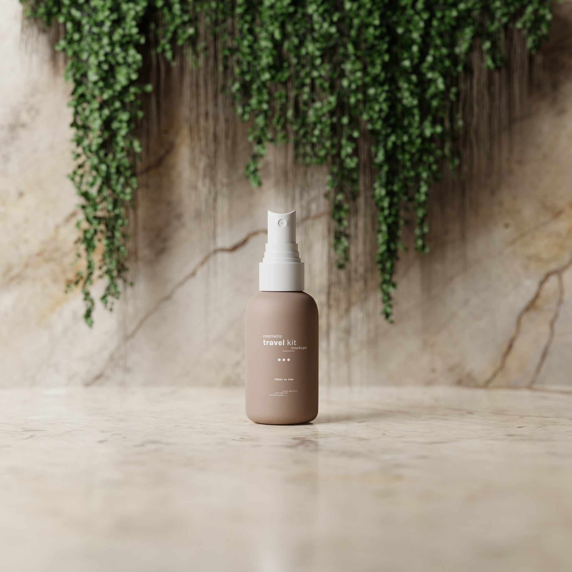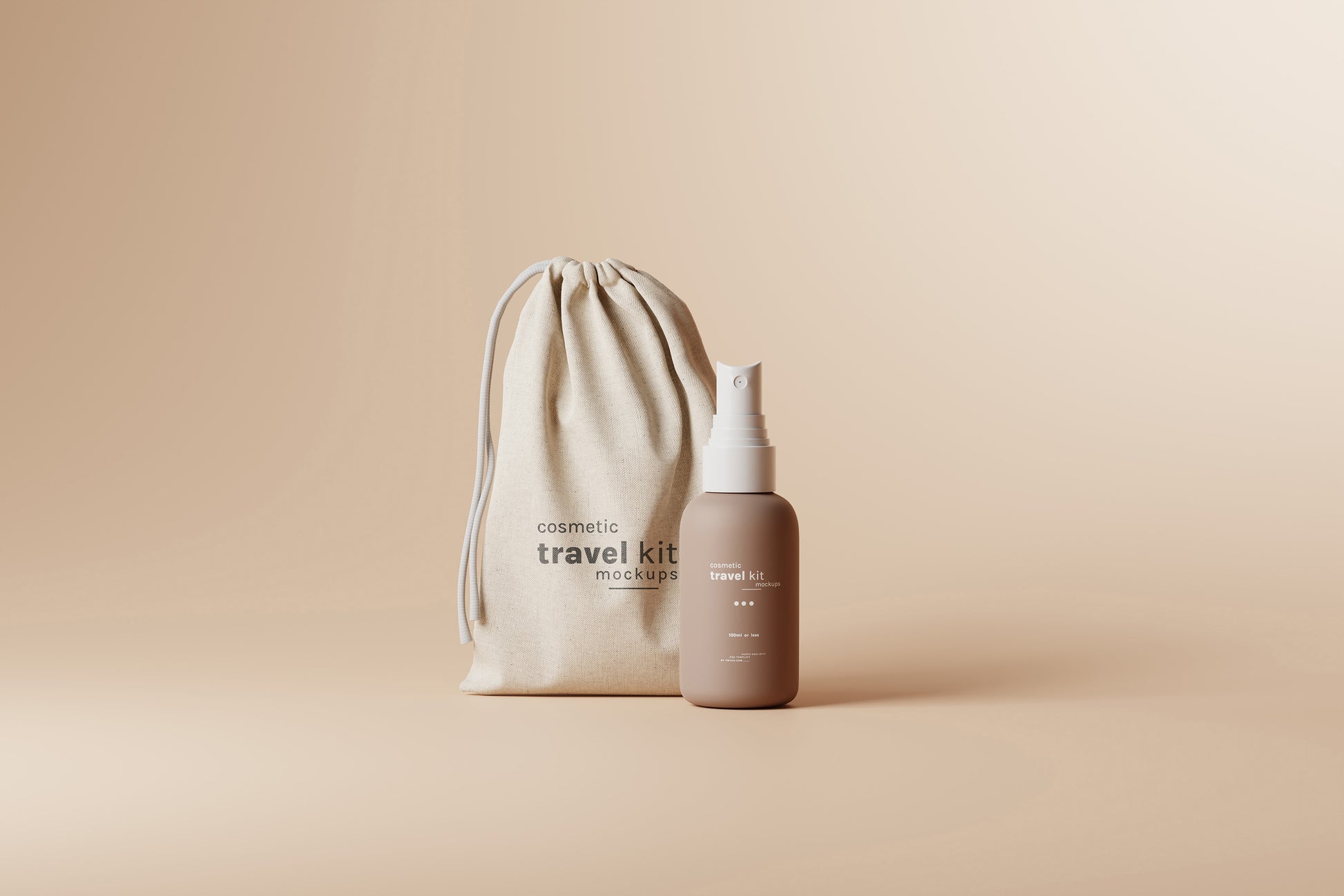 Cosmetic Travel Kit Mockup Scenes : Small cosmetic bottle and packaging mockups for cosmetic travel kits