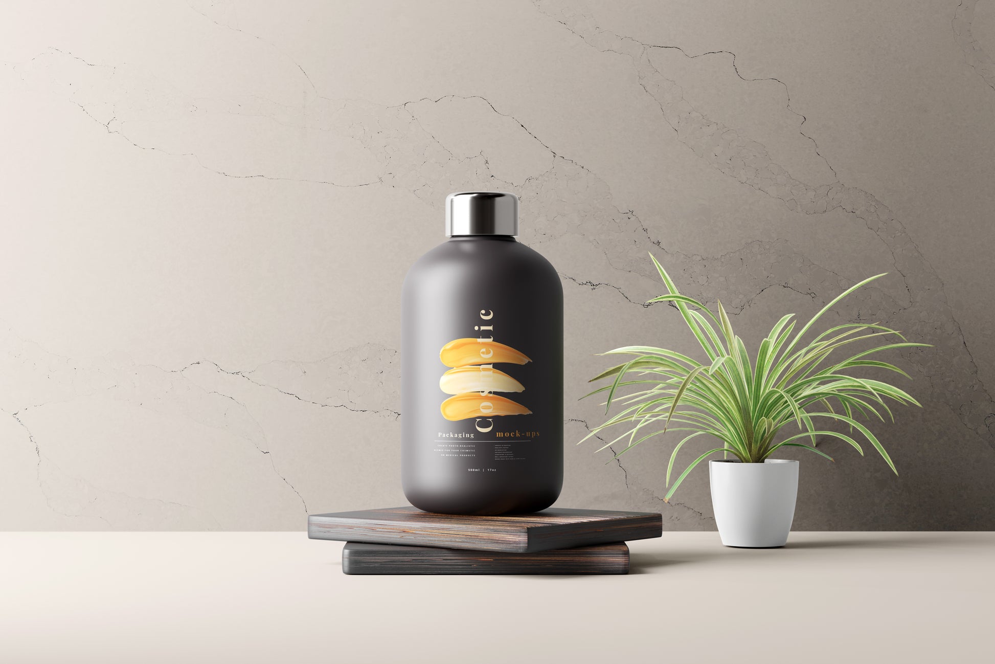 Dark Color Plastic Cosmetic Packaging Bottle Mockup