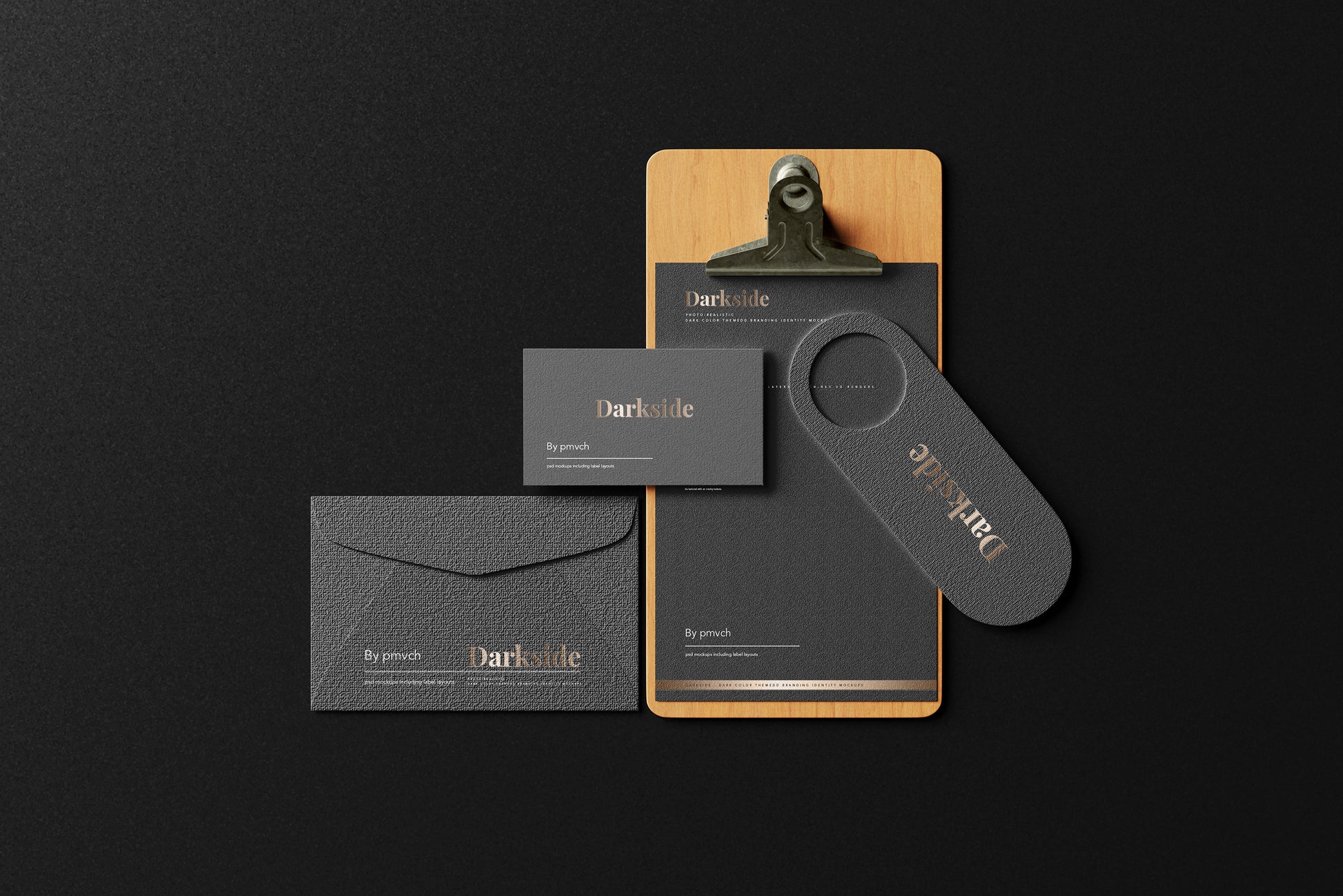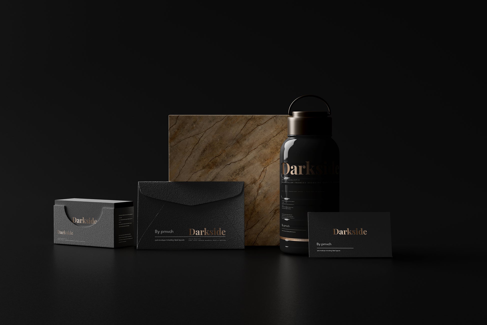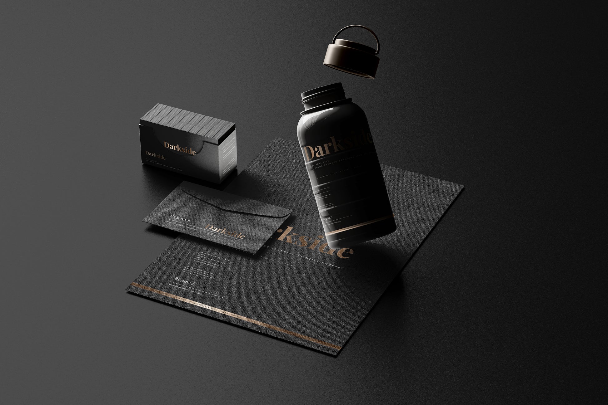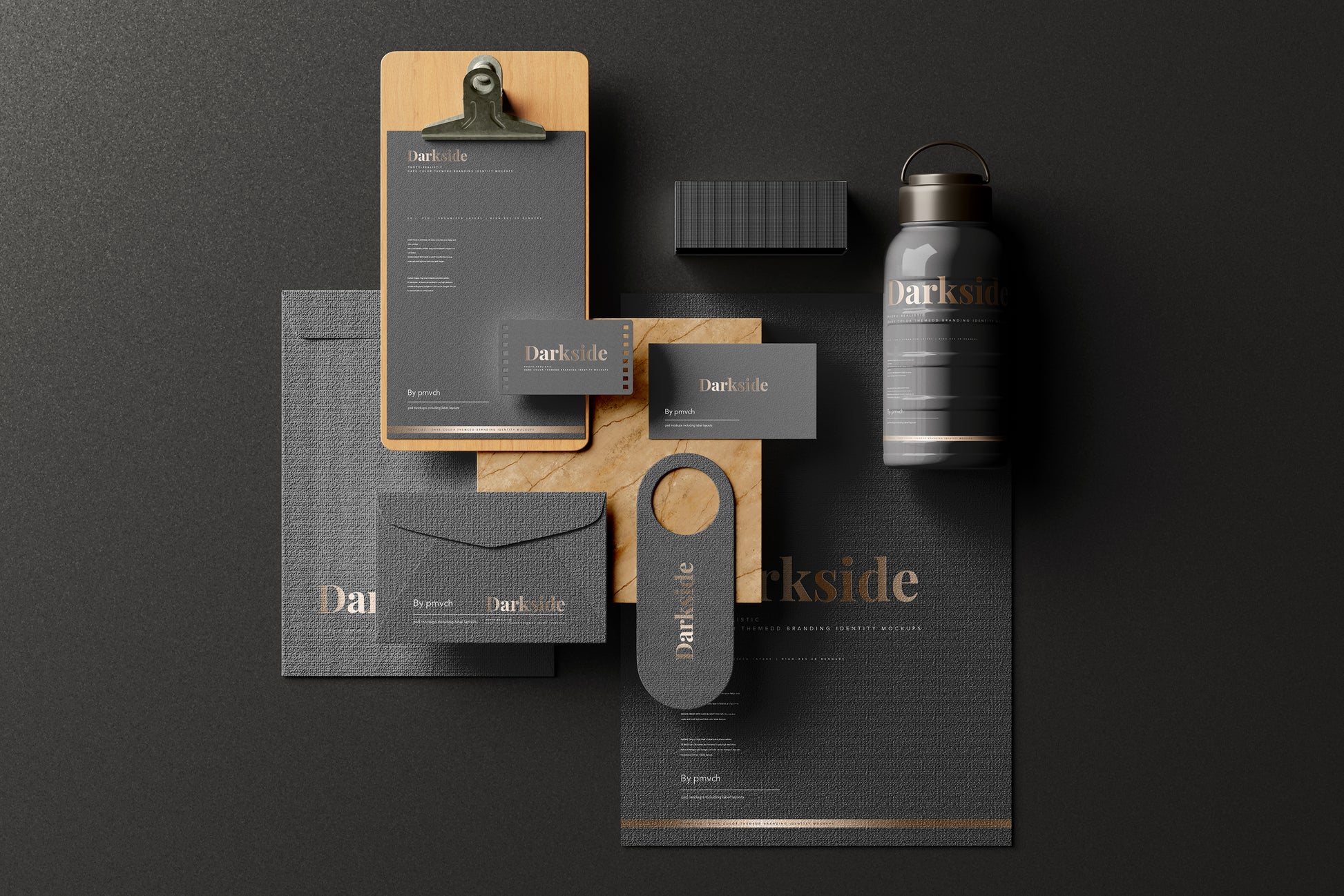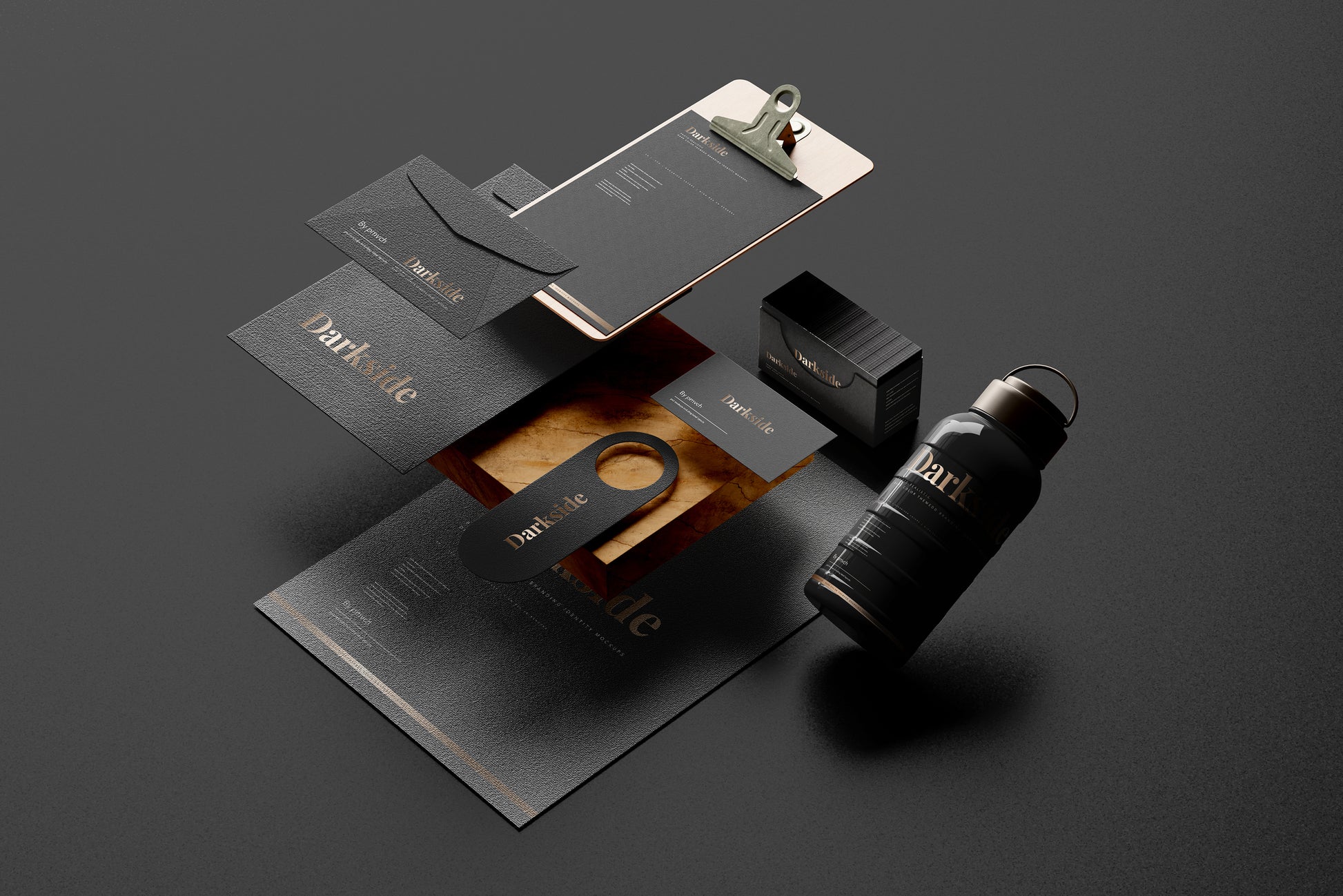 Whether it's for a presentation, portfolio, or promotional purposes, the "Darkside" mockup set offers a versatile range of options to elevate branding identity designs and leave a lasting impression.