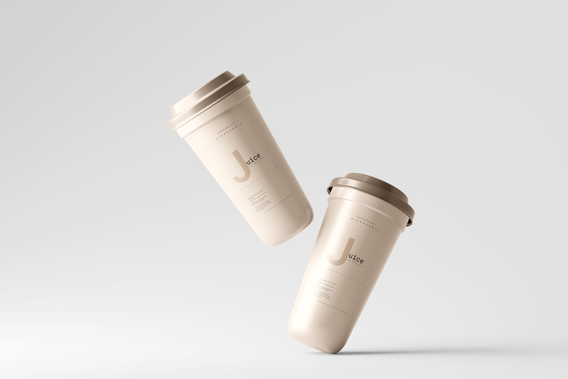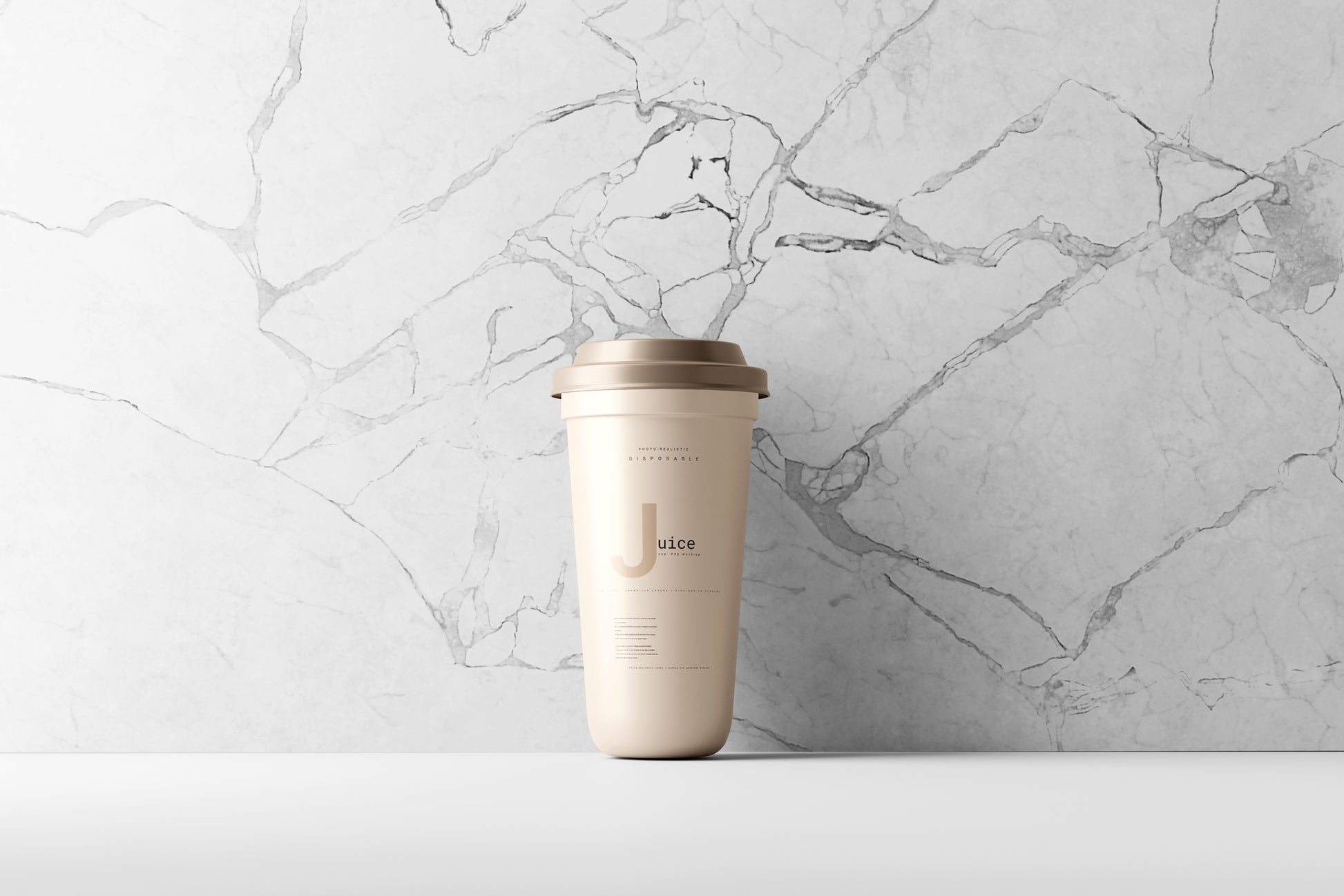 White matte disposable cup for beverages such as juice, water, soda, coffee, tea. 500 ml or larger. Photo-realistic packaging mockup template