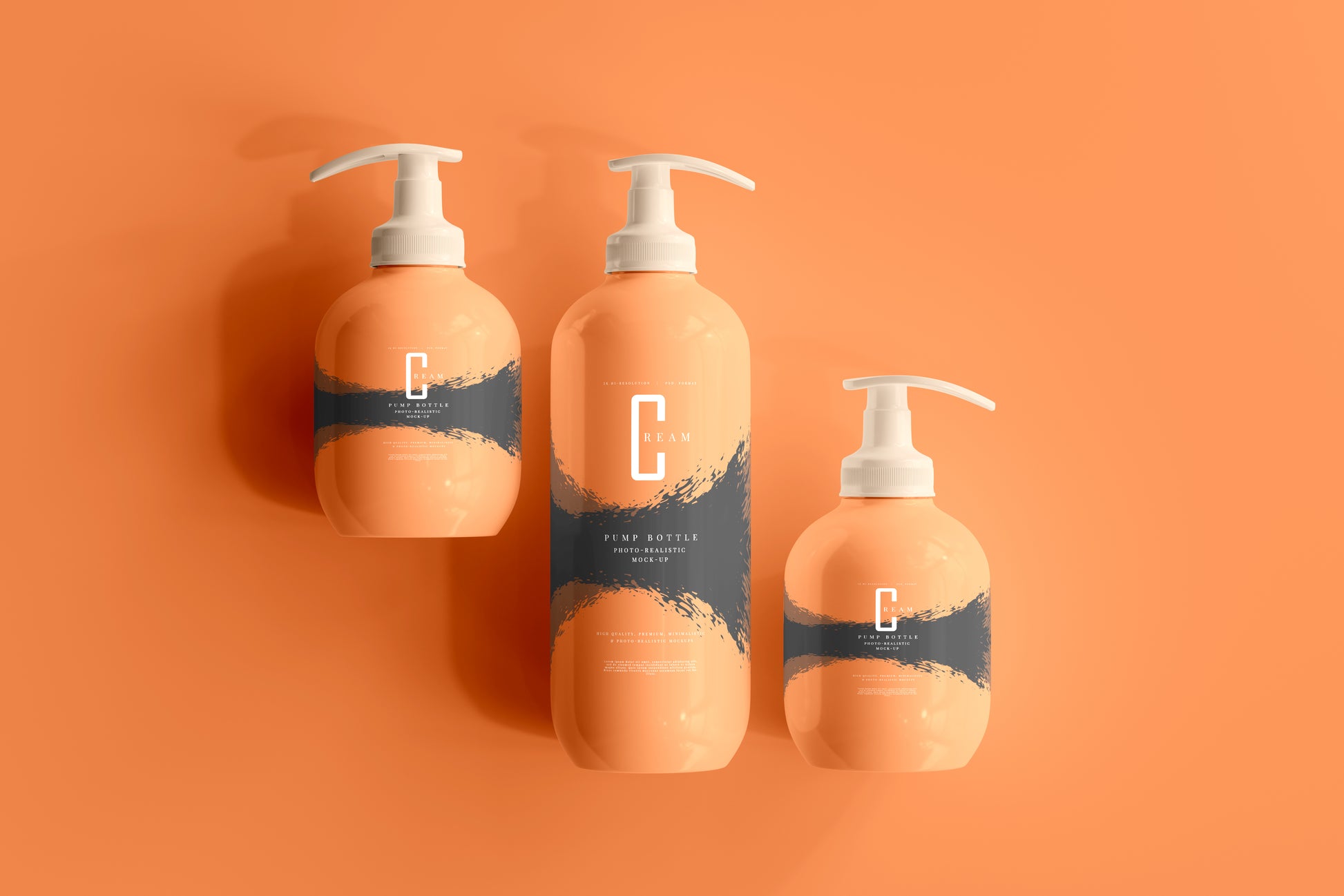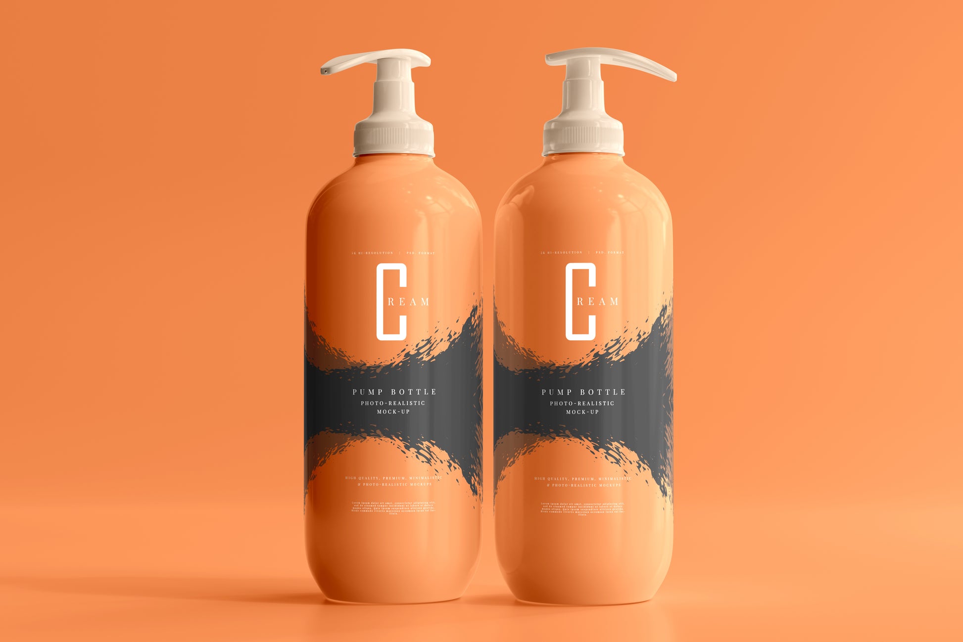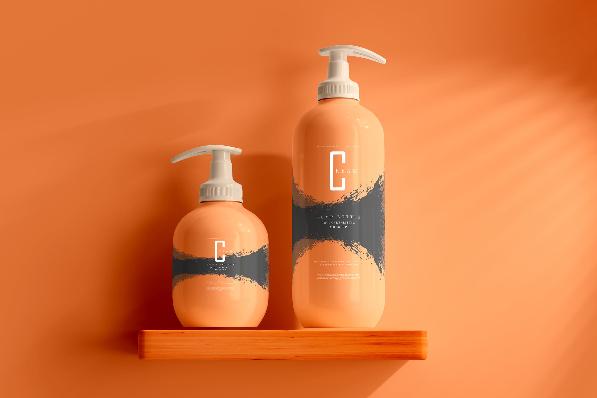 Two sizes Pump Bottle Mockups with glossy plastic body.