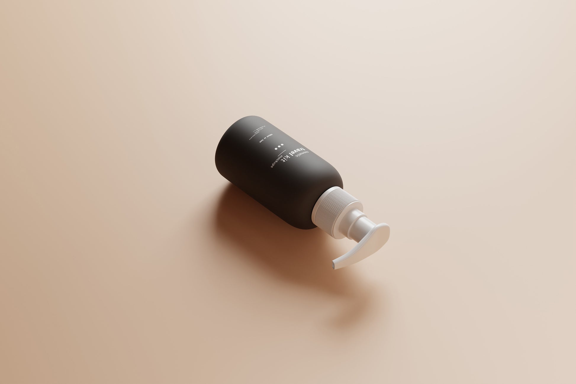These mockups feature a compact pump bottle ideal for travel-size cosmetics, typically holding less than 100ml, with the more common capacity being 60ml. With their photo-realistic results, these mockups serve as an excellent tool for showcasing your travel-size cosmetic products.