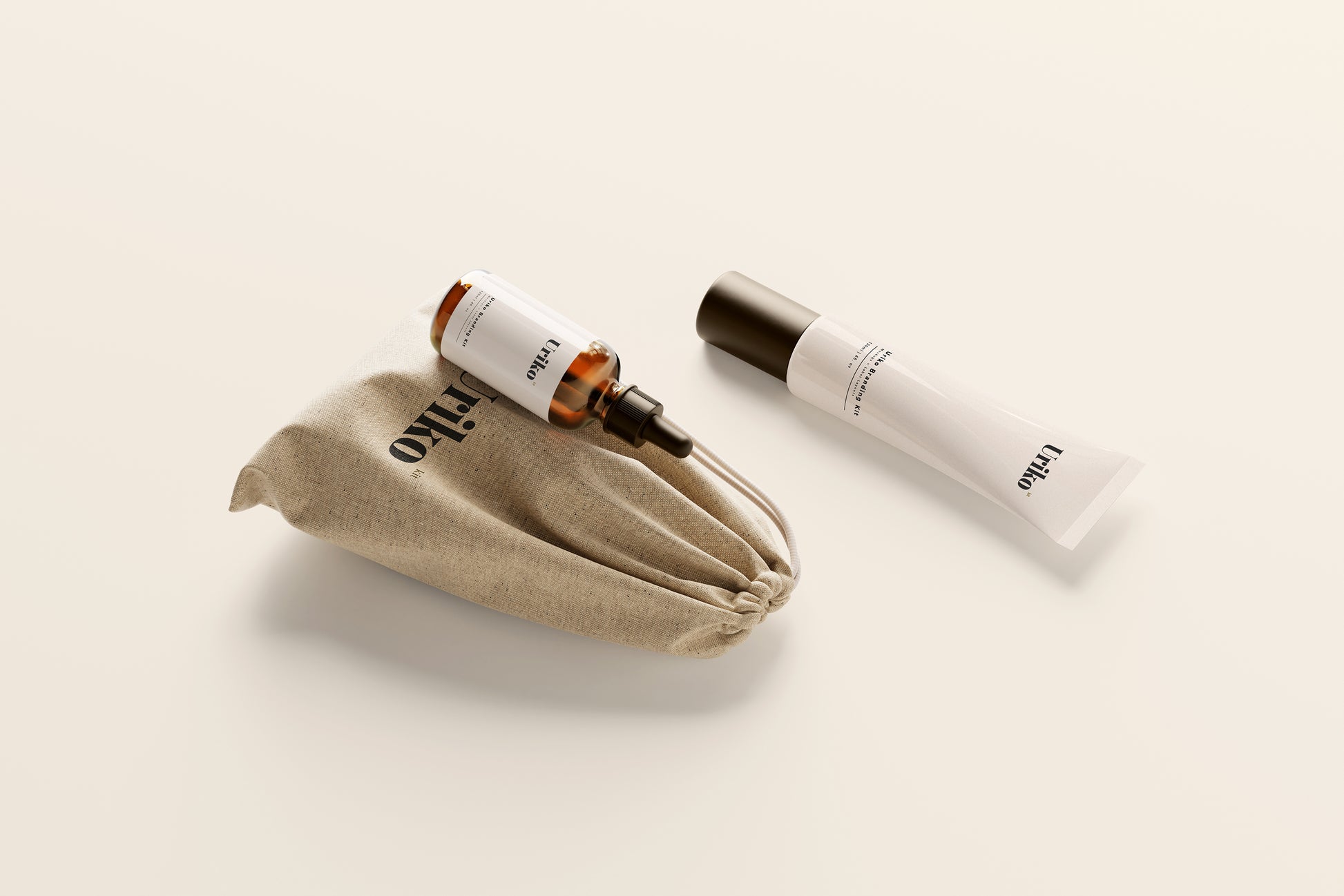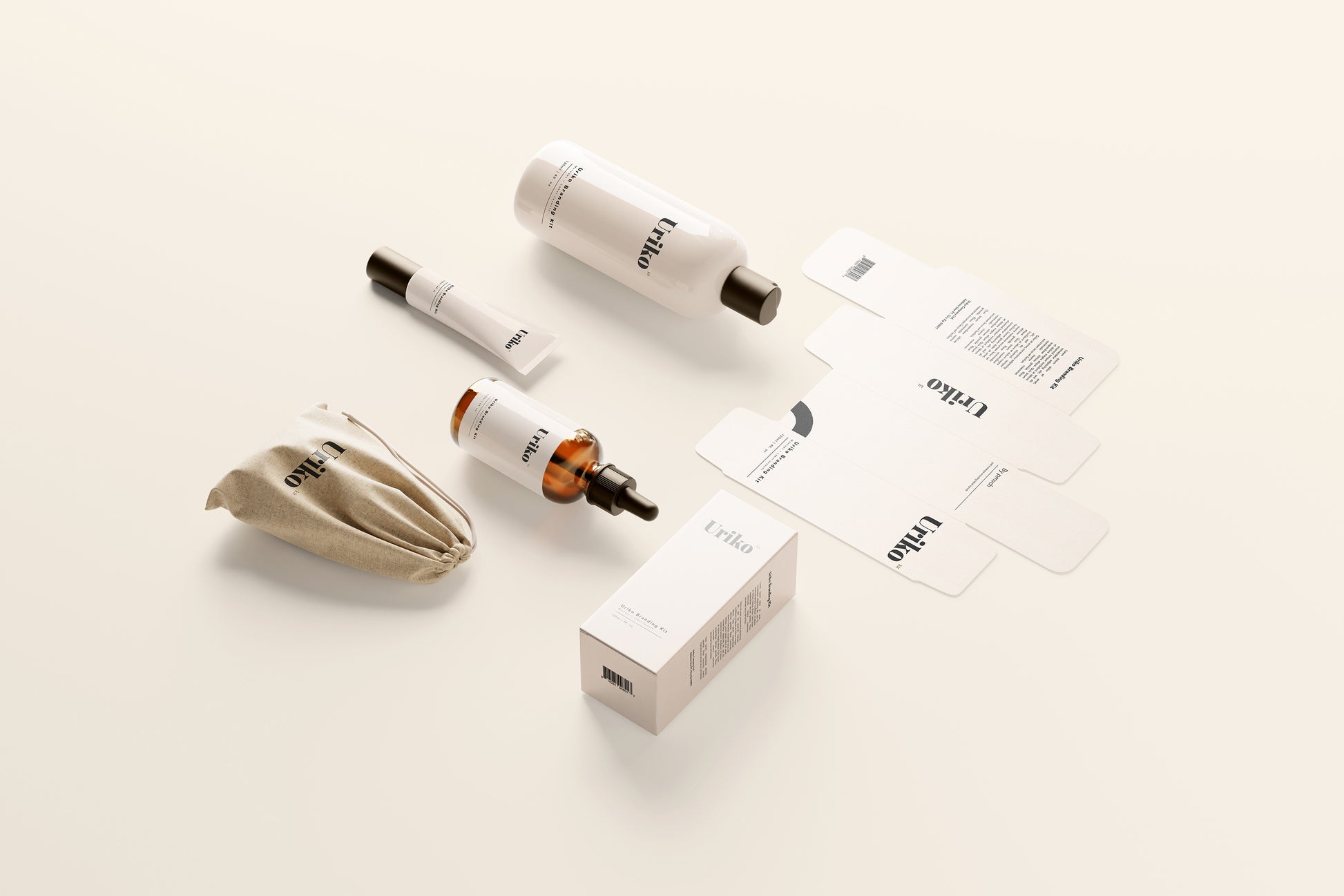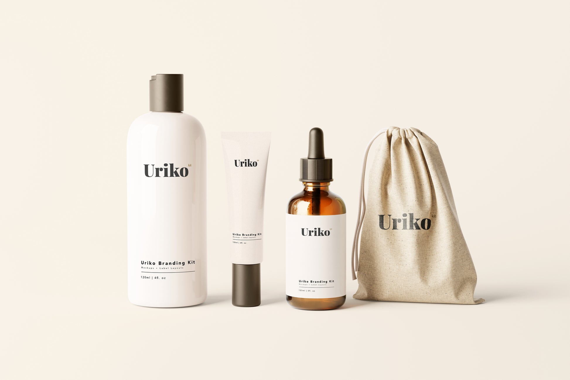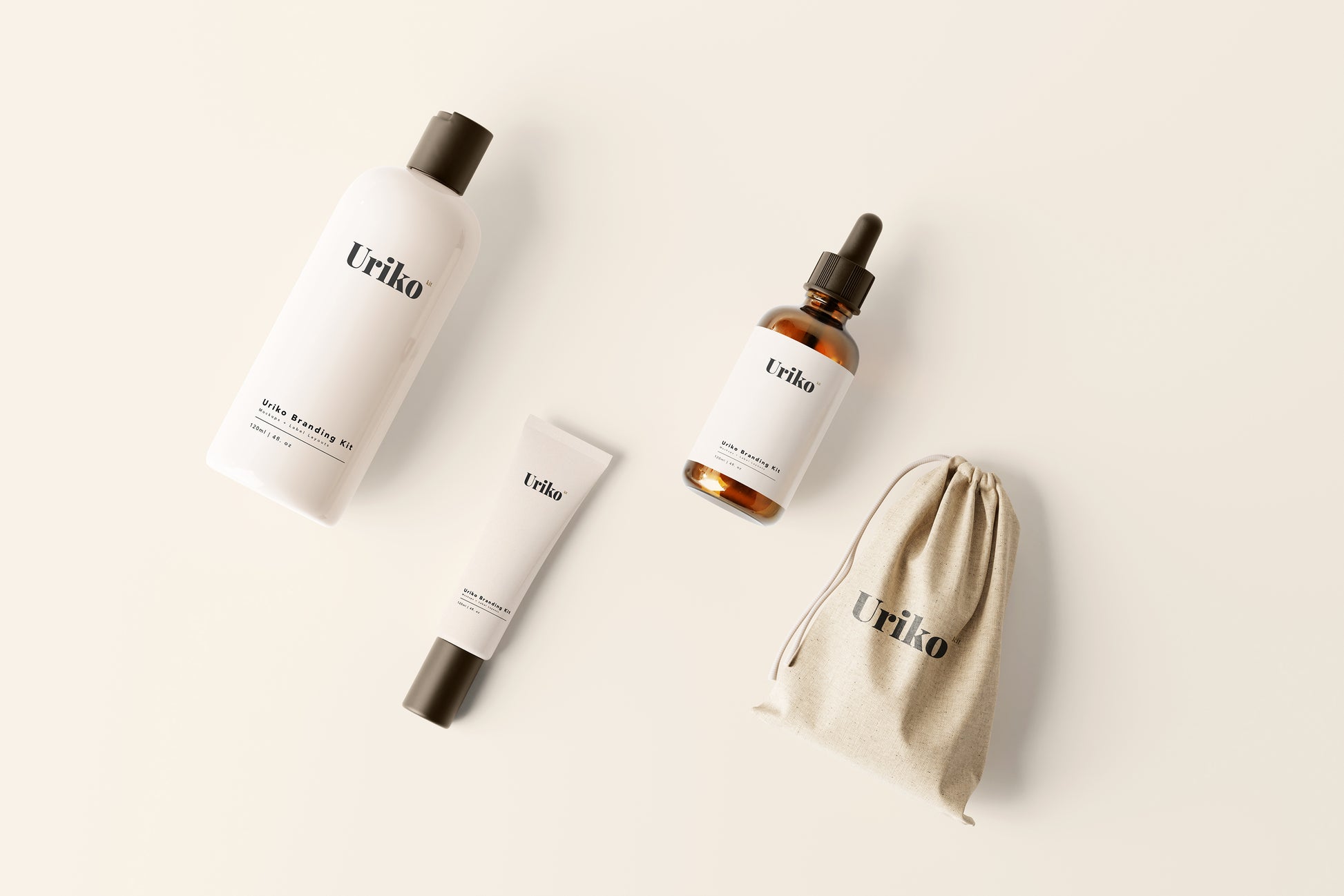 If you are looking for branding mockups or label templates this kit includes both. you can use the label design as well as mockups to showcase your products. This set features a plastic bottle, an amber glass dropper bottle and a cream tube as the main products. also includes a box, an unfolded box and business cards.