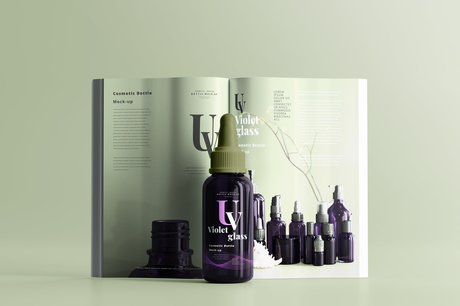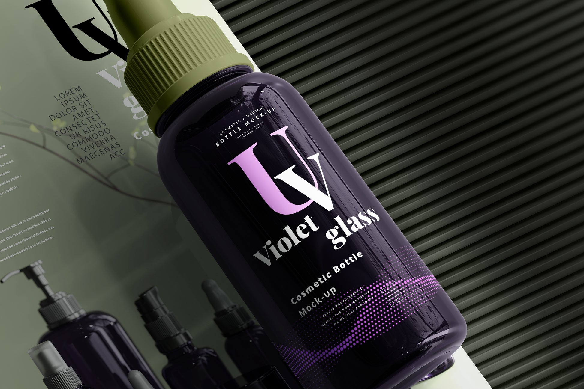 Ultra Violet Glass Cosmetic Bottle Mockups