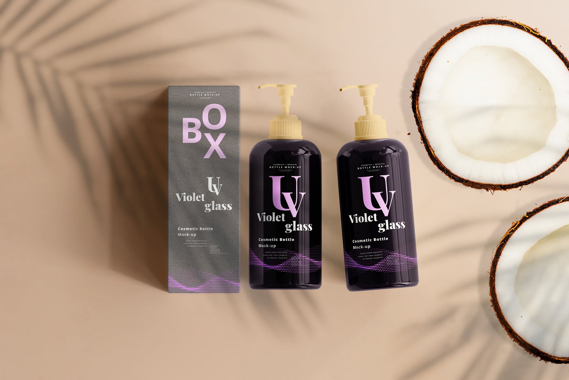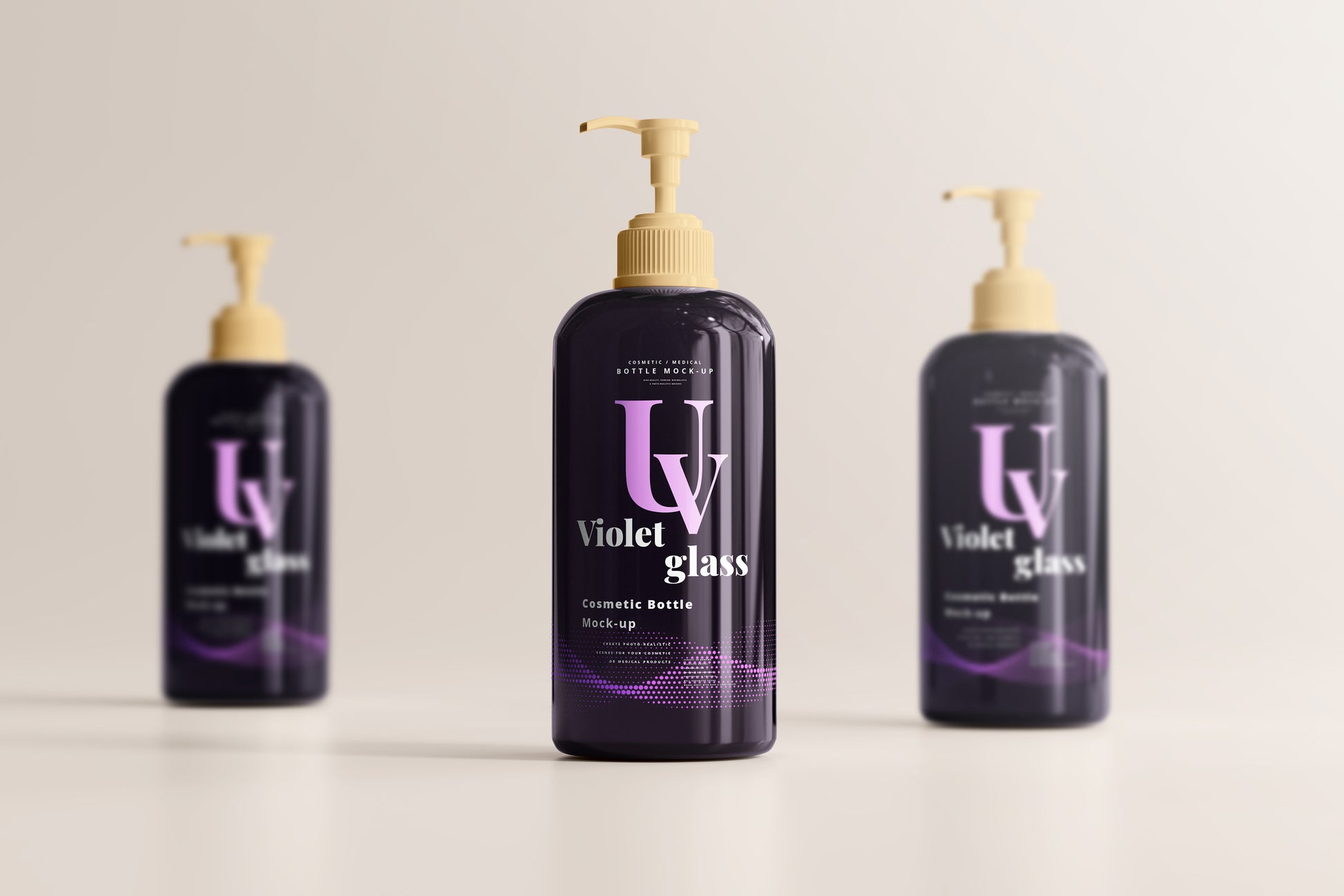Ultra Violet Glass Cosmetic Bottle Mockups
