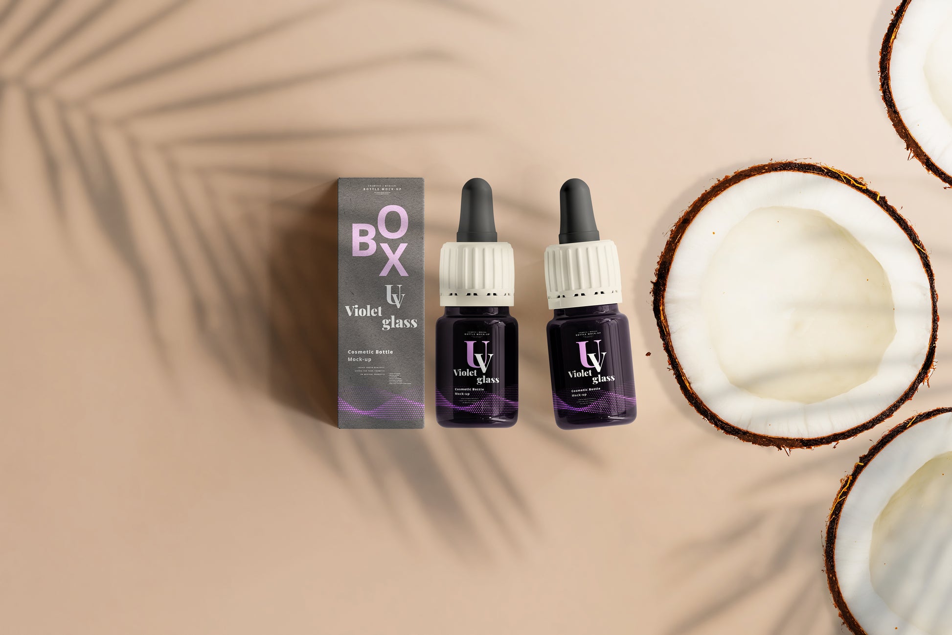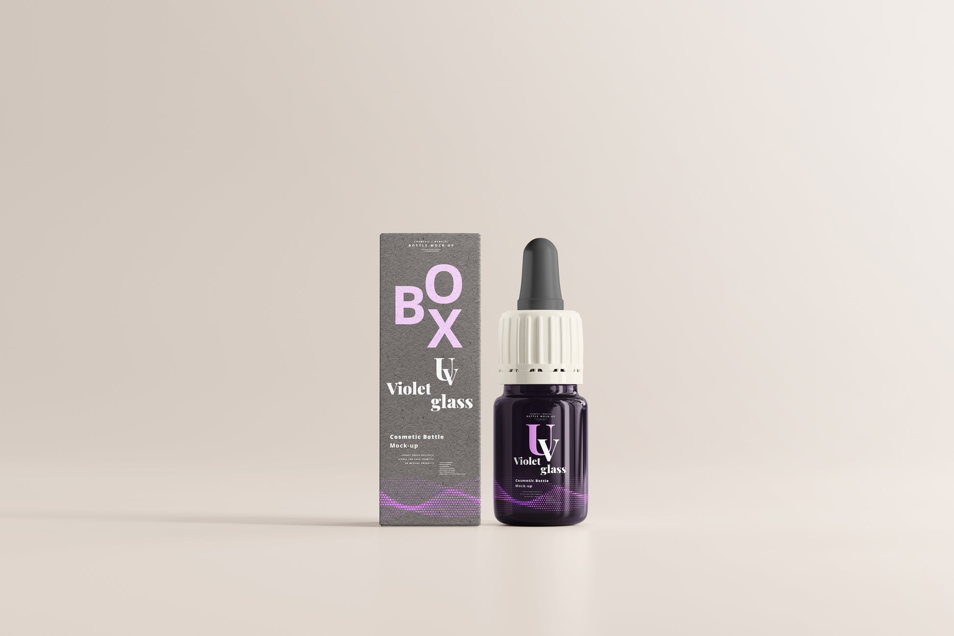 Ultra Violet Glass Cosmetic Bottle Mockups