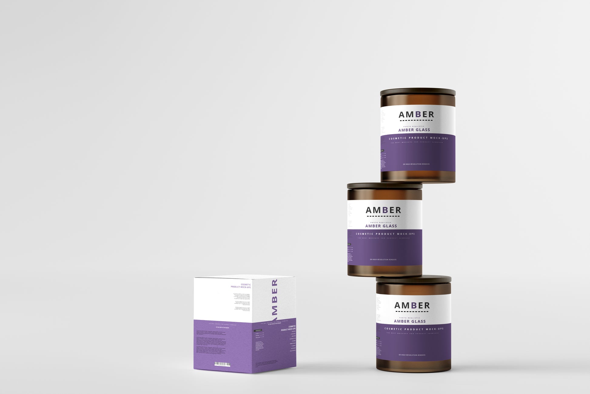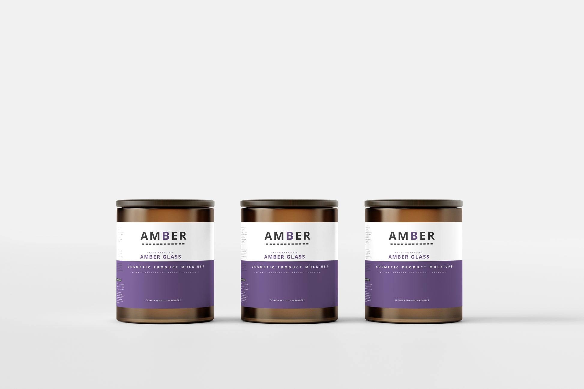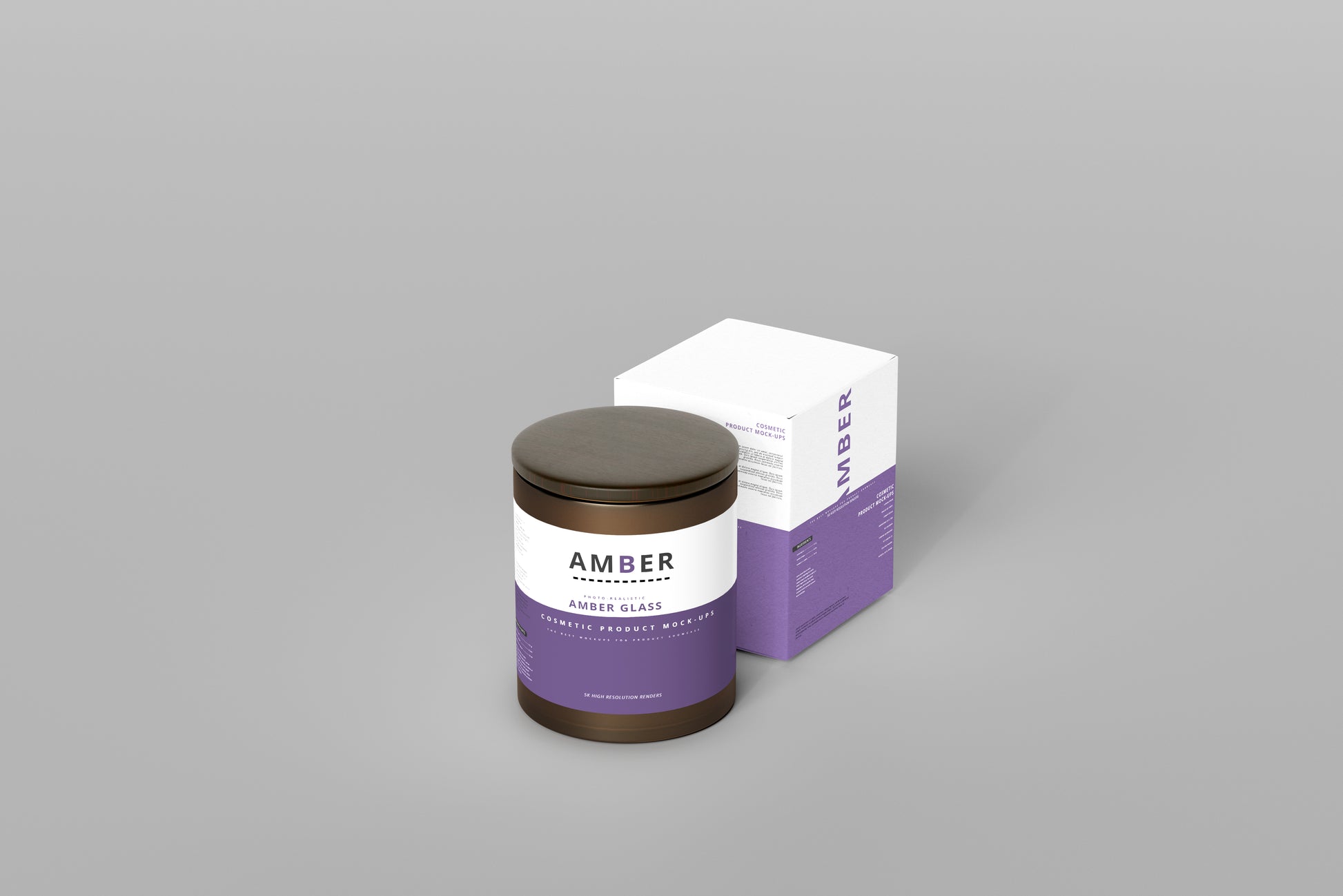 Amber Glass Jar Mockups, A common type of jar with a wooden lid container generally used for cosmetic products.