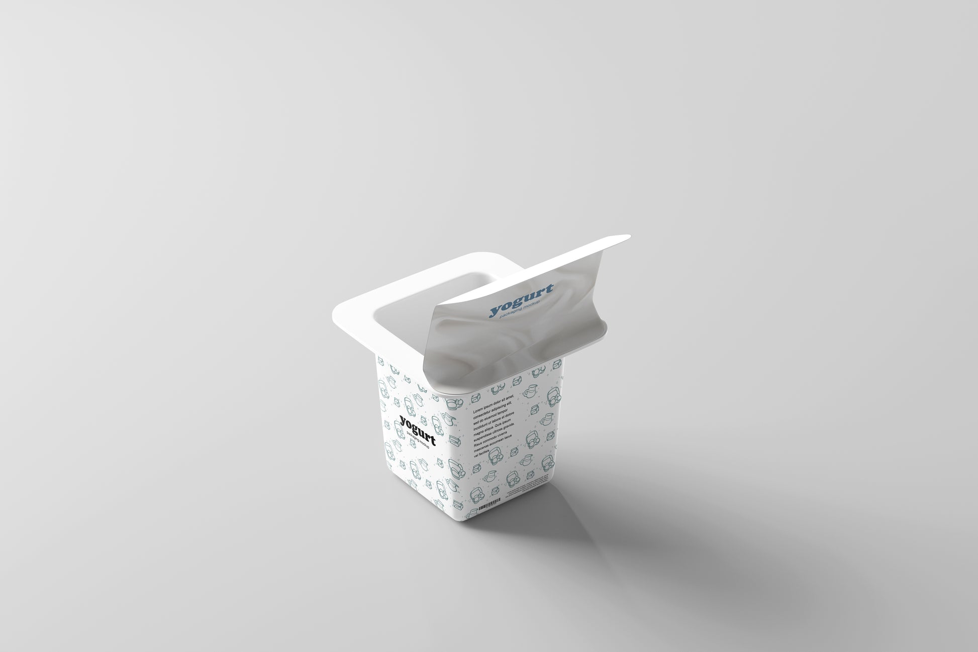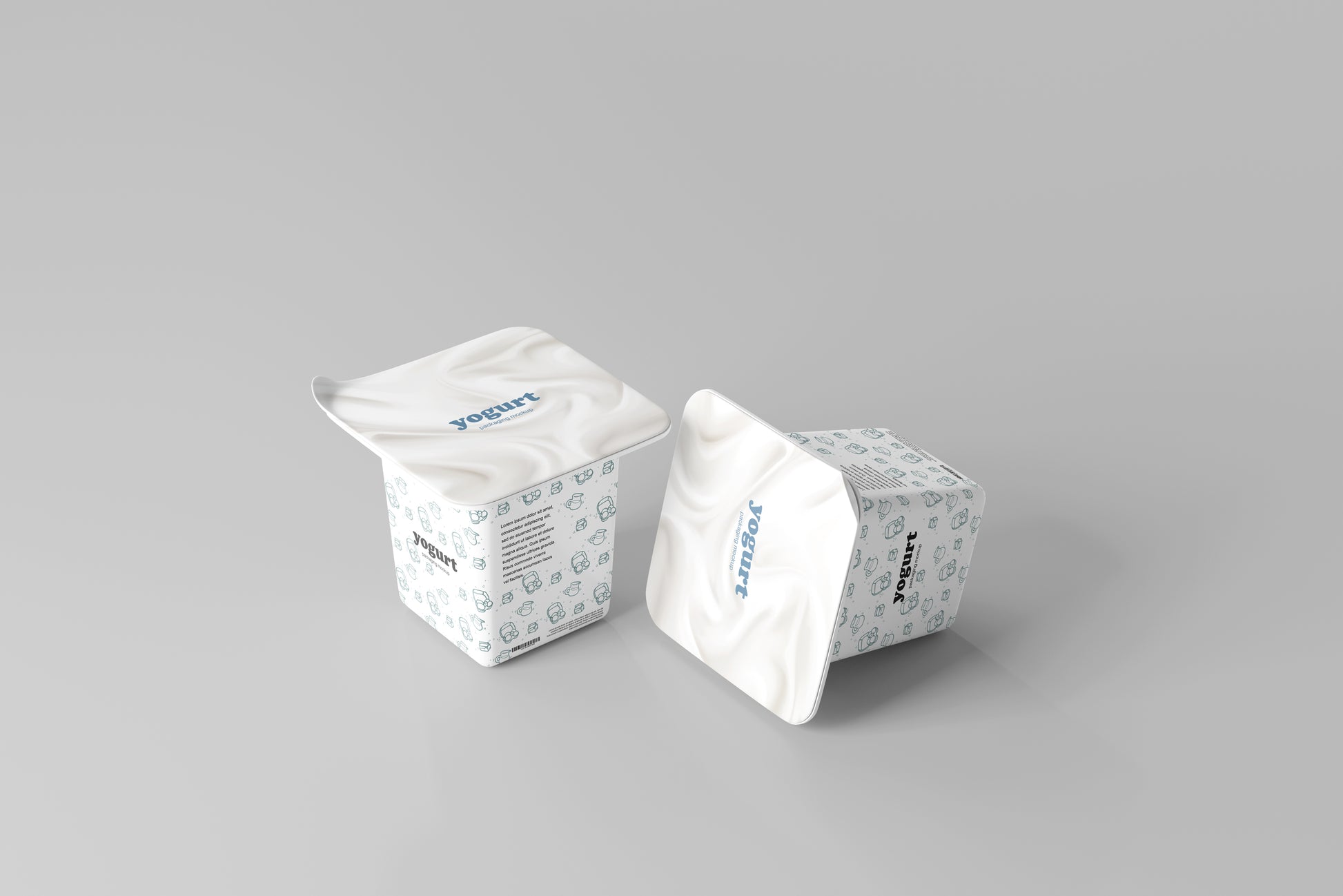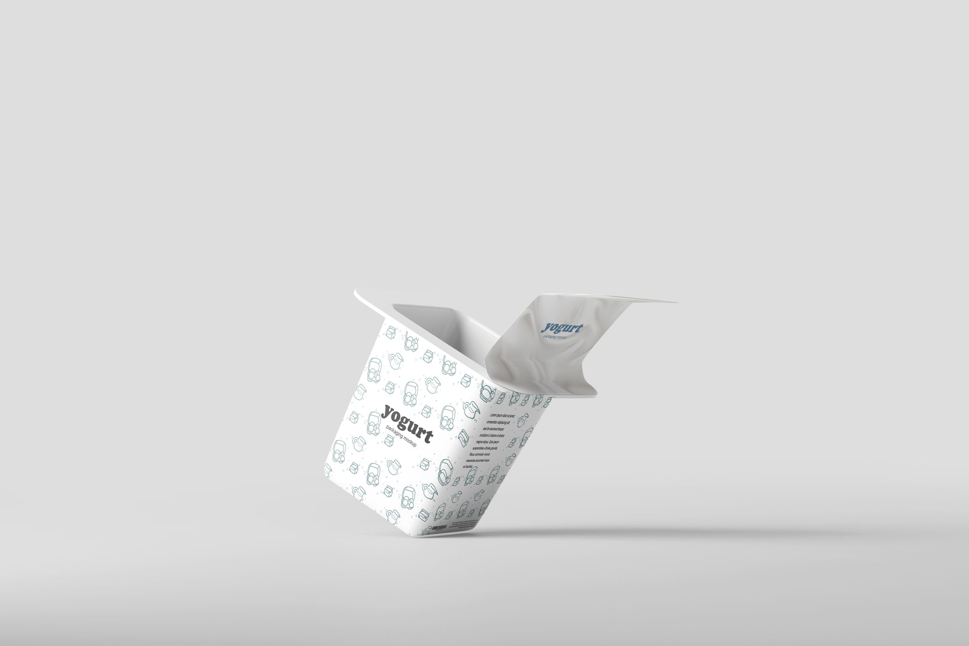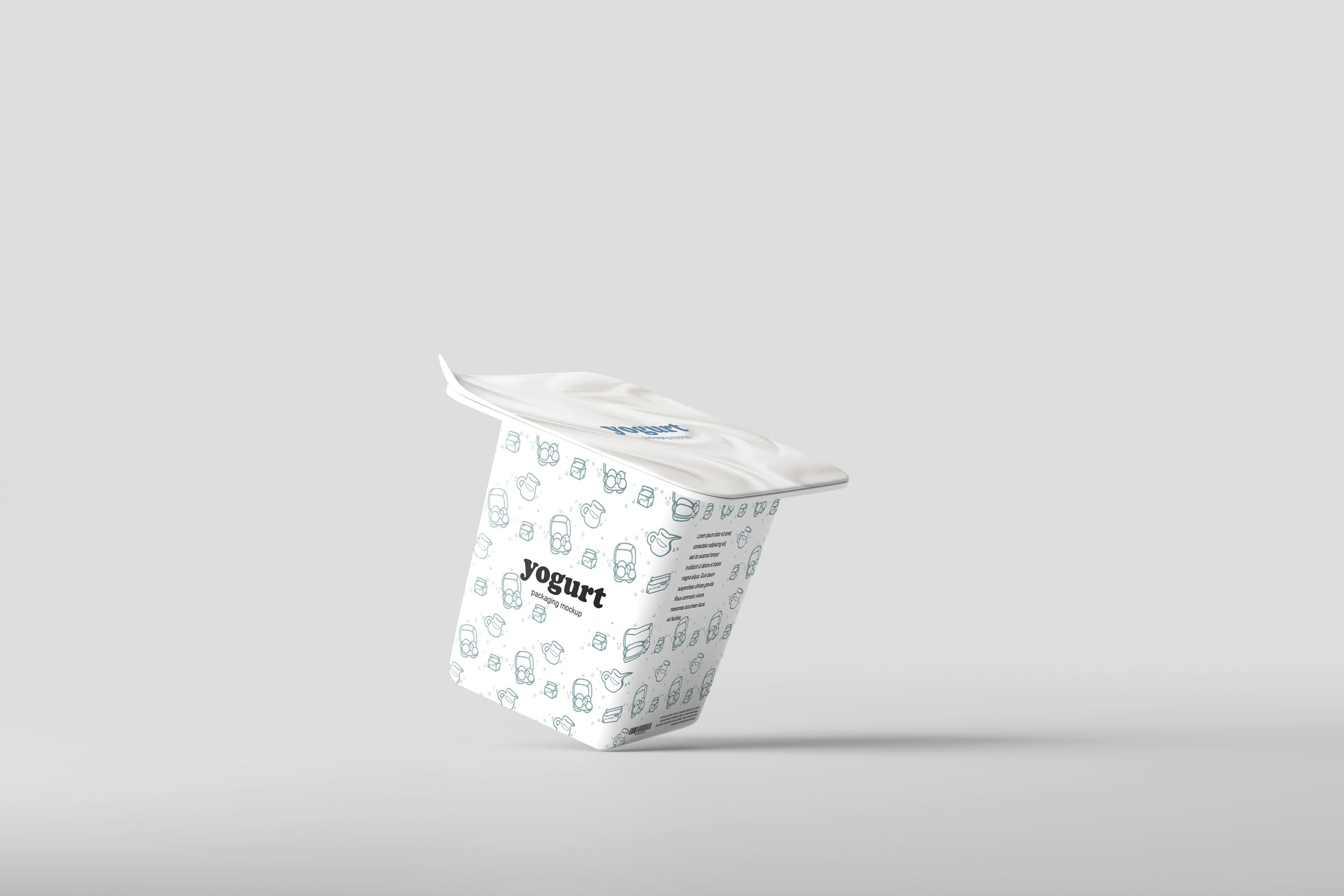Plastic Yogurt or Ice Cream Cup Packaging Mockup. Commonly used plastic cup model with foil lid. Includes both lid label and body label. either label can be turned off if needed.