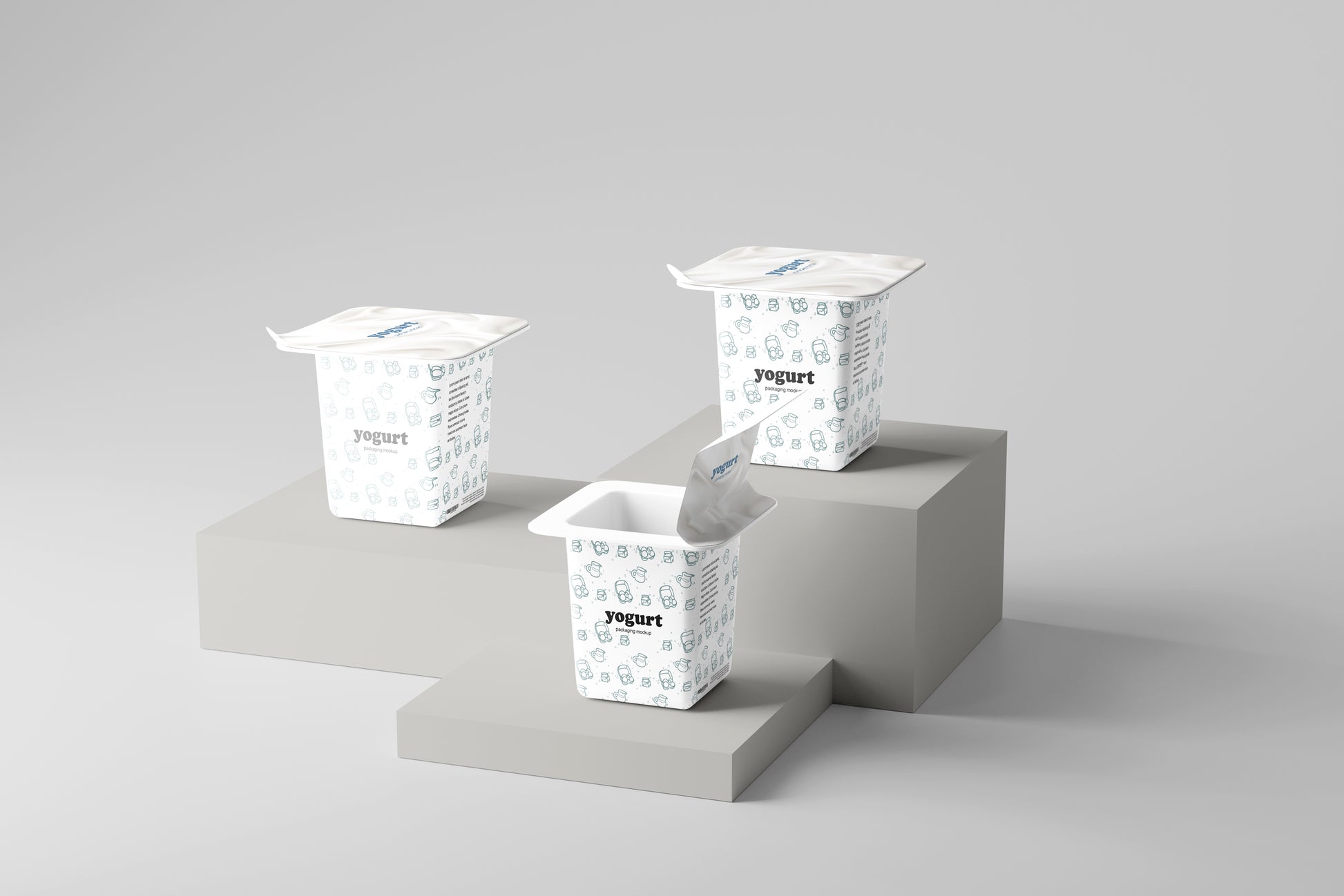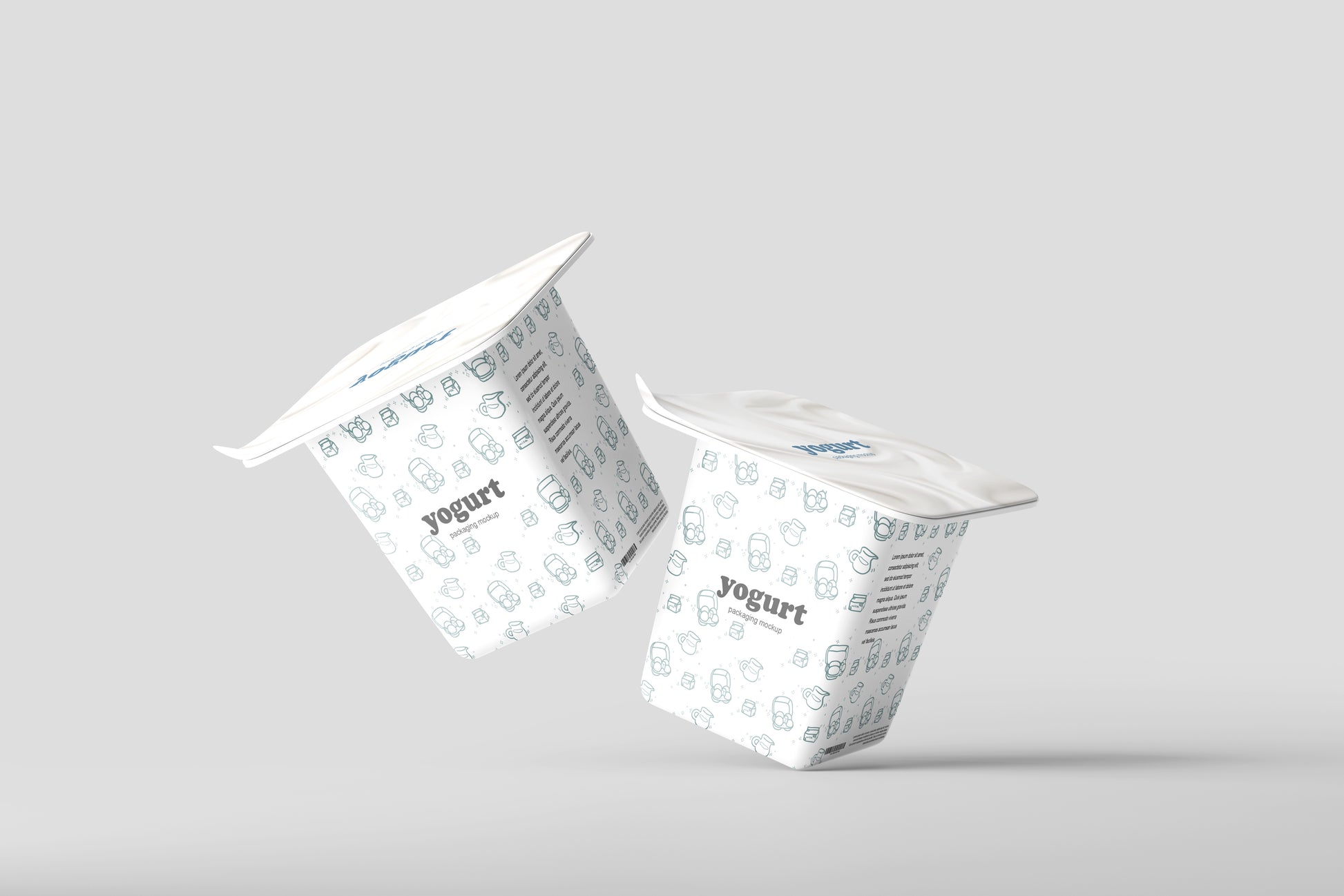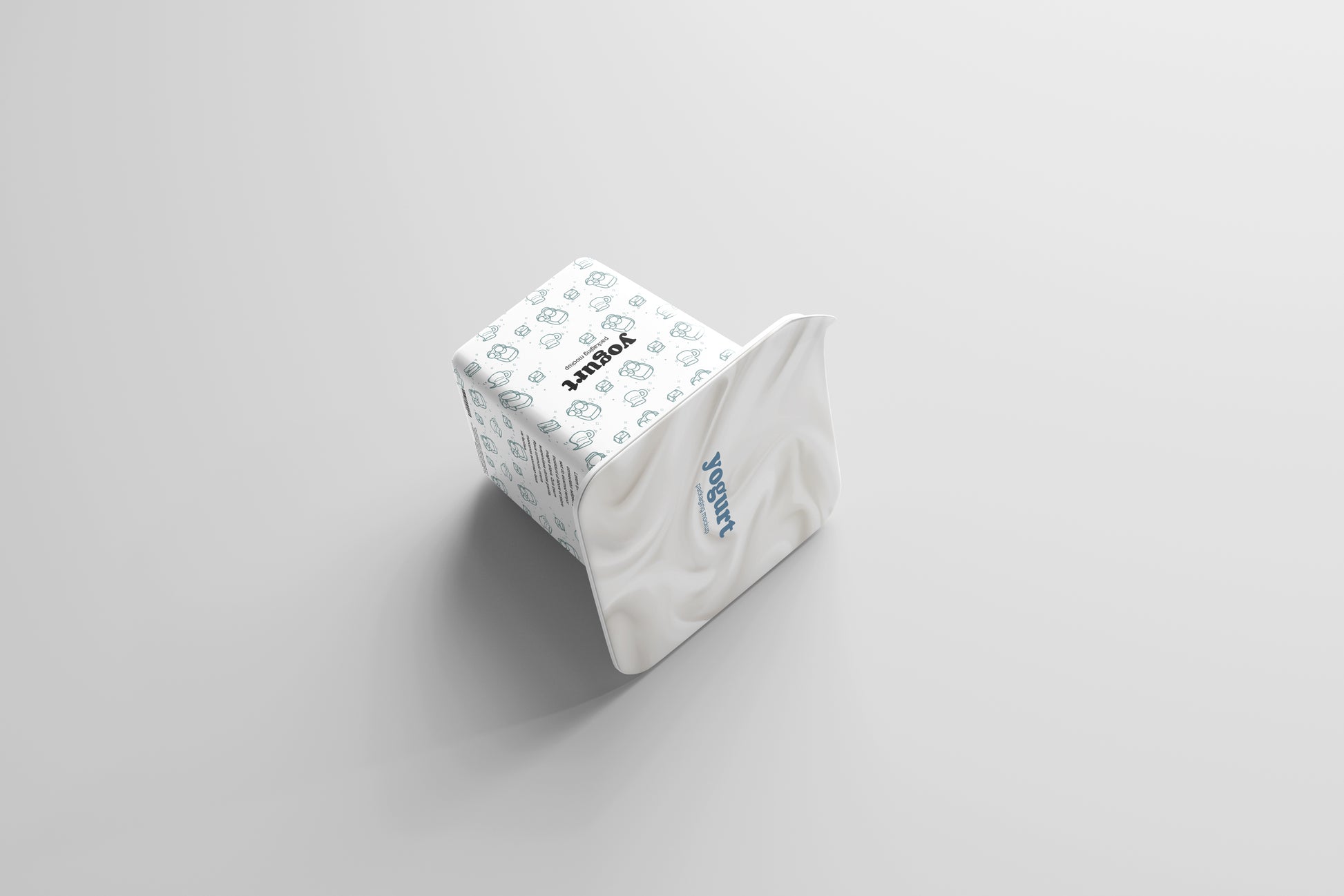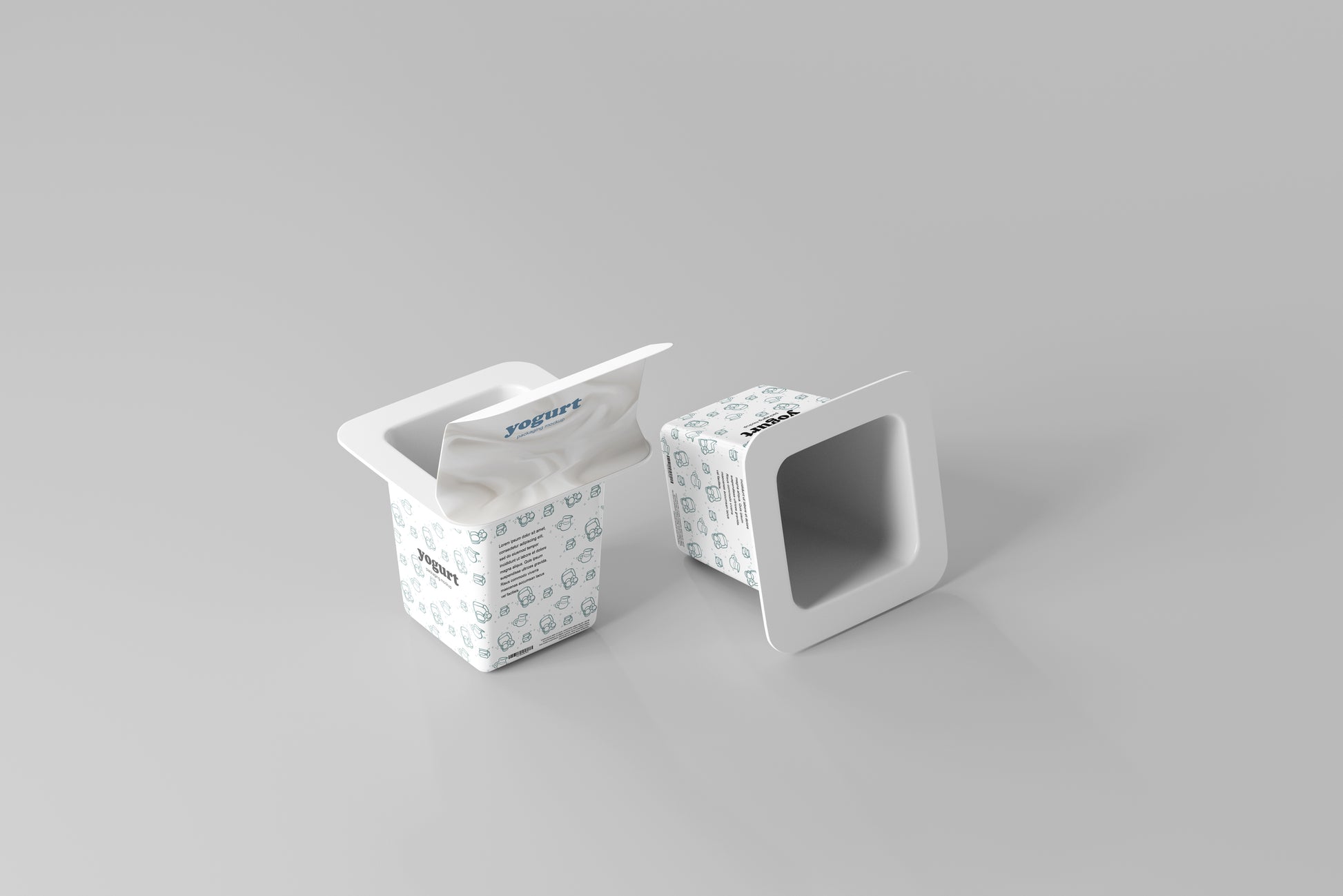 Plastic Yogurt or Ice Cream Cup Packaging Mockup. Commonly used plastic cup model with foil lid. Includes both lid label and body label. either label can be turned off if needed.