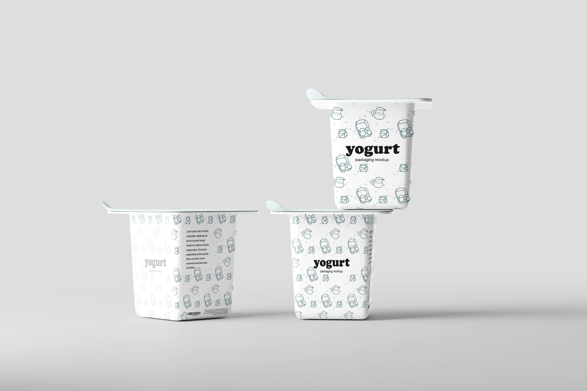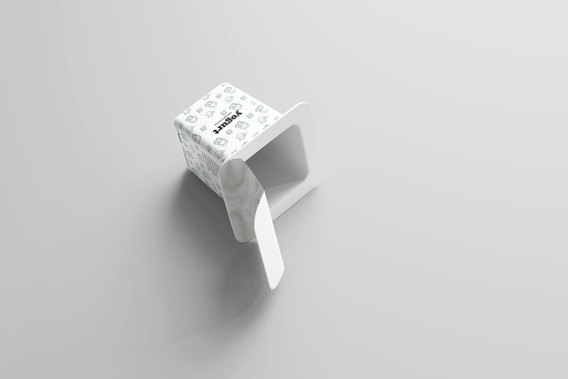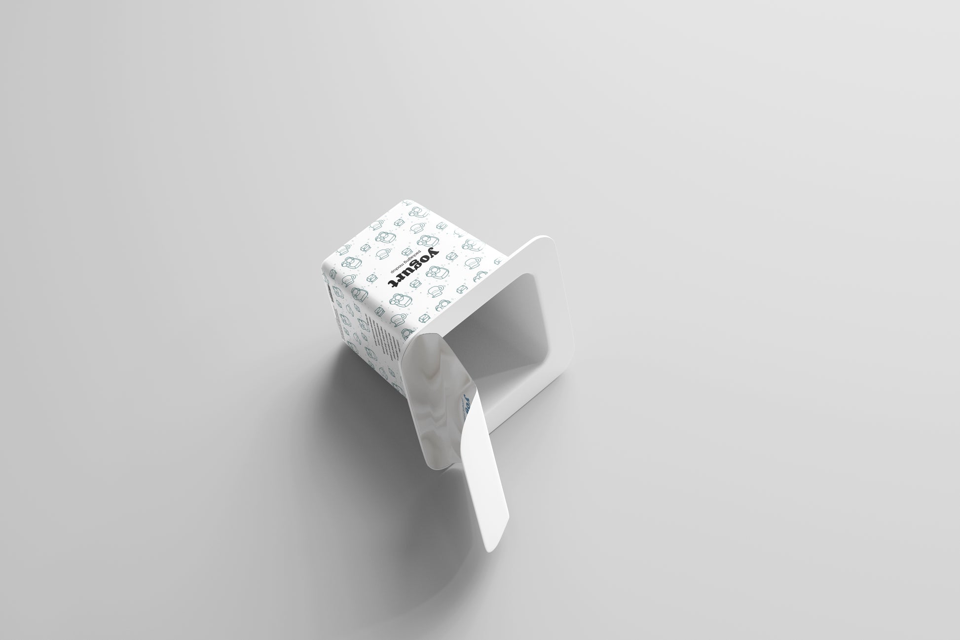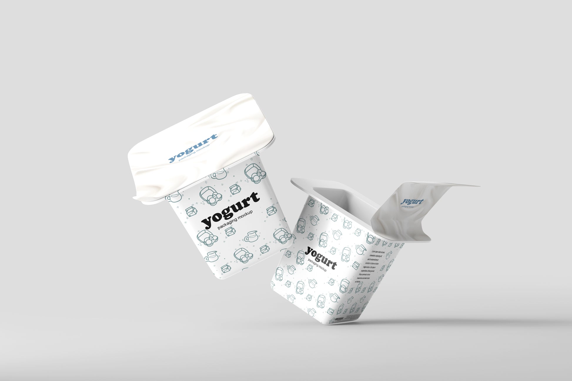 Plastic Yogurt or Ice Cream Cup Packaging Mockup. Commonly used plastic cup model with foil lid. Includes both lid label and body label. either label can be turned off if needed.